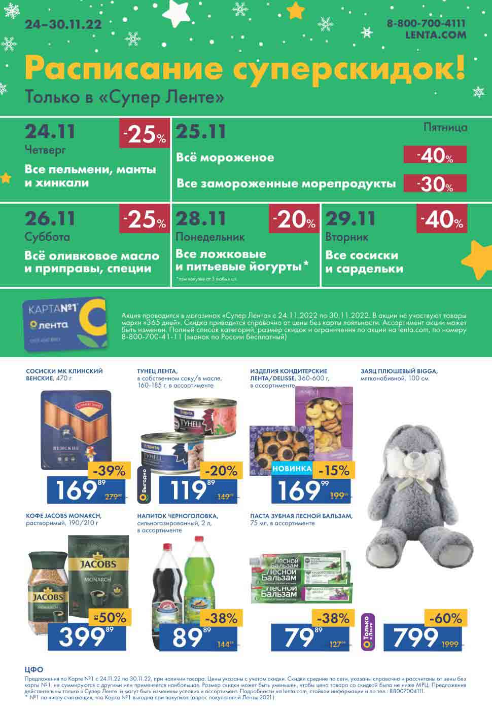 Супер Лента акции с 24 ноября — 30 ноября 2022. Каталог предложений в супермаркете Лента