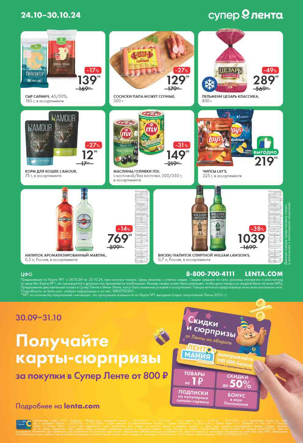 Супер Лента акции с 24 октября — 30 октября 2024. Супер цены по карте №1