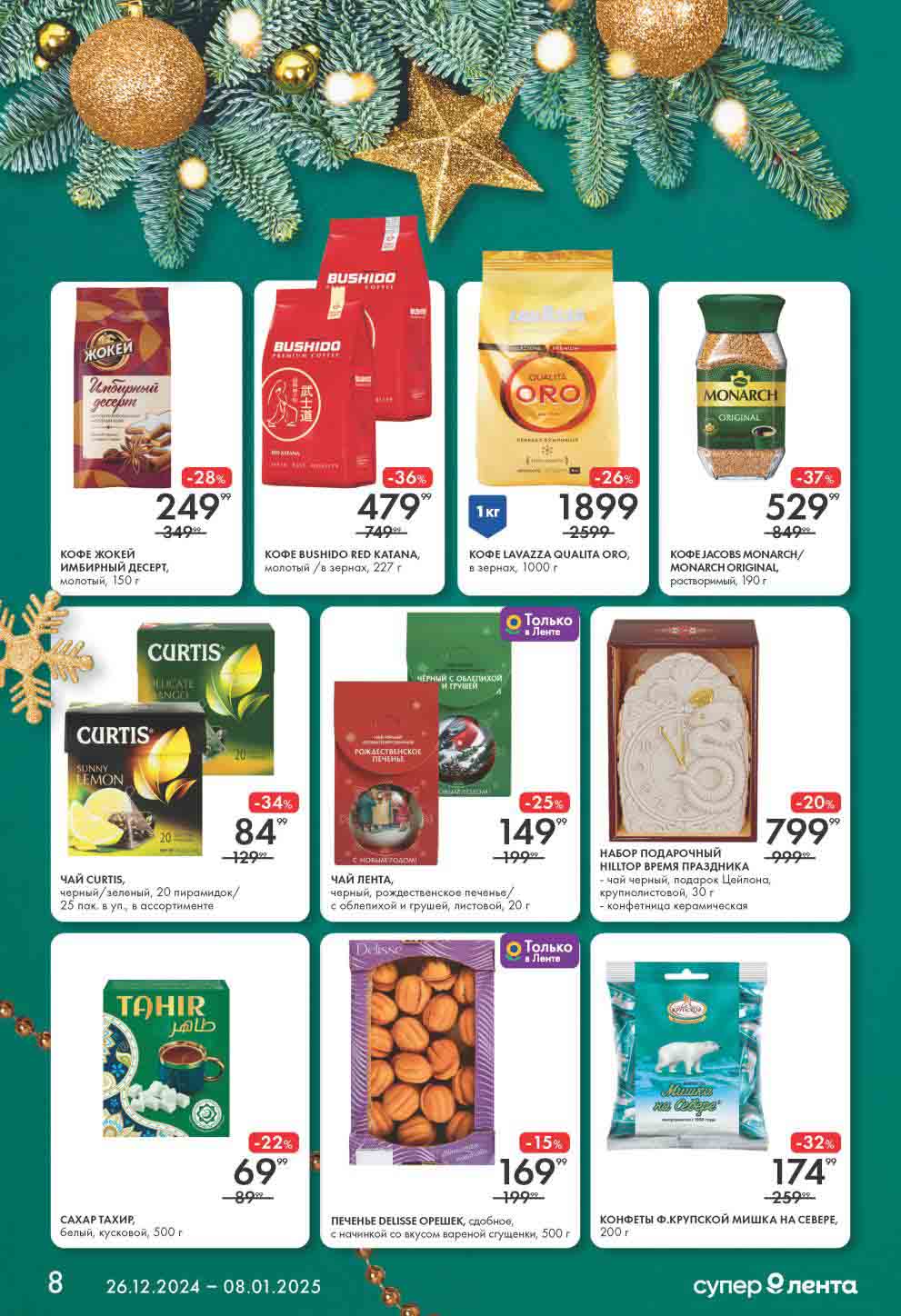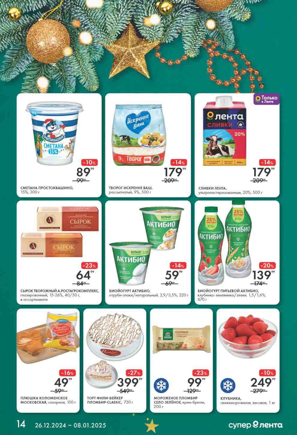 На страницах каталога ЛЕНТА вы найдете все свои любимые товары, которые сейчас предлагаются по акции. Скидки действуют в указанные сроки при покупках с Картой №1, при наличии товара Количество товара ограничено. Внешний вид товаров может отличаться от представленных. В Ленте пенсионерам скидка 10%* каждый день 9:00–13:00 (*Скидка не распространяется подарочные карты, лотерейные билеты, товары марки «365 Дней».) Выгода предоставляется на кассе при предъявлении необходимых документов и карты лояльности. Цены по акции Лента действуют в городах: Москва, Балашиха, Химки, Подольск, Королев, Мытищи, Люберцы, Электросталь, Коломна, Одинцово, Железнодорожный, Серпухов, Орехово-Зуево, Красногорск, Щелково, Сергиев Посад, Пушкино, Жуковский, Ногинск, Раменское и многих других населенных пунктах Московского региона.