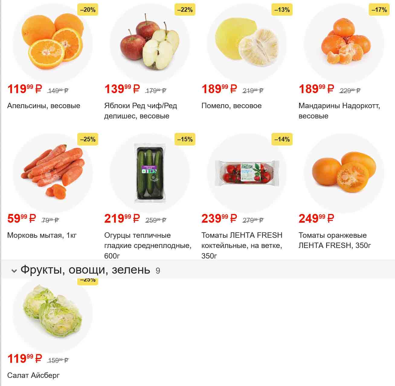 На страницах каталога ЛЕНТА вы найдете все свои любимые товары, которые сейчас предлагаются по акции. Скидки действуют в указанные сроки при покупках с Картой №1, при наличии товара Количество товара ограничено. Внешний вид товаров может отличаться от представленных. В Ленте пенсионерам скидка 10%* каждый день 9:00–13:00 (*Скидка не распространяется подарочные карты, лотерейные билеты, товары марки «365 Дней».) Выгода предоставляется на кассе при предъявлении необходимых документов и карты лояльности. Цены по акции Лента действуют в городах: Москва, Балашиха, Химки, Подольск, Королев, Мытищи, Люберцы, Электросталь, Коломна, Одинцово, Железнодорожный, Серпухов, Орехово-Зуево, Красногорск, Щелково, Сергиев Посад, Пушкино, Жуковский, Ногинск, Раменское и многих других населенных пунктах Московского региона.