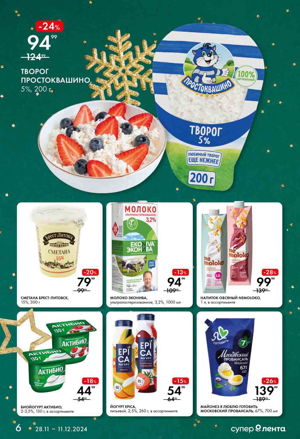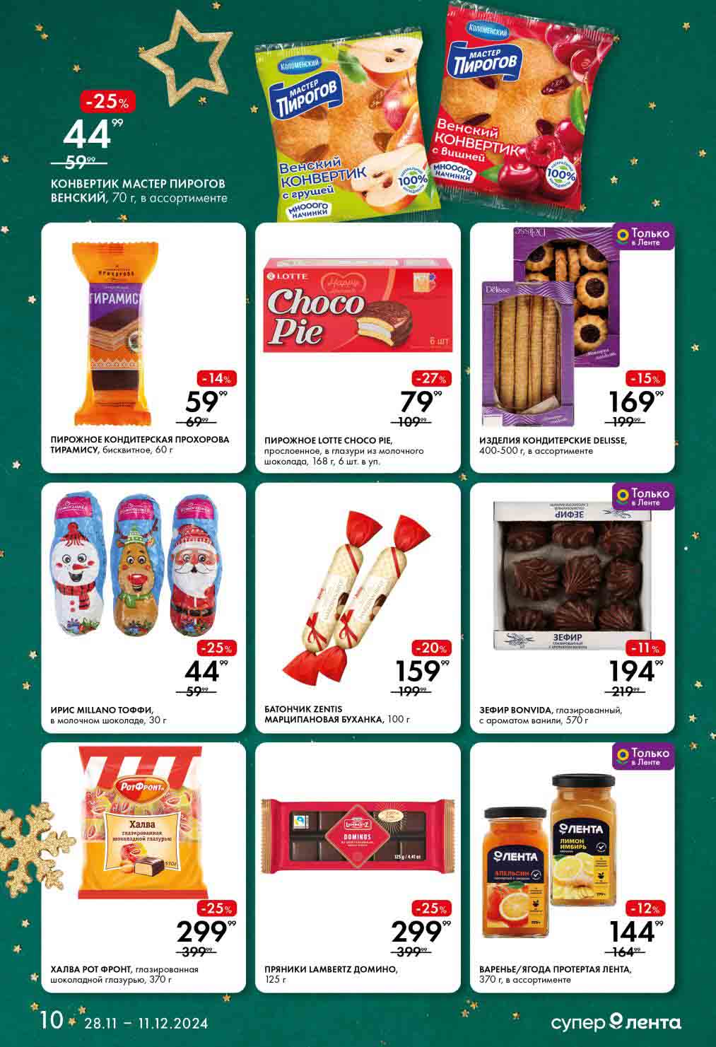 На страницах каталога ЛЕНТА вы найдете все свои любимые товары, которые сейчас предлагаются по акции. Скидки действуют в указанные сроки при покупках с Картой №1, при наличии товара Количество товара ограничено. Внешний вид товаров может отличаться от представленных. В Ленте пенсионерам скидка 10%* каждый день 9:00–13:00 (*Скидка не распространяется подарочные карты, лотерейные билеты, товары марки «365 Дней».) Выгода предоставляется на кассе при предъявлении необходимых документов и карты лояльности. Цены по акции Лента действуют в городах: Москва, Балашиха, Химки, Подольск, Королев, Мытищи, Люберцы, Электросталь, Коломна, Одинцово, Железнодорожный, Серпухов, Орехово-Зуево, Красногорск, Щелково, Сергиев Посад, Пушкино, Жуковский, Ногинск, Раменское и многих других населенных пунктах Московского региона.