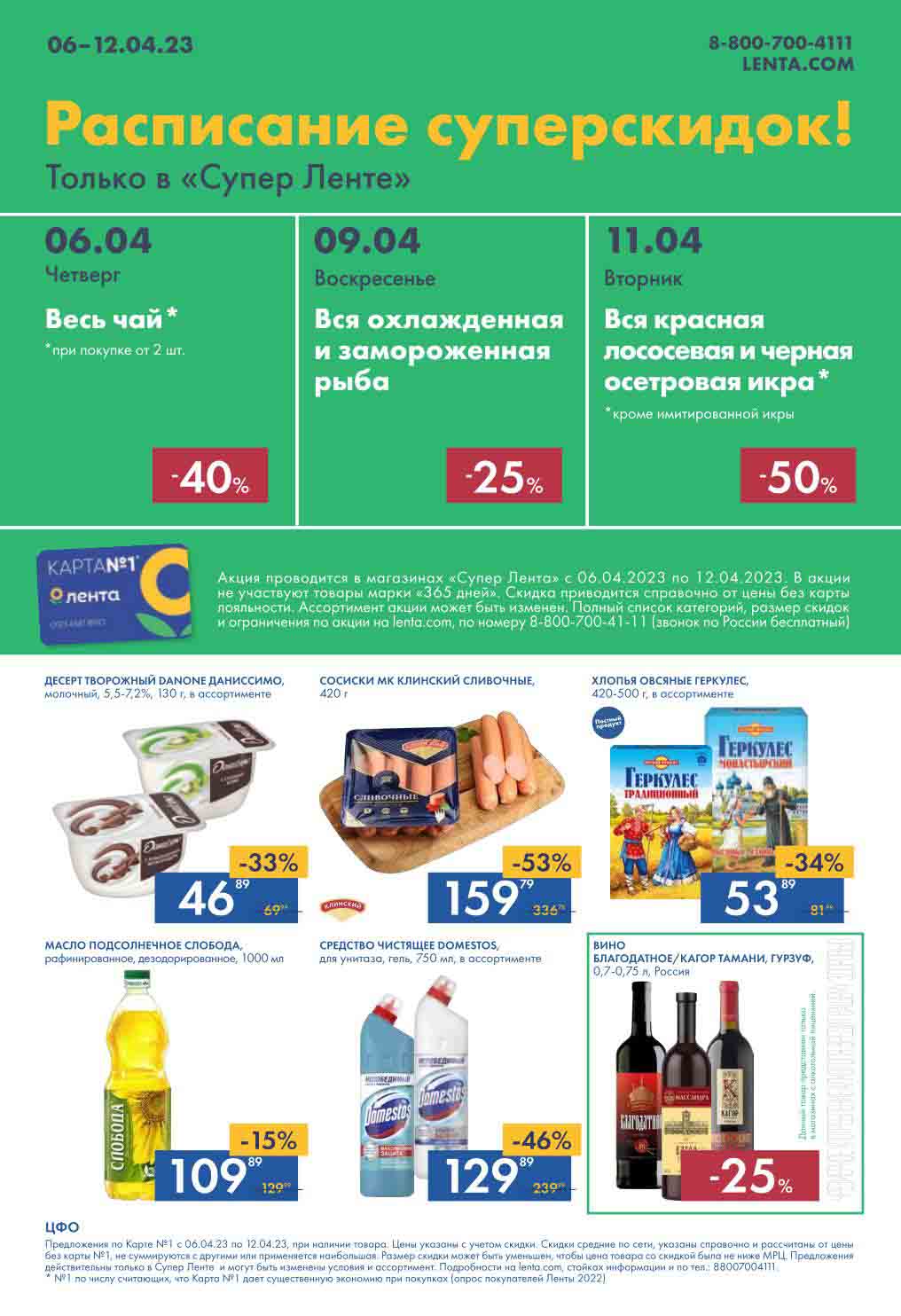 Супер Лента акции с 6 апреля — 12 апреля 2023. Супер цены по карте №1