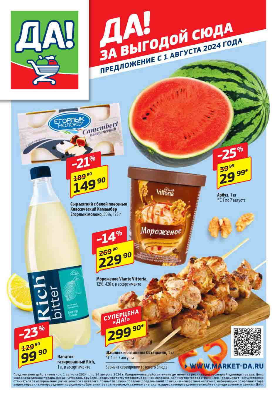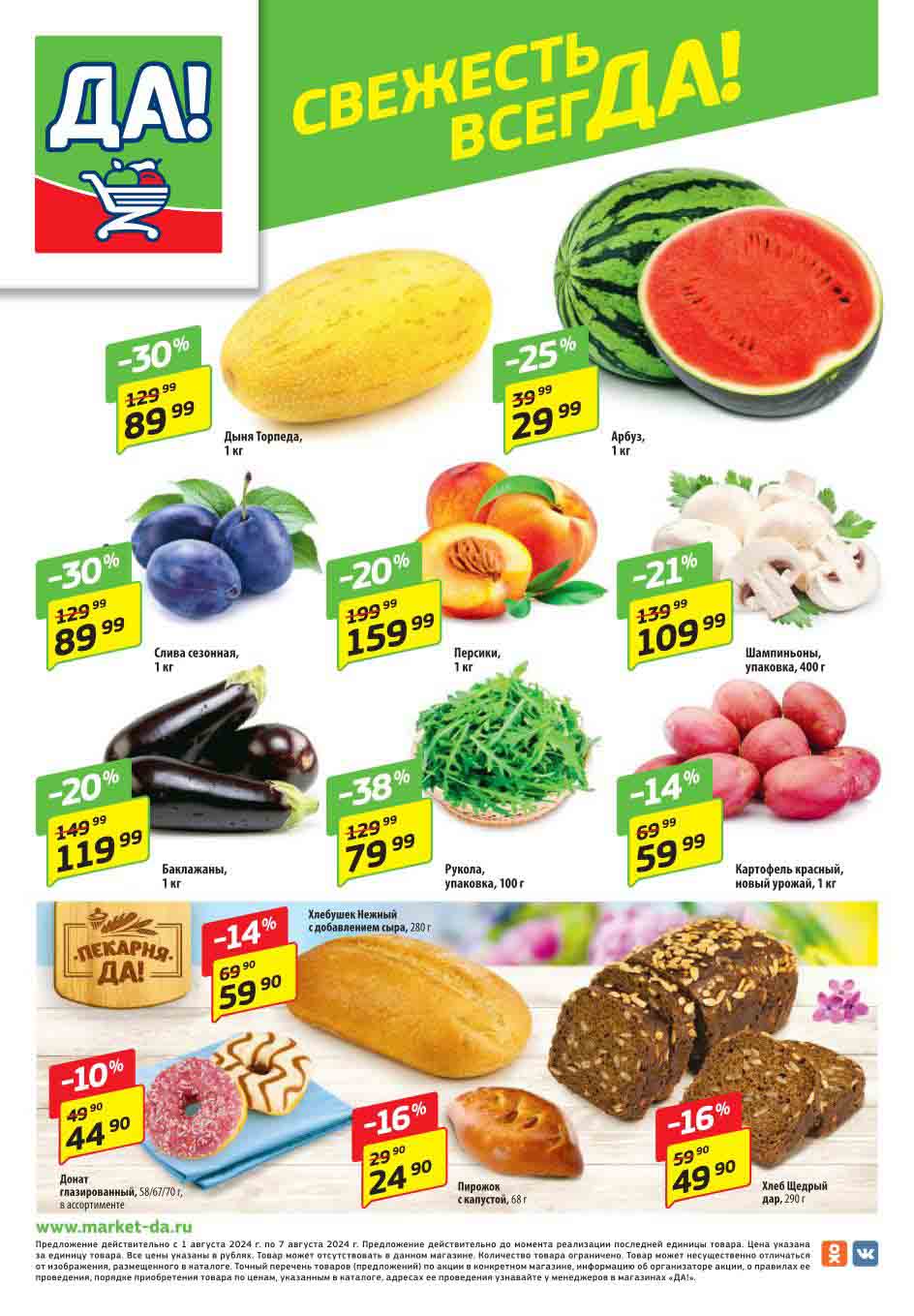 Супермаркет Да акции с 1 августа — 14 августа 2024. Регулярный каталог магазина