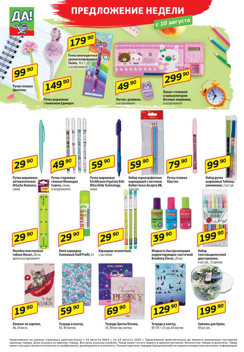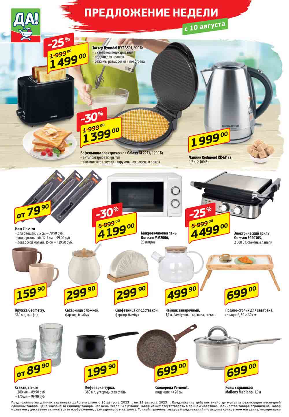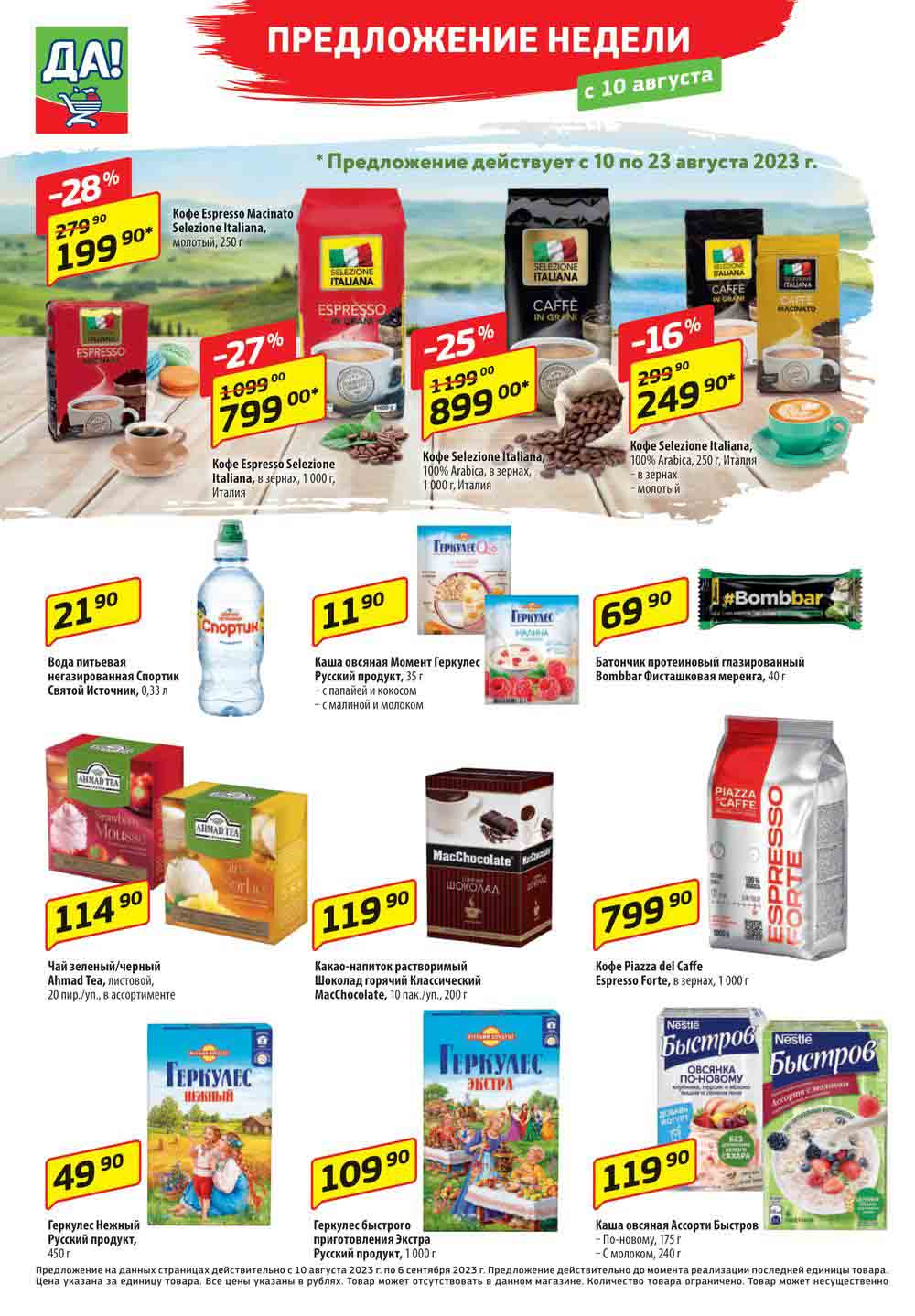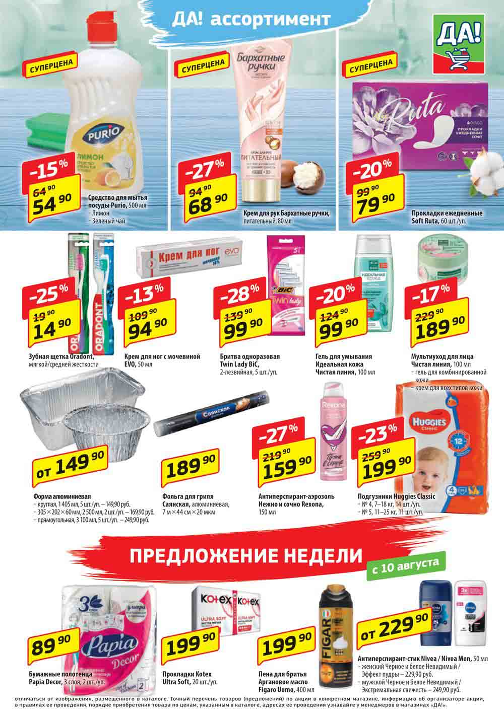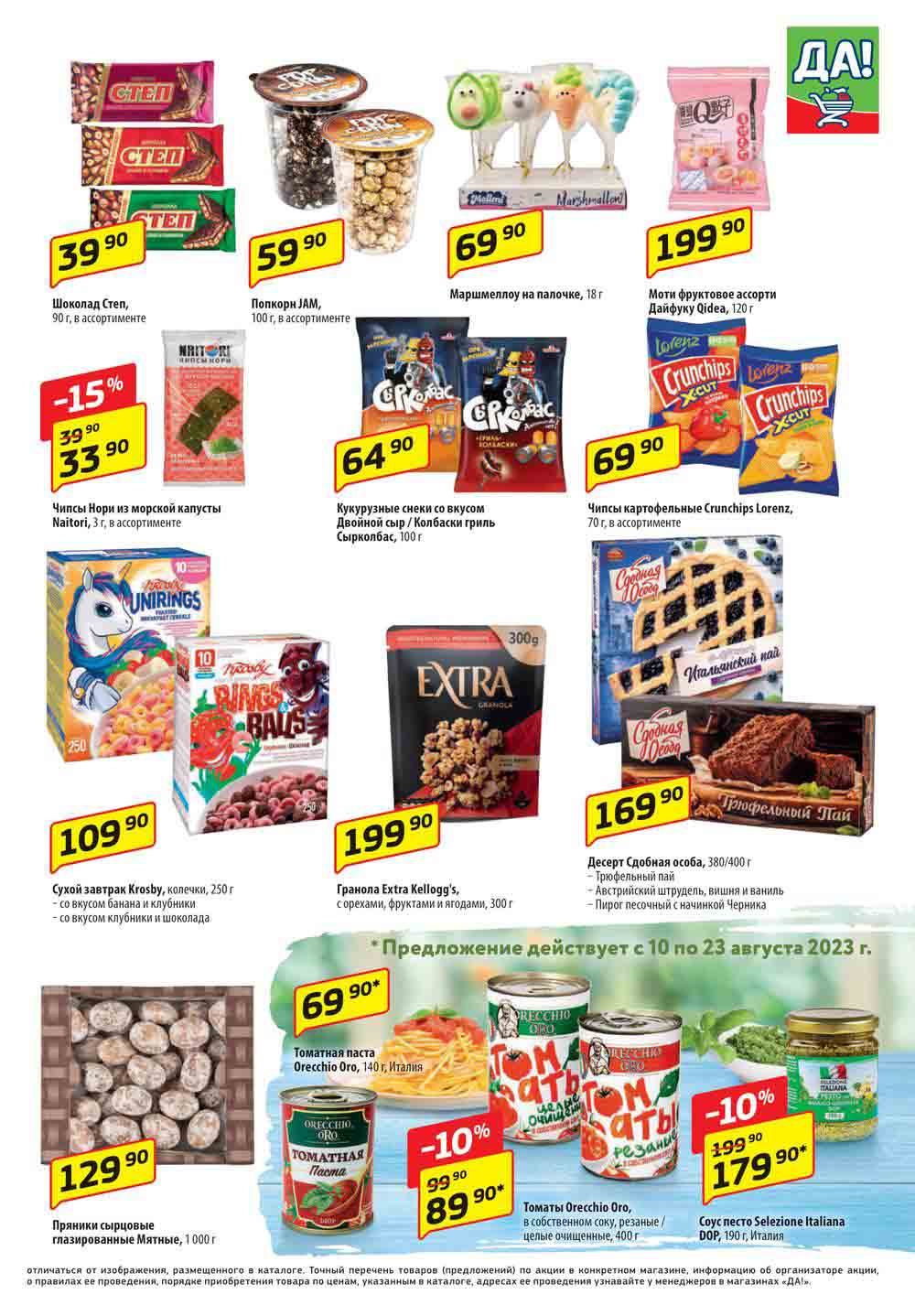Магазин регулярно предлагает вам свои еженедельные акции и разнообразный каталог ДА! со скидкой. Уникальные возможности ожидают вас при посещении супермаркета каждую неделю. Цены по акции “Да” супермаркет, действуют в городах: Москва, Балашиха, Химки, Подольск, Королев, Мытищи, Люберцы, Электросталь, Коломна, Одинцово, Железнодорожный, Серпухов, Орехово-Зуево, Красногорск, Щелково, Сергиев Посад, Пушкино, Жуковский, Ногинск, Раменское, Клин, Воскресенск, Домодедово и многих других населенных пунктах Московского региона.