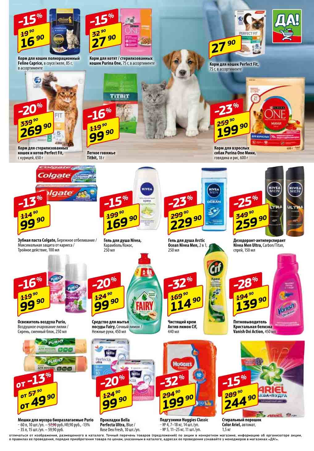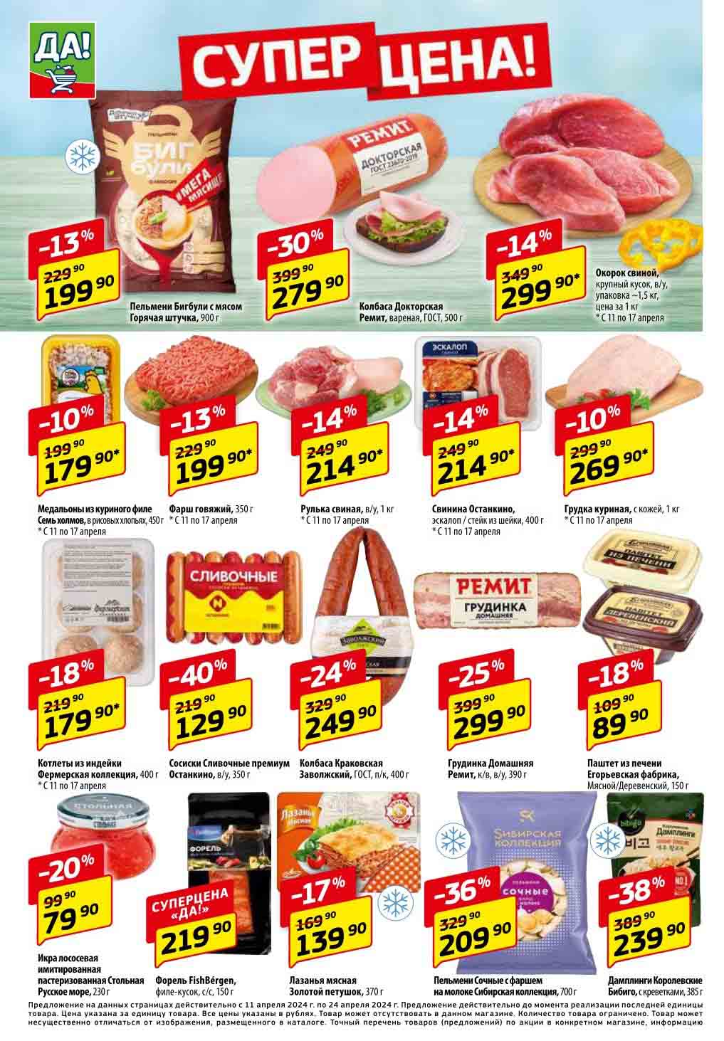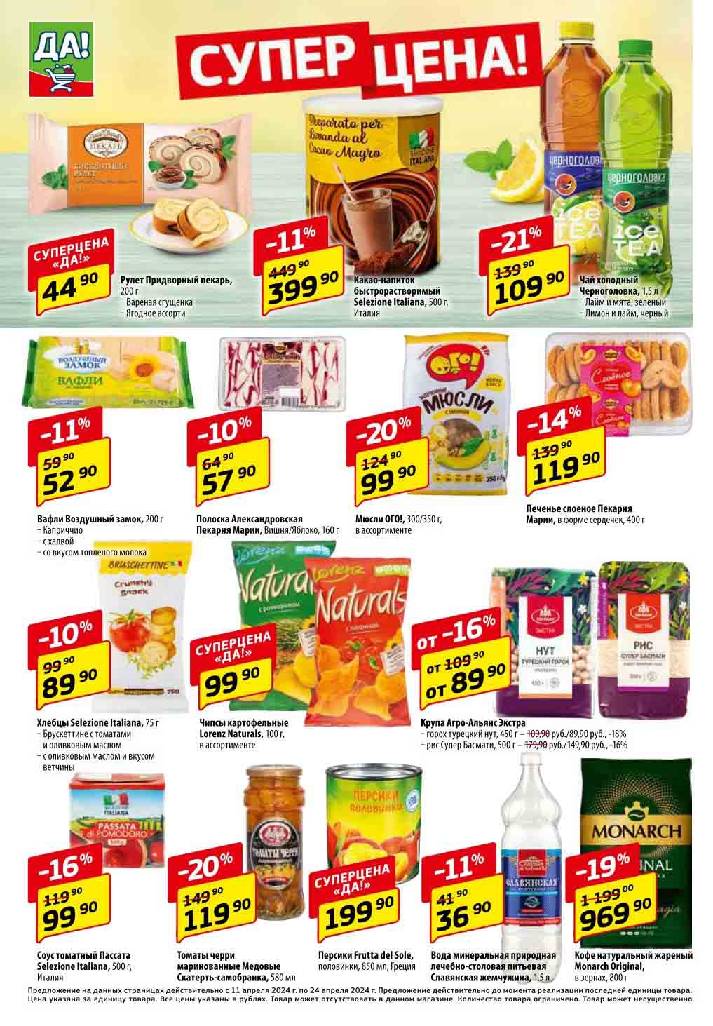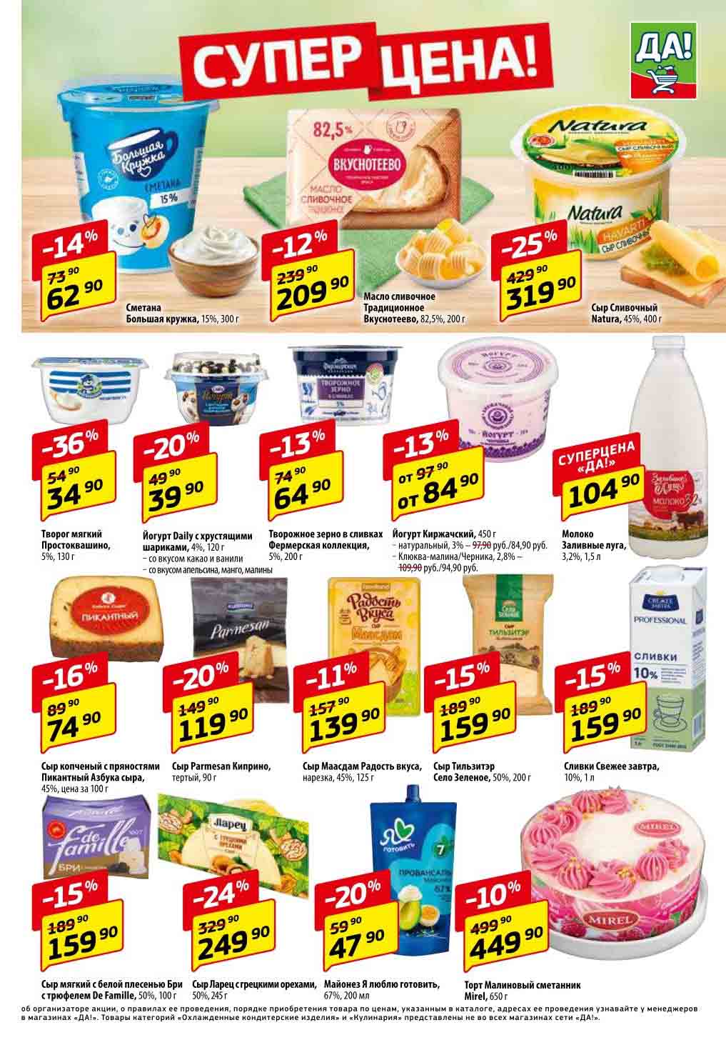 Магазин регулярно предлагает вам свои еженедельные акции и разнообразный каталог ДА! со скидкой. Уникальные возможности ожидают вас при посещении супермаркета каждую неделю. Цены по акции “Да” супермаркет, действуют в городах: Москва, Балашиха, Химки, Подольск, Королев, Мытищи, Люберцы, Электросталь, Коломна, Одинцово, Железнодорожный, Серпухов, Орехово-Зуево, Красногорск, Щелково, Сергиев Посад, Пушкино, Жуковский, Ногинск, Раменское, Клин, Воскресенск, Домодедово и многих других населенных пунктах Московского региона.