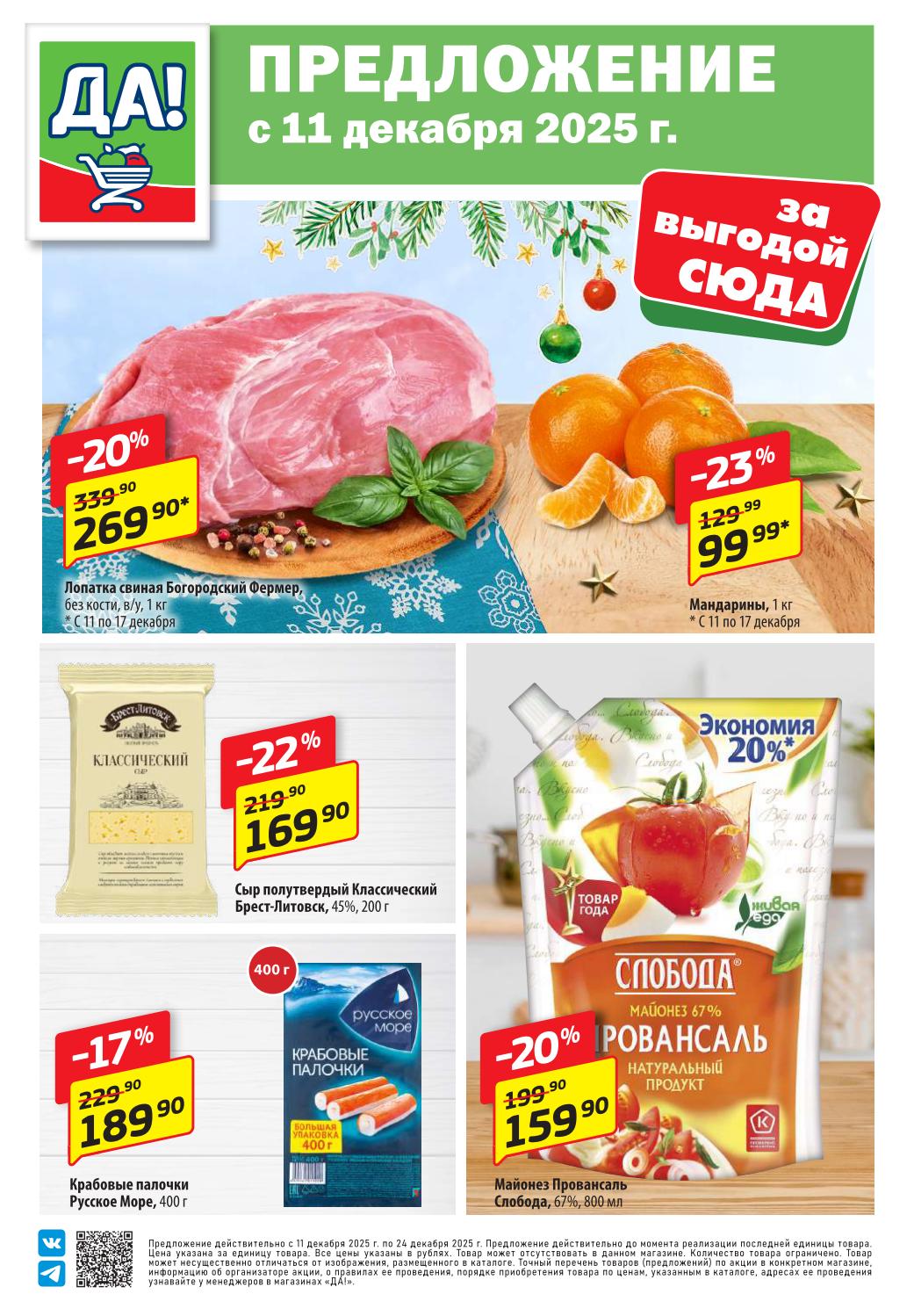 Супермаркет Да акции с 11 декабря — 24 декабря 2025. Регулярный каталог магазина