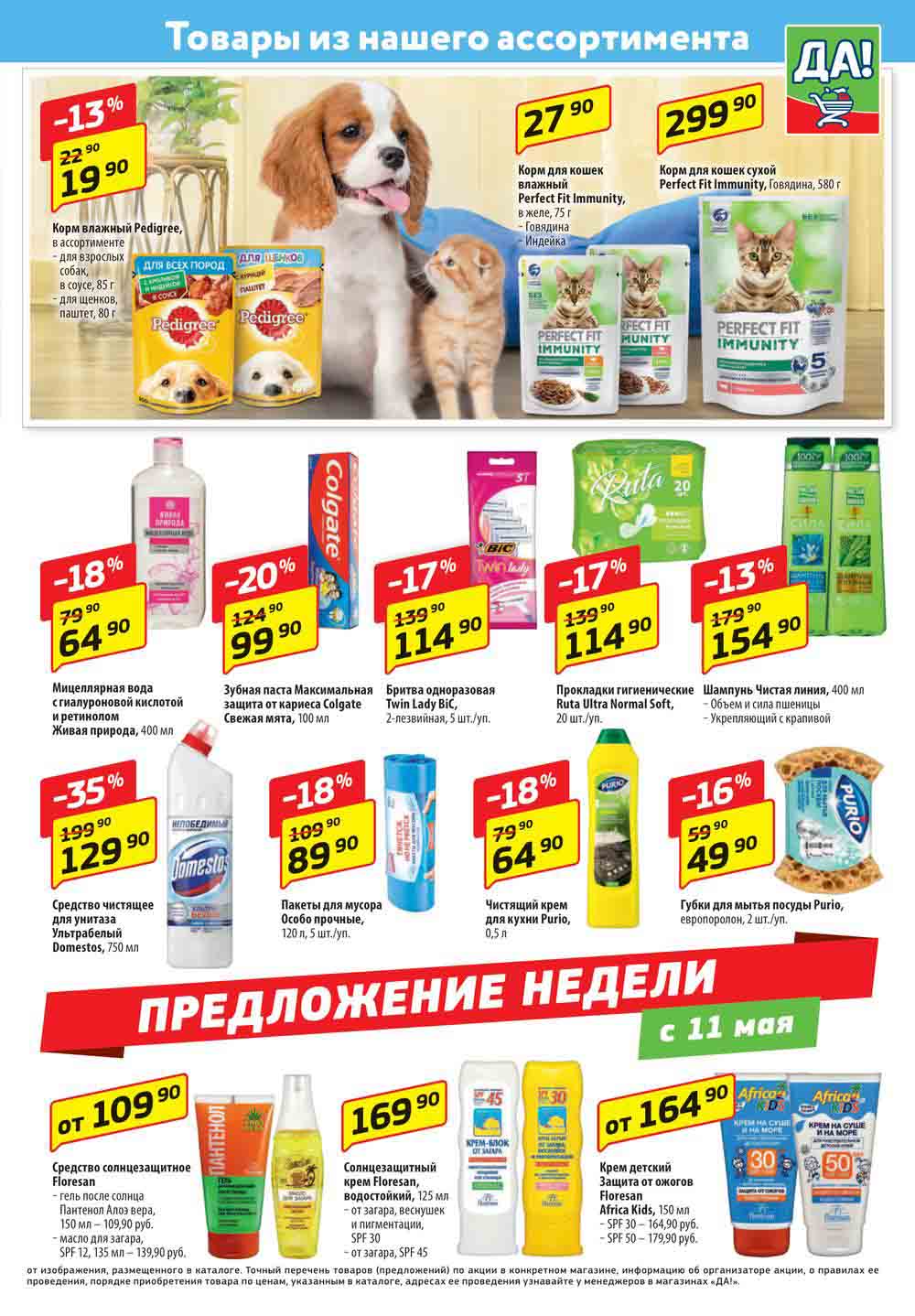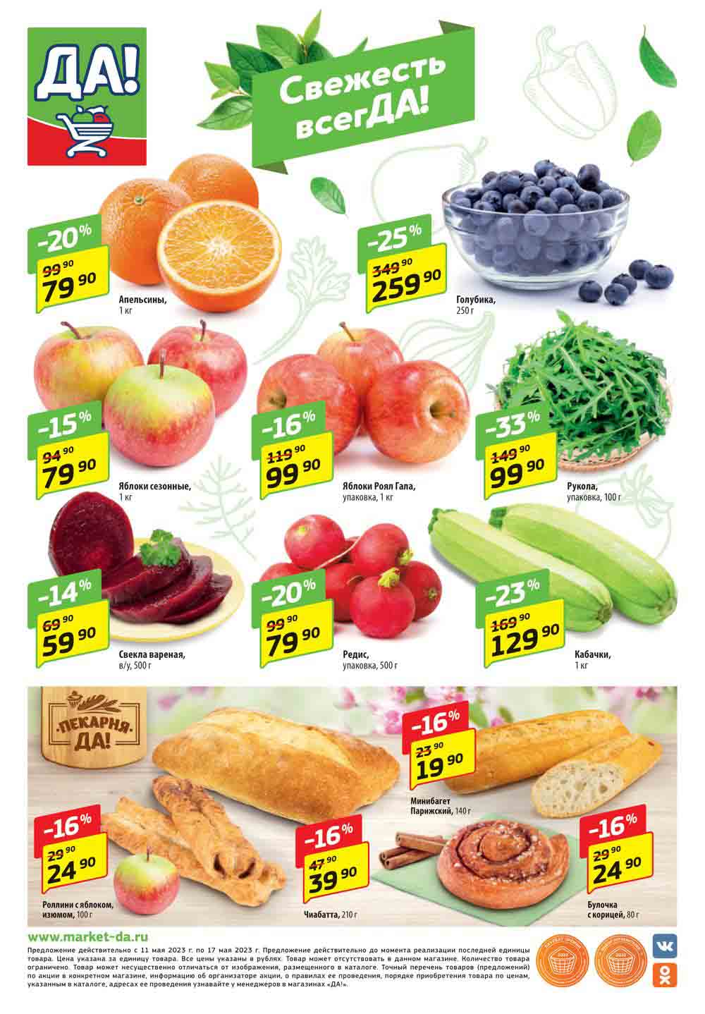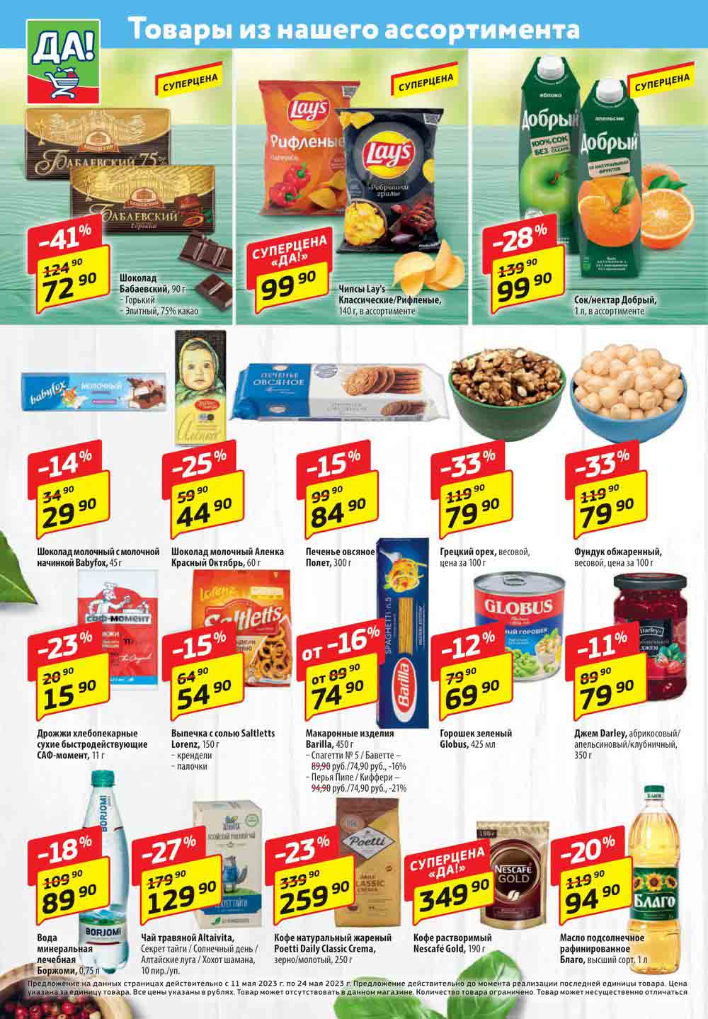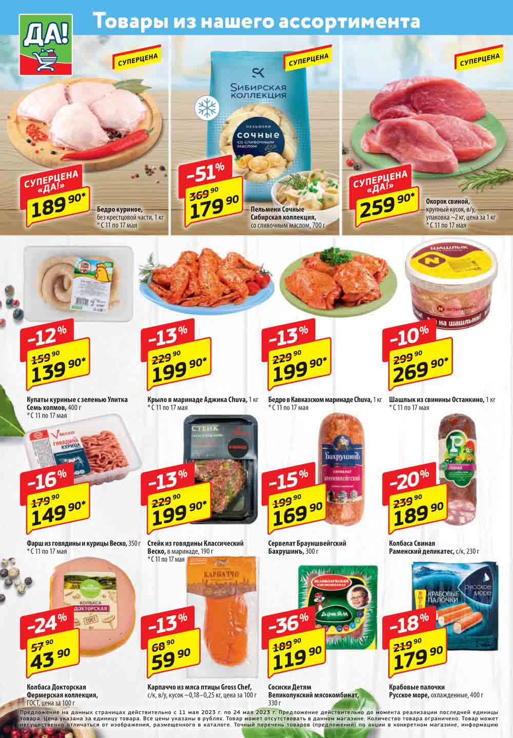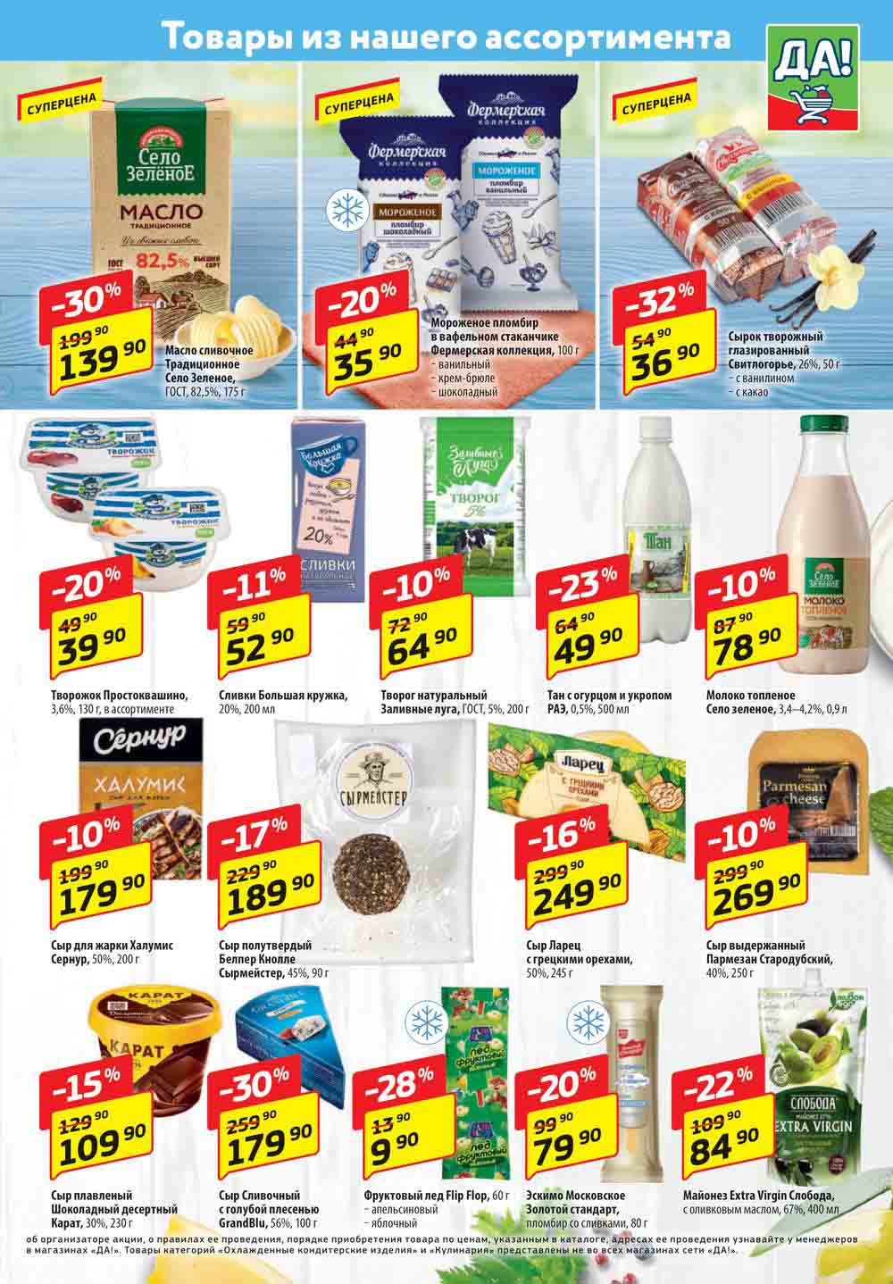 Магазин регулярно предлагает вам свои еженедельные акции и разнообразный каталог ДА! со скидкой. Уникальные возможности ожидают вас при посещении супермаркета каждую неделю. Цены по акции “Да” супермаркет, действуют в городах: Москва, Балашиха, Химки, Подольск, Королев, Мытищи, Люберцы, Электросталь, Коломна, Одинцово, Железнодорожный, Серпухов, Орехово-Зуево, Красногорск, Щелково, Сергиев Посад, Пушкино, Жуковский, Ногинск, Раменское, Клин, Воскресенск, Домодедово и многих других населенных пунктах Московского региона.