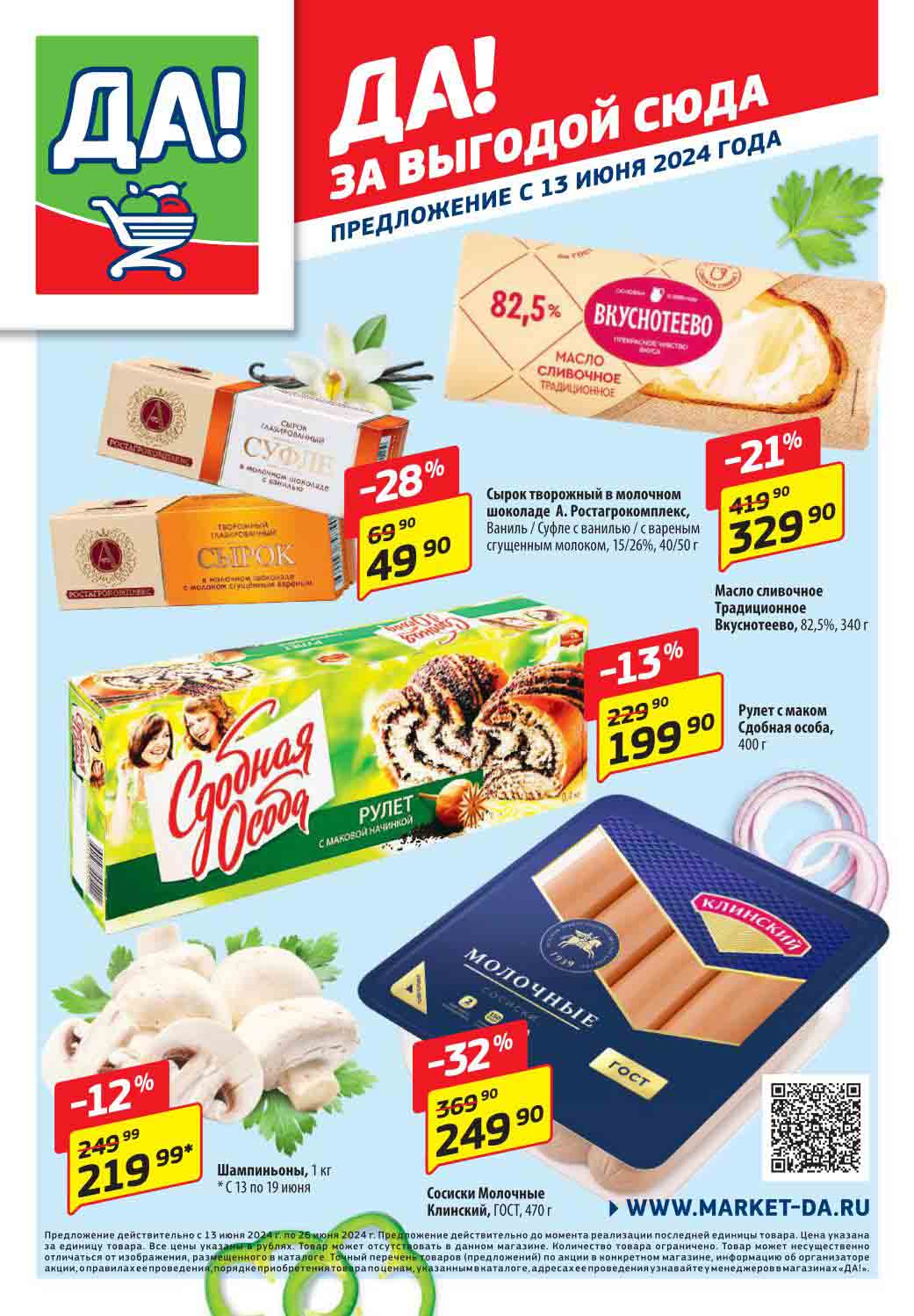 Магазин регулярно предлагает вам свои еженедельные акции и разнообразный каталог ДА! со скидкой. Уникальные возможности ожидают вас при посещении супермаркета каждую неделю. Цены по акции “Да” супермаркет, действуют в городах: Москва, Балашиха, Химки, Подольск, Королев, Мытищи, Люберцы, Электросталь, Коломна, Одинцово, Железнодорожный, Серпухов, Орехово-Зуево, Красногорск, Щелково, Сергиев Посад, Пушкино, Жуковский, Ногинск, Раменское, Клин, Воскресенск, Домодедово и многих других населенных пунктах Московского региона.