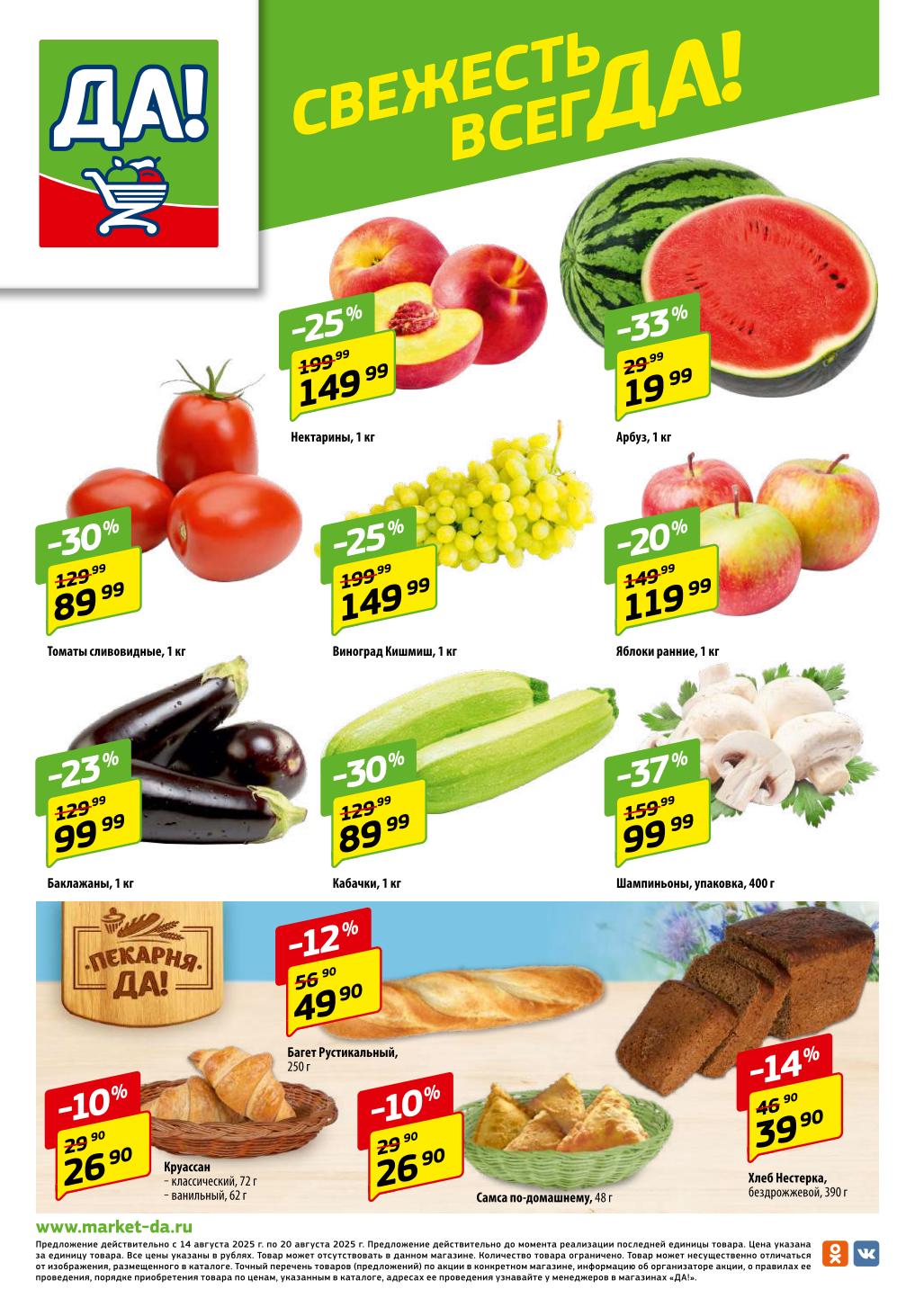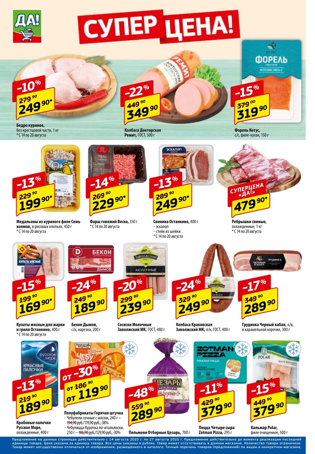 Супермаркет Да акции с 14 августа — 27 августа 2025. Регулярный каталог магазина