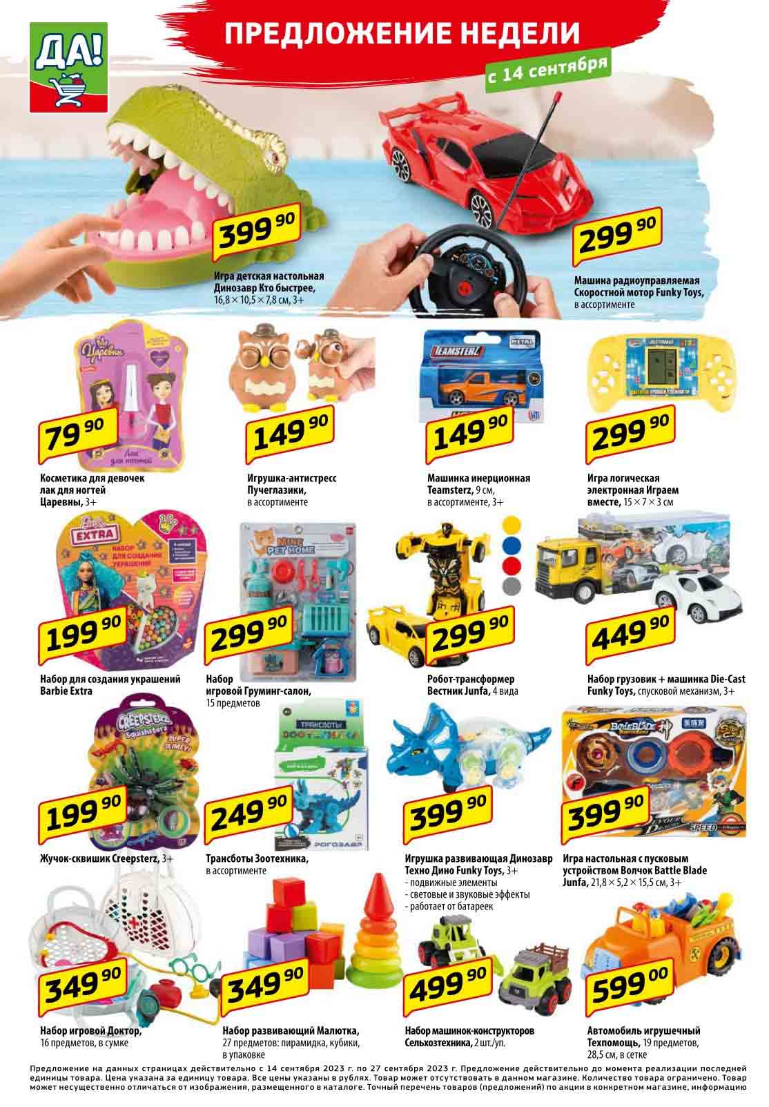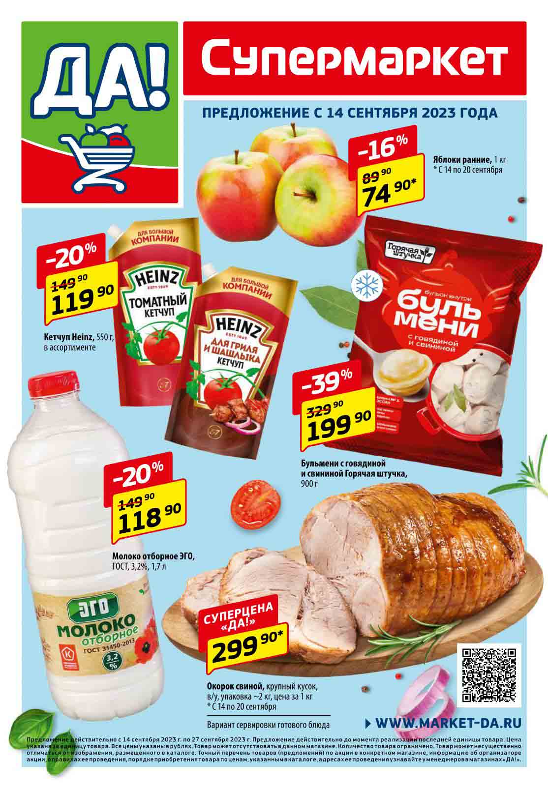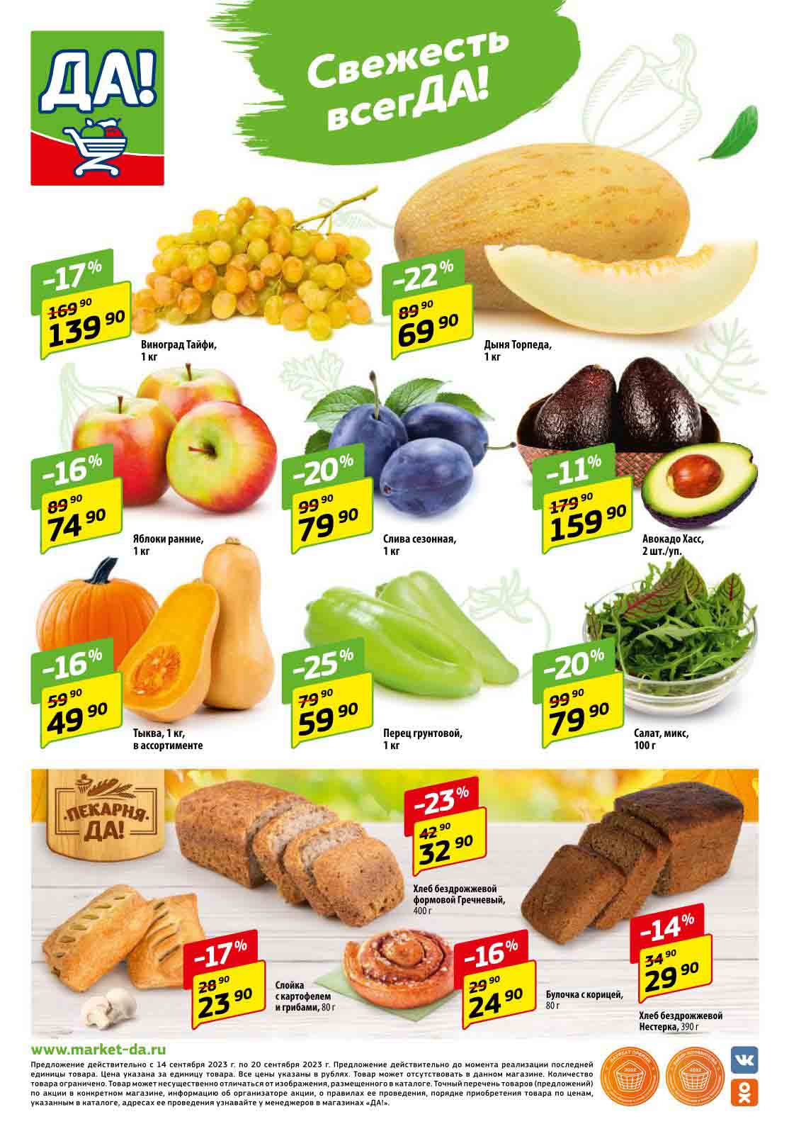 Магазин регулярно предлагает вам свои еженедельные акции и разнообразный каталог ДА! со скидкой. Уникальные возможности ожидают вас при посещении супермаркета каждую неделю. Цены по акции “Да” супермаркет, действуют в городах: Москва, Балашиха, Химки, Подольск, Королев, Мытищи, Люберцы, Электросталь, Коломна, Одинцово, Железнодорожный, Серпухов, Орехово-Зуево, Красногорск, Щелково, Сергиев Посад, Пушкино, Жуковский, Ногинск, Раменское, Клин, Воскресенск, Домодедово и многих других населенных пунктах Московского региона.