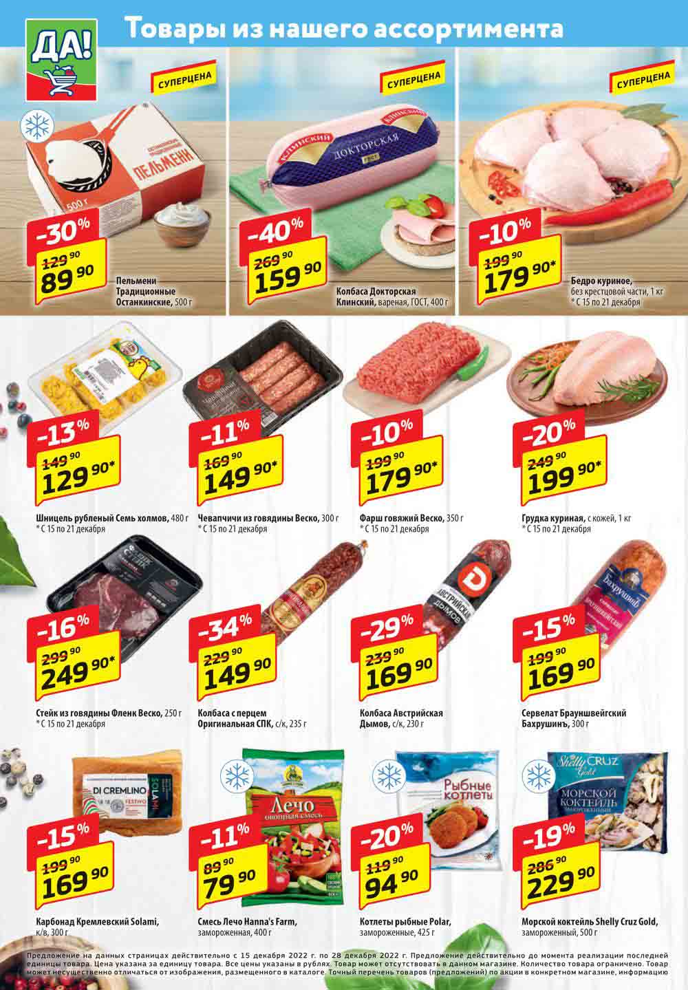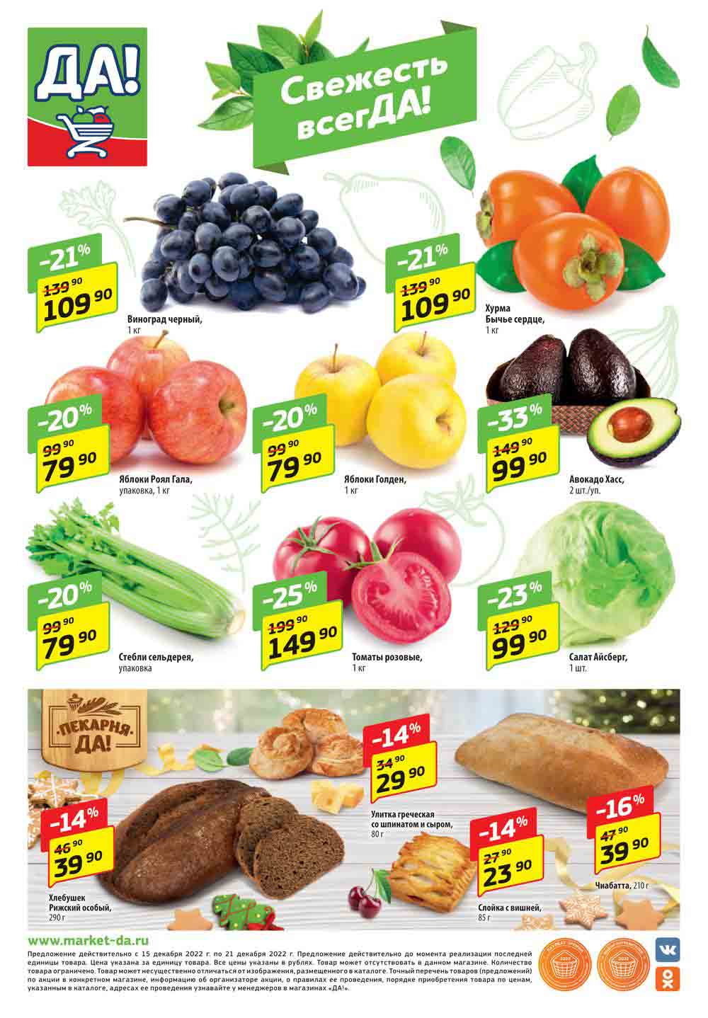 Супермаркет Да акции с 15 декабря — 28 декабря 2022. Каталог и скидки на товары