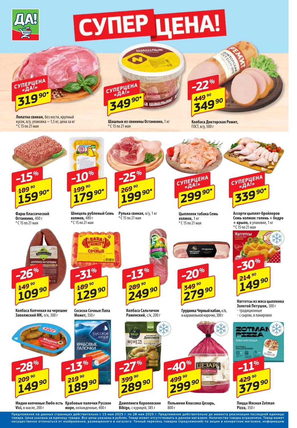 Супермаркет Да акции с 15 мая- 28 мая 2025. Регулярный каталог магазина
