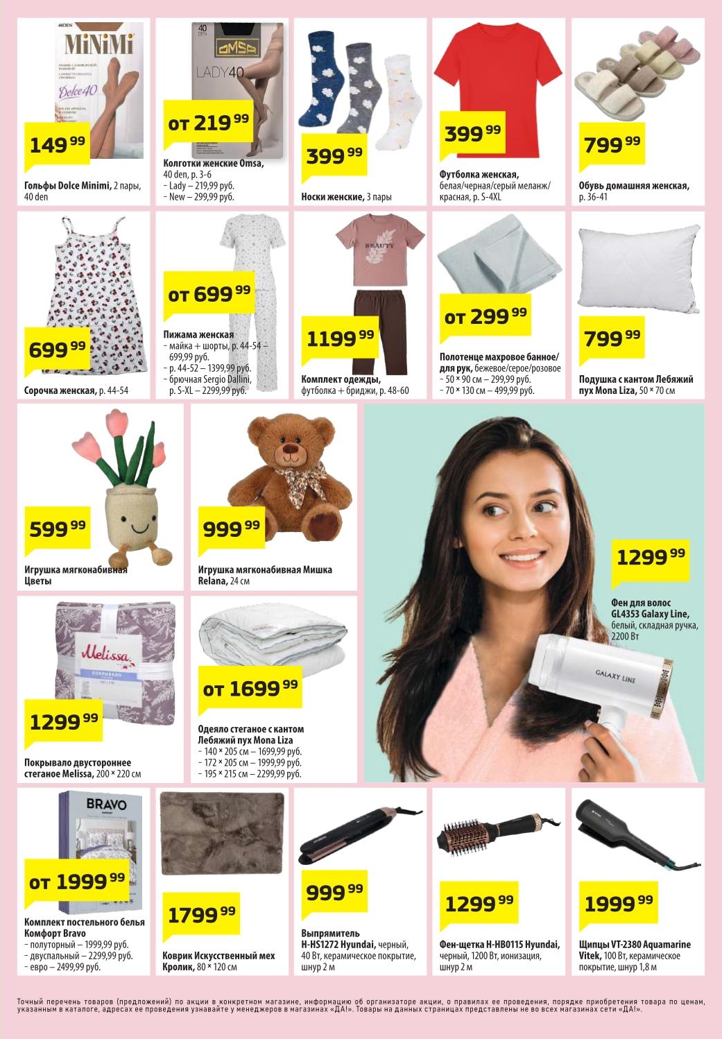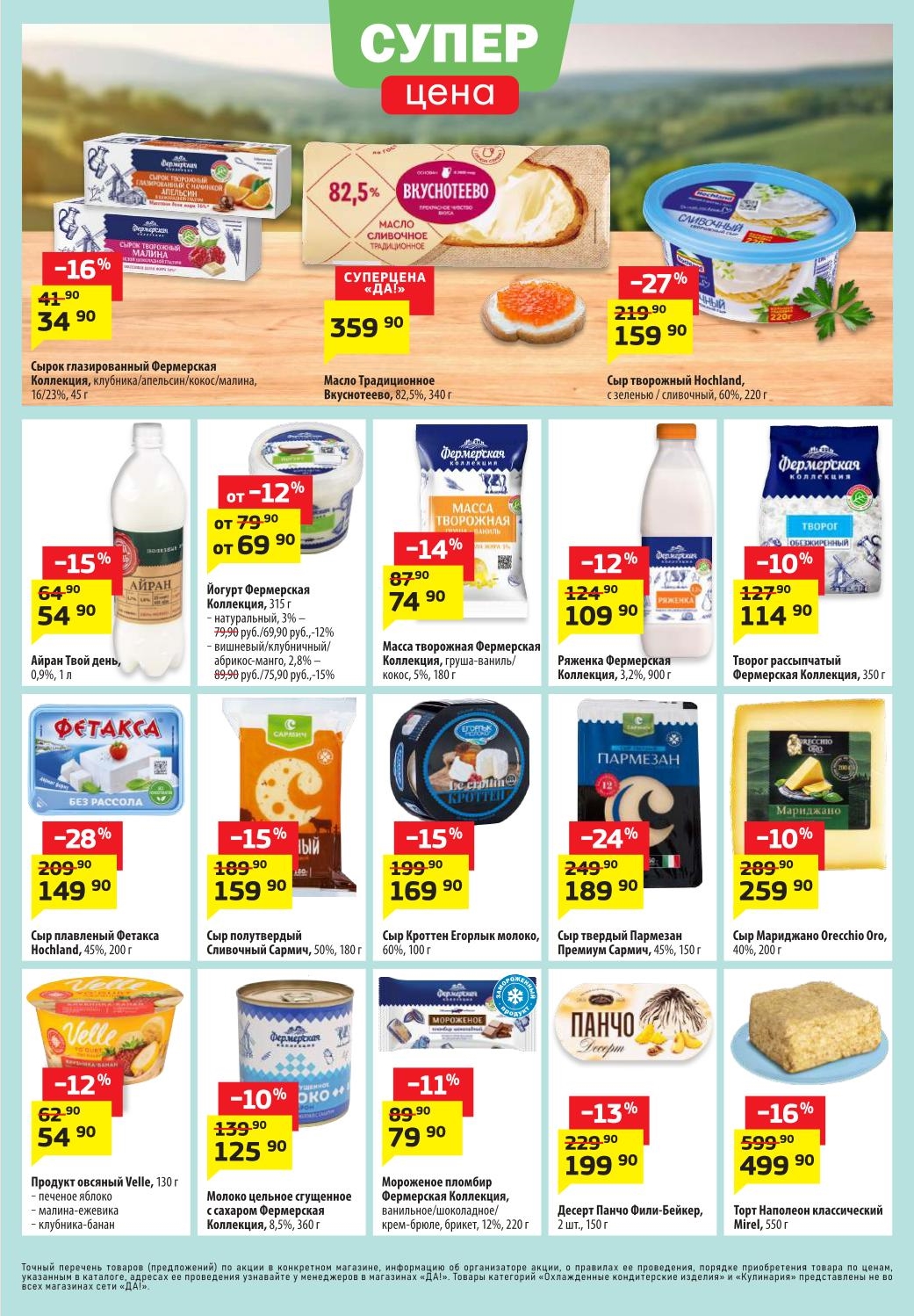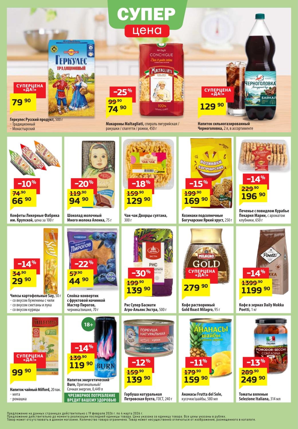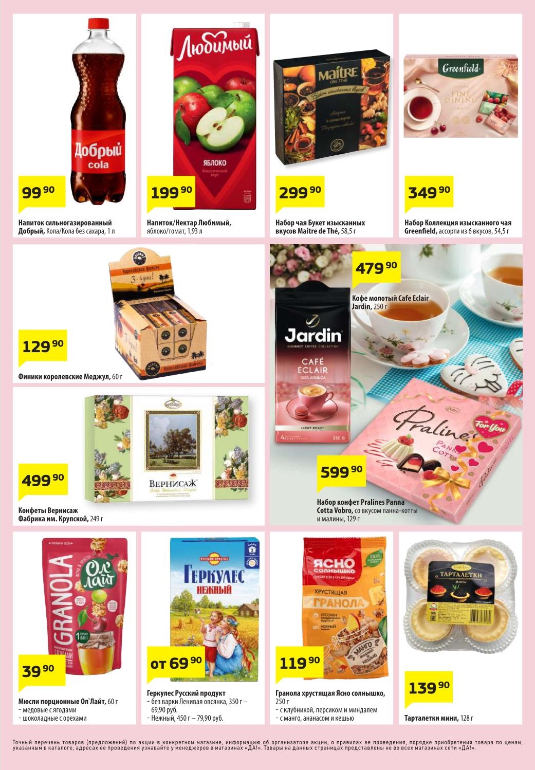 Магазин регулярно предлагает вам свои еженедельные акции и разнообразный каталог ДА! со скидкой. Уникальные возможности ожидают вас при посещении супермаркета каждую неделю. Цены по акции “Да” супермаркет, действуют в городах: Москва, Балашиха, Химки, Подольск, Королев, Мытищи, Люберцы, Электросталь, Коломна, Одинцово, Железнодорожный, Серпухов, Орехово-Зуево, Красногорск, Щелково, Сергиев Посад, Пушкино, Жуковский, Ногинск, Раменское, Клин, Воскресенск, Домодедово и многих других населенных пунктах Московского региона.