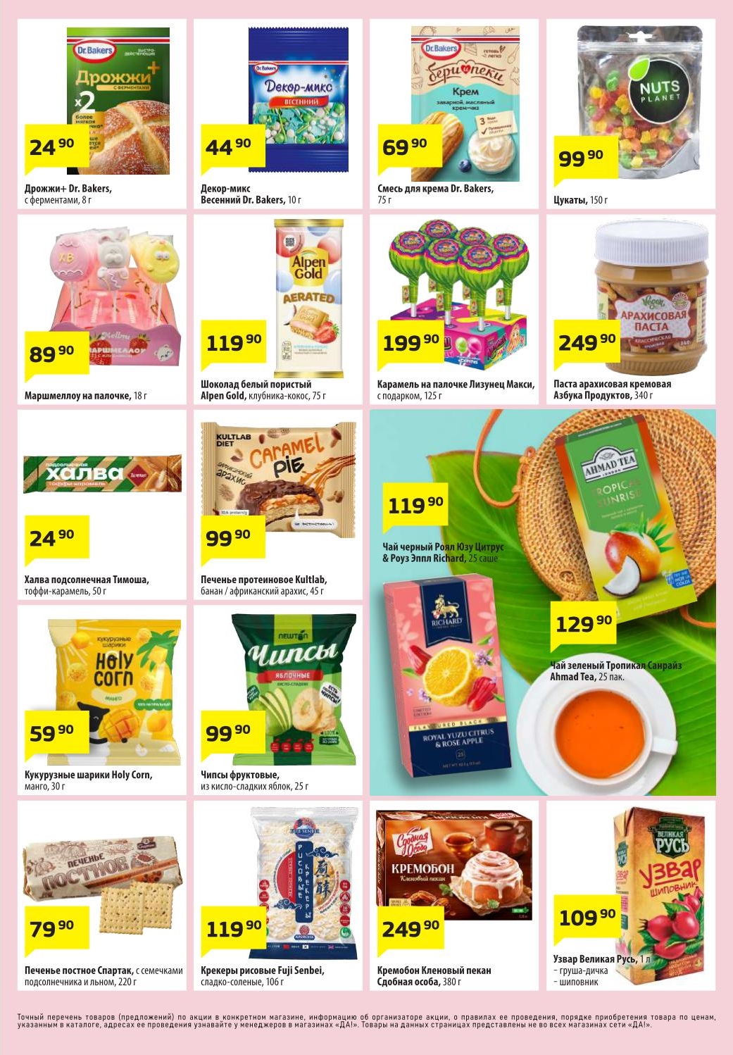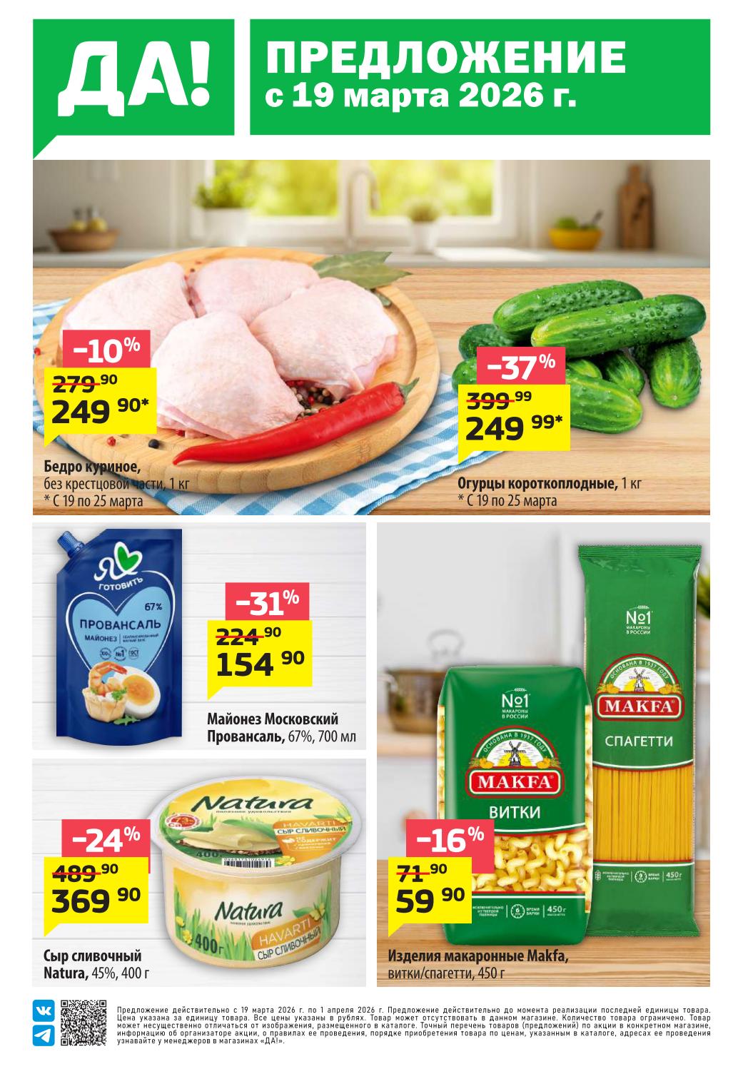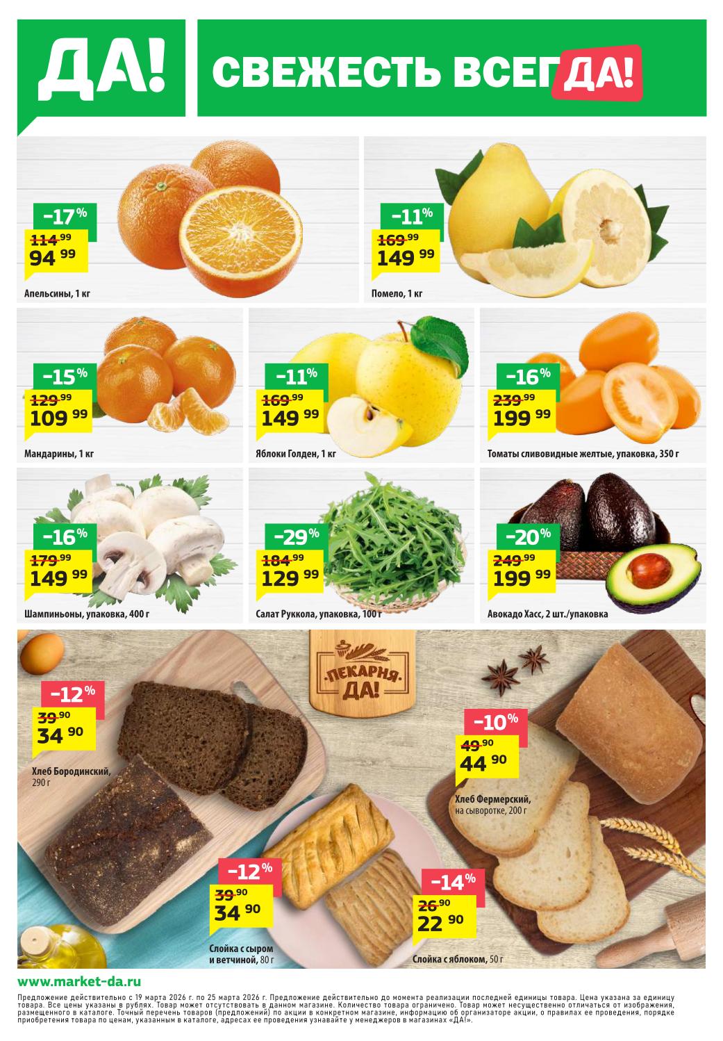 Магазин регулярно предлагает вам свои еженедельные акции и разнообразный каталог ДА! со скидкой. Уникальные возможности ожидают вас при посещении супермаркета каждую неделю. Цены по акции “Да” супермаркет, действуют в городах: Москва, Балашиха, Химки, Подольск, Королев, Мытищи, Люберцы, Электросталь, Коломна, Одинцово, Железнодорожный, Серпухов, Орехово-Зуево, Красногорск, Щелково, Сергиев Посад, Пушкино, Жуковский, Ногинск, Раменское, Клин, Воскресенск, Домодедово и многих других населенных пунктах Московского региона.