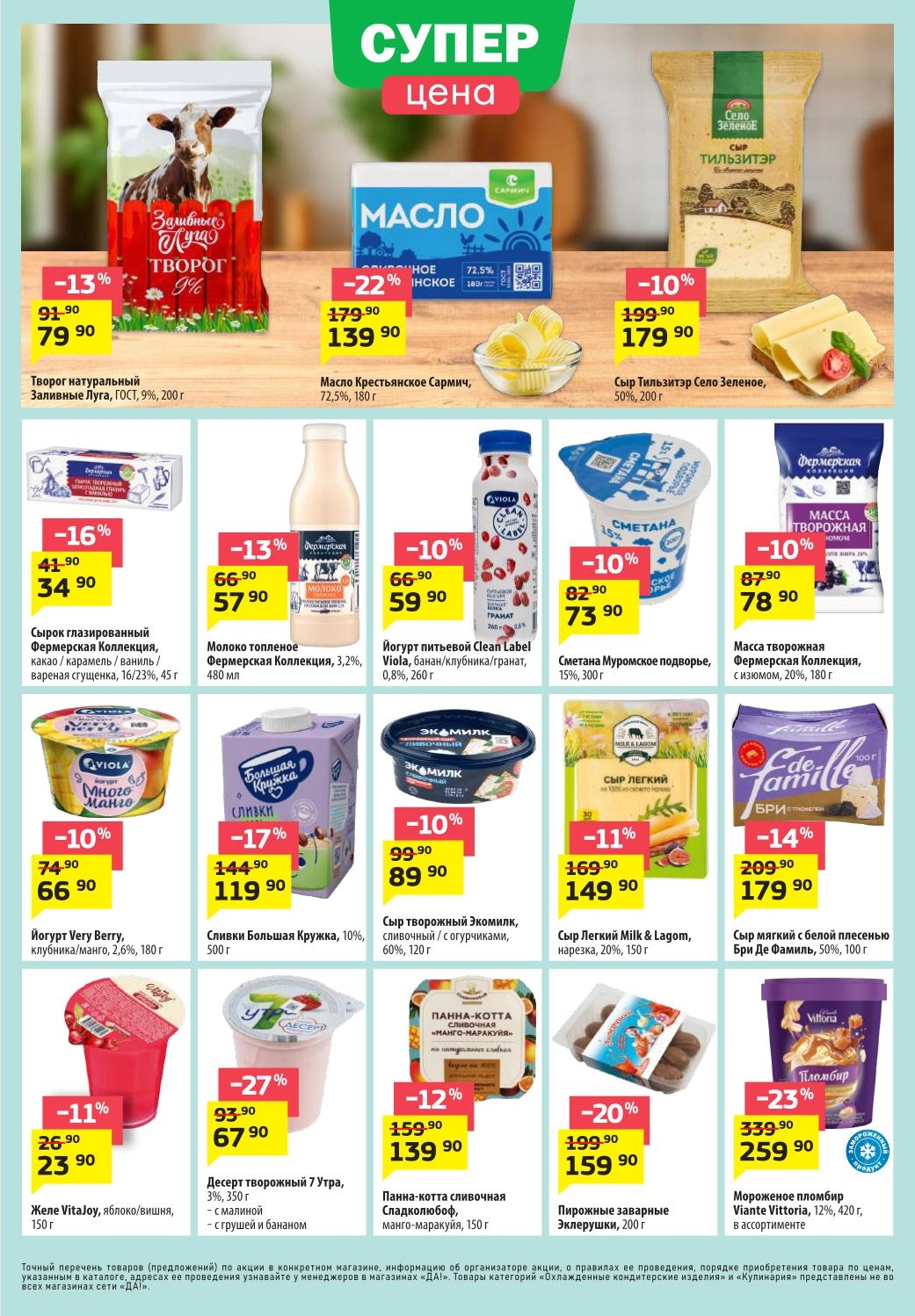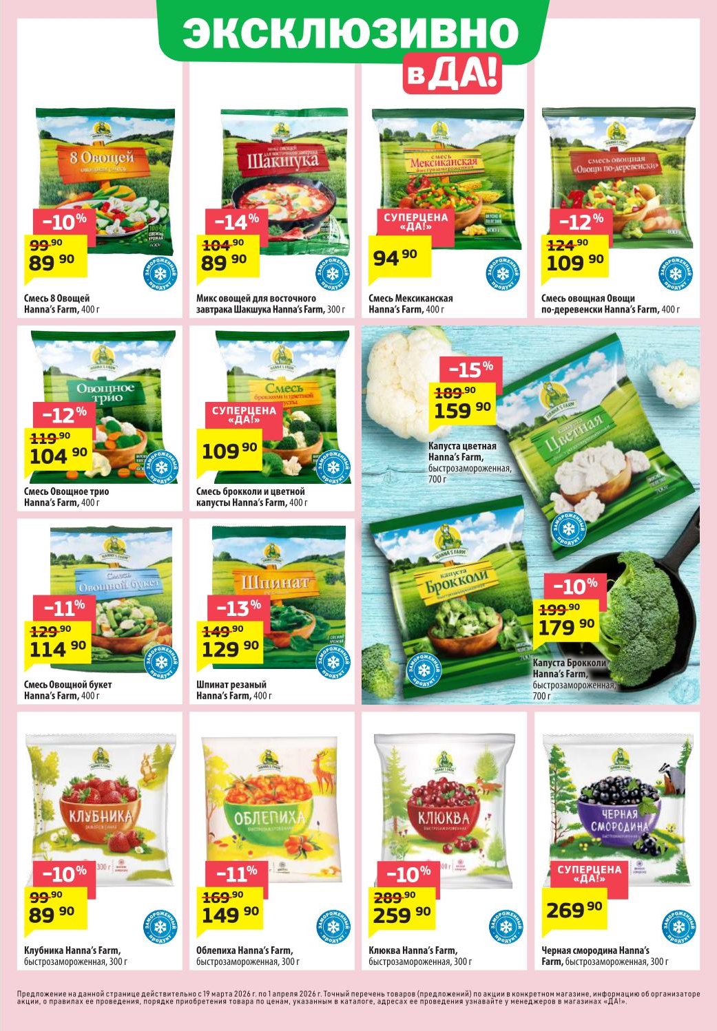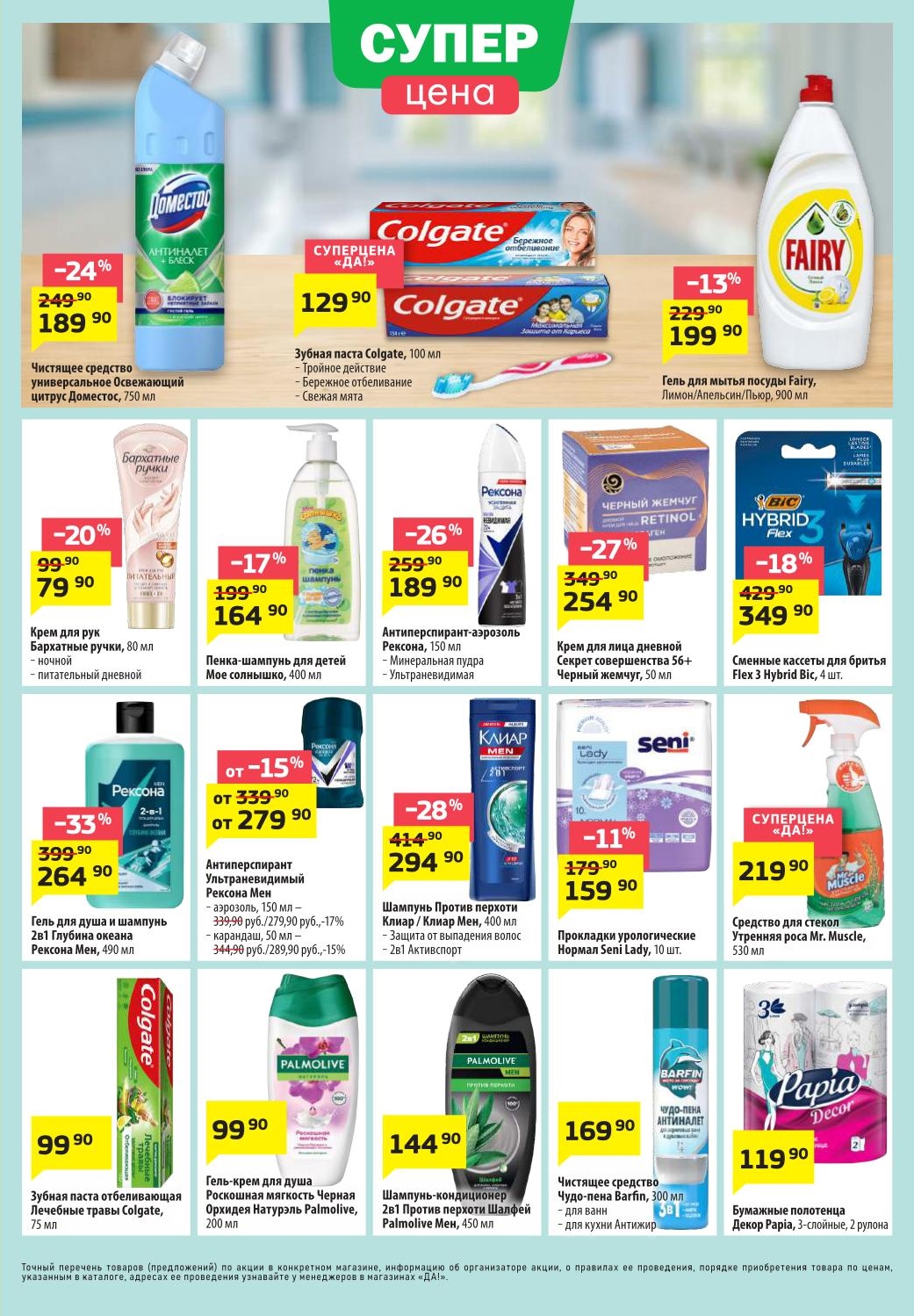 Магазин регулярно предлагает вам свои еженедельные акции и разнообразный каталог ДА! со скидкой. Уникальные возможности ожидают вас при посещении супермаркета каждую неделю. Цены по акции “Да” супермаркет, действуют в городах: Москва, Балашиха, Химки, Подольск, Королев, Мытищи, Люберцы, Электросталь, Коломна, Одинцово, Железнодорожный, Серпухов, Орехово-Зуево, Красногорск, Щелково, Сергиев Посад, Пушкино, Жуковский, Ногинск, Раменское, Клин, Воскресенск, Домодедово и многих других населенных пунктах Московского региона.