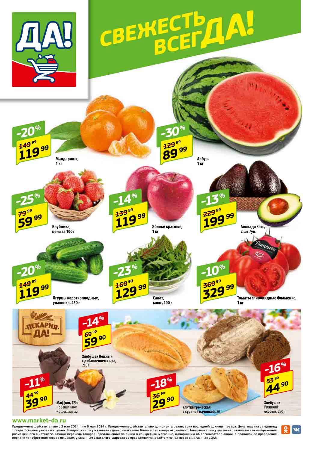 Супермаркет Да акции с 2 мая — 15 мая 2024. Регулярный каталог магазина