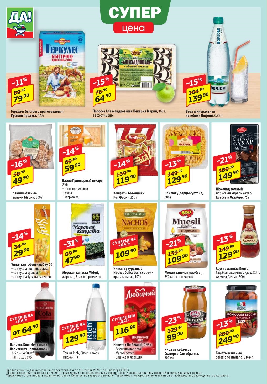 Супермаркет Да акции с 20 ноября — 3 декабря 2025. Регулярный каталог магазина