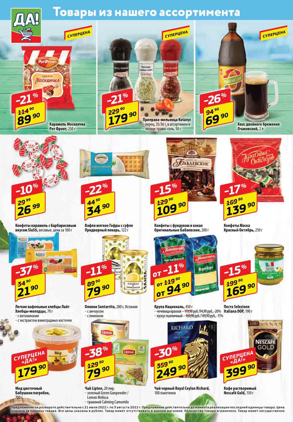 Супермаркет Да! акции с 21 июля — 3 августа 2022