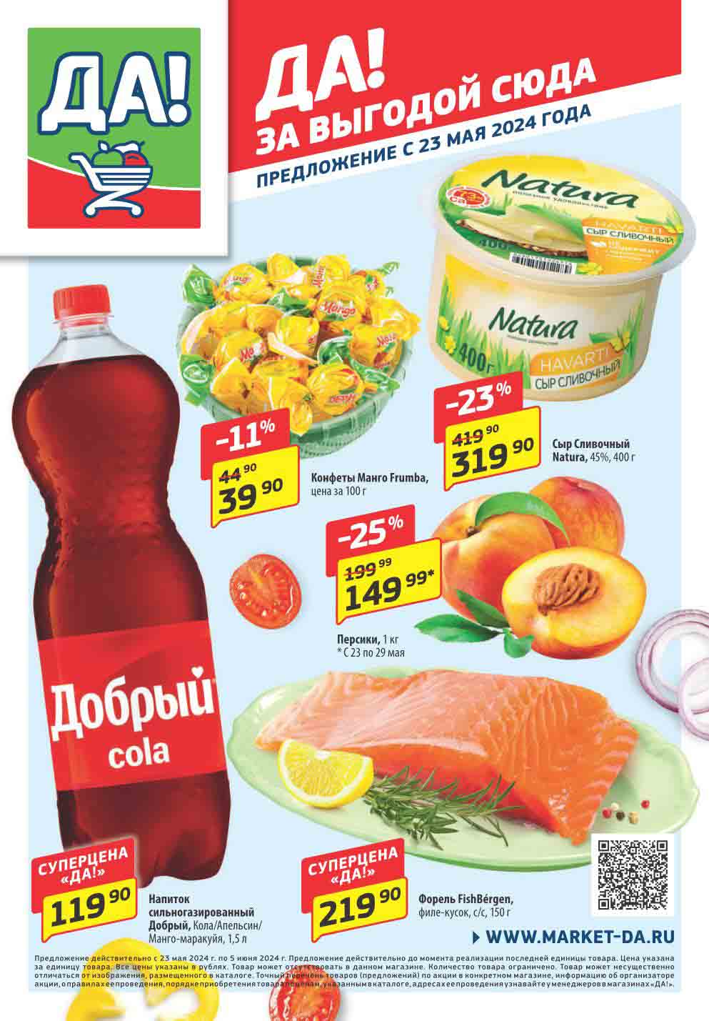 Магазин регулярно предлагает вам свои еженедельные акции и разнообразный каталог ДА! со скидкой. Уникальные возможности ожидают вас при посещении супермаркета каждую неделю. Цены по акции “Да” супермаркет, действуют в городах: Москва, Балашиха, Химки, Подольск, Королев, Мытищи, Люберцы, Электросталь, Коломна, Одинцово, Железнодорожный, Серпухов, Орехово-Зуево, Красногорск, Щелково, Сергиев Посад, Пушкино, Жуковский, Ногинск, Раменское, Клин, Воскресенск, Домодедово и многих других населенных пунктах Московского региона.