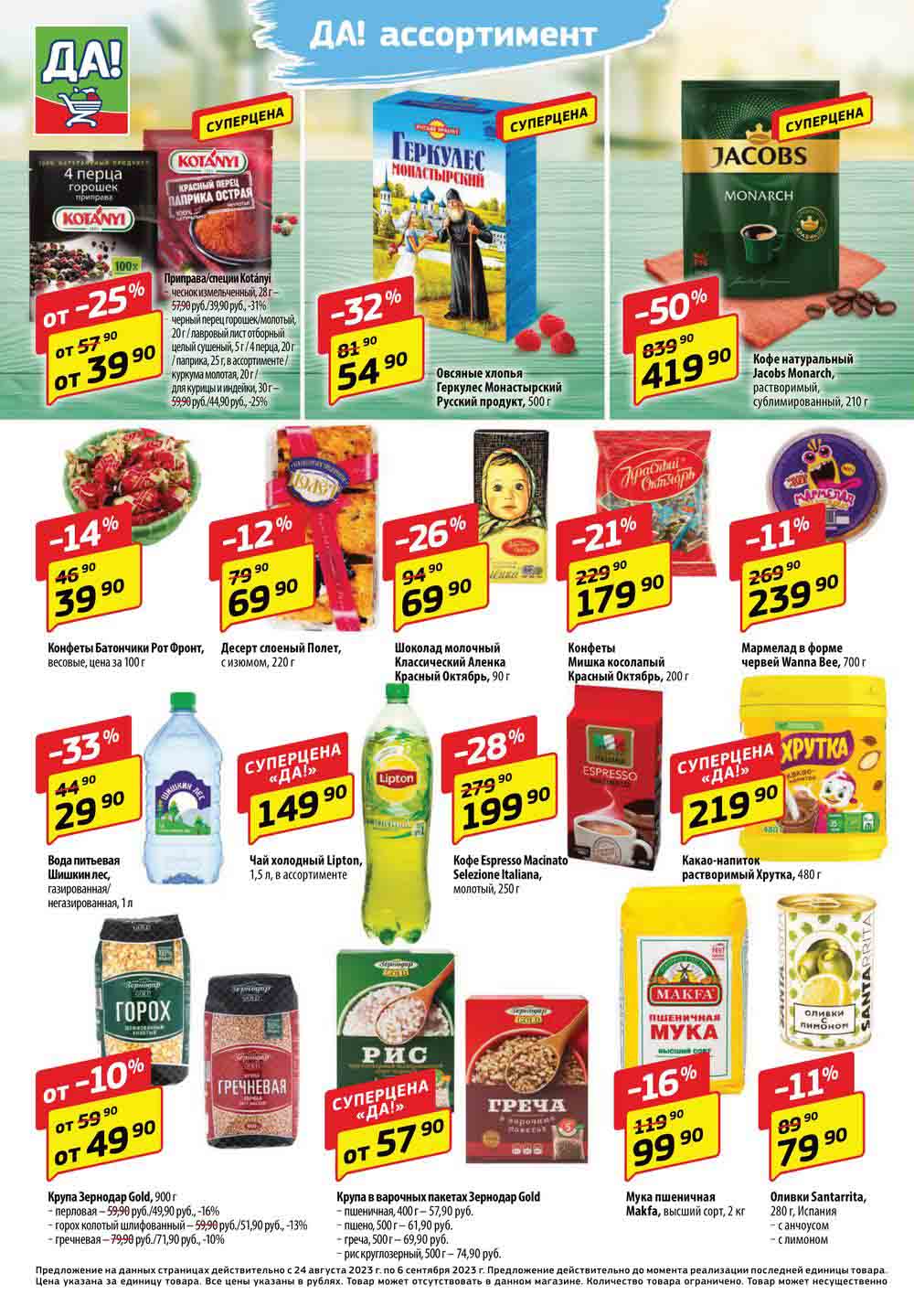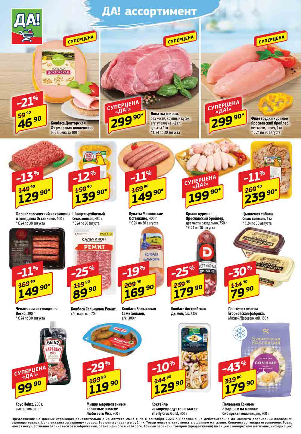 Супермаркет Да акции с 24 августа — 6 сентября 2023. Регулярный каталог магазина
