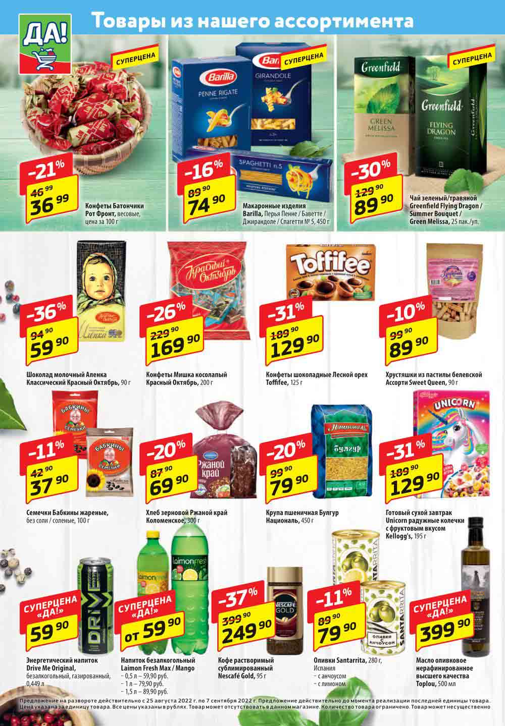 Супермаркет Да! акции с 25 августа — 7 сентября 2022