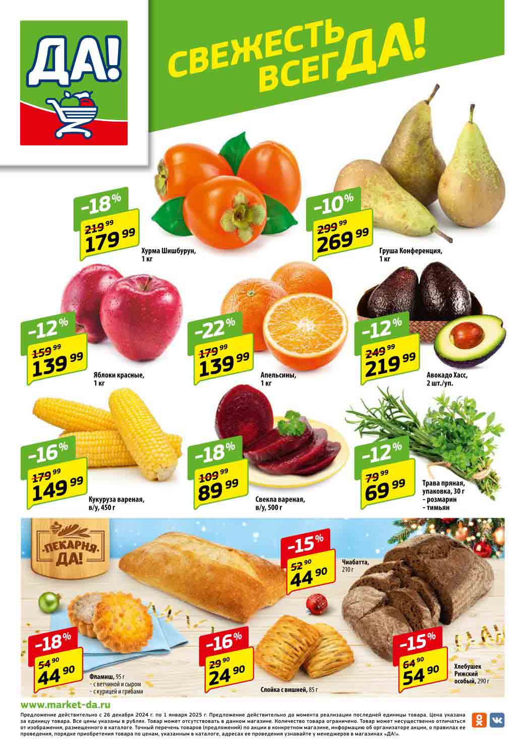 Супермаркет Да акции с 26 декабря — 8 января 2025. Регулярный каталог магазина