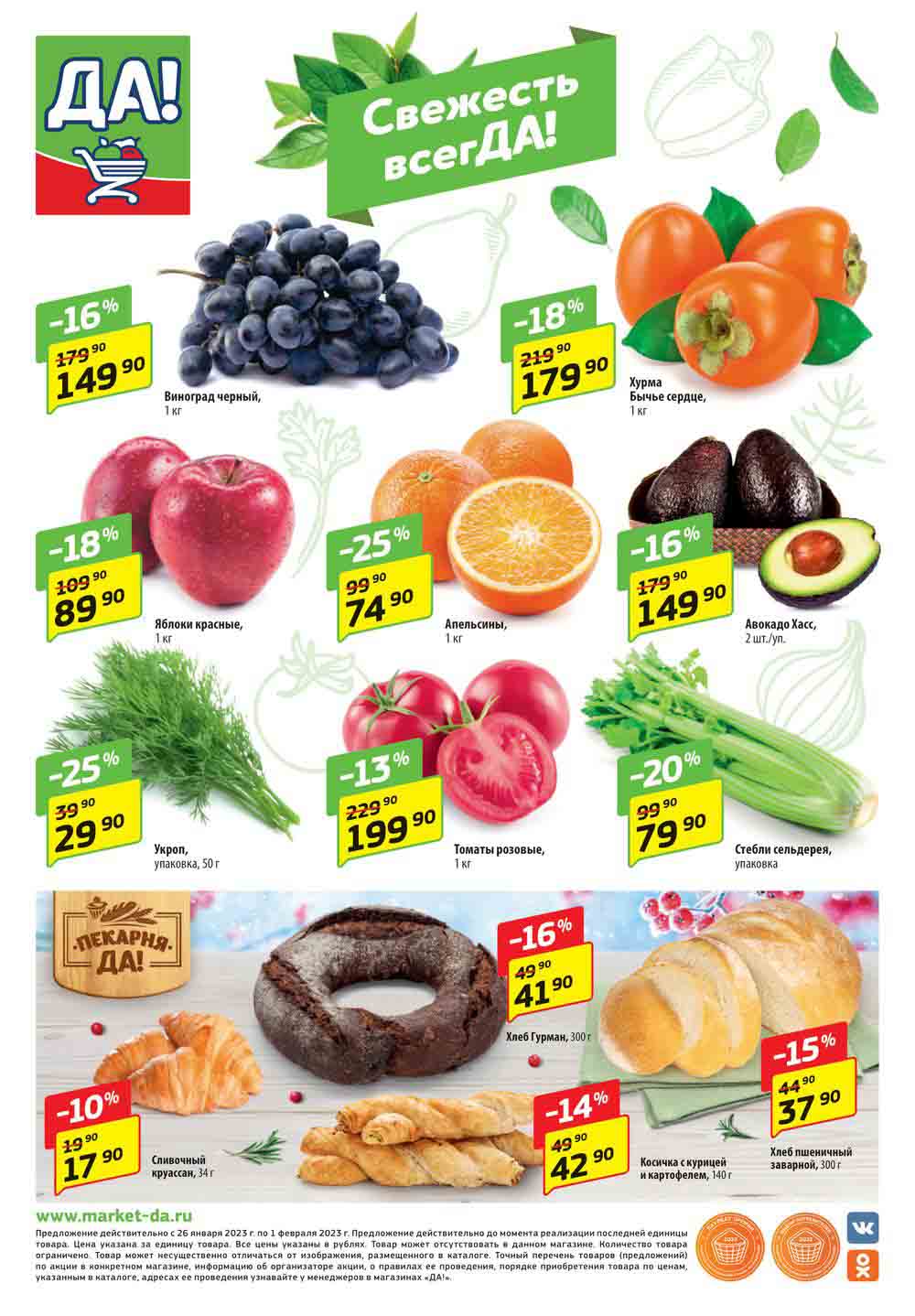 Супермаркет Да акции с 26 января — 8 февраля 2023. Регулярный каталог магазина