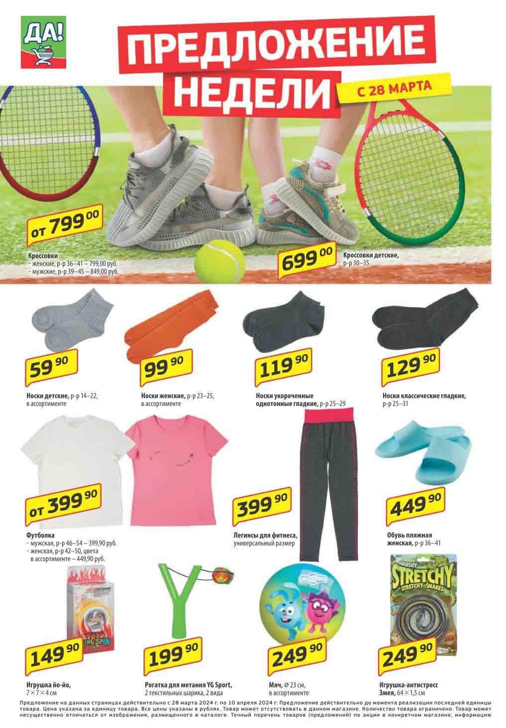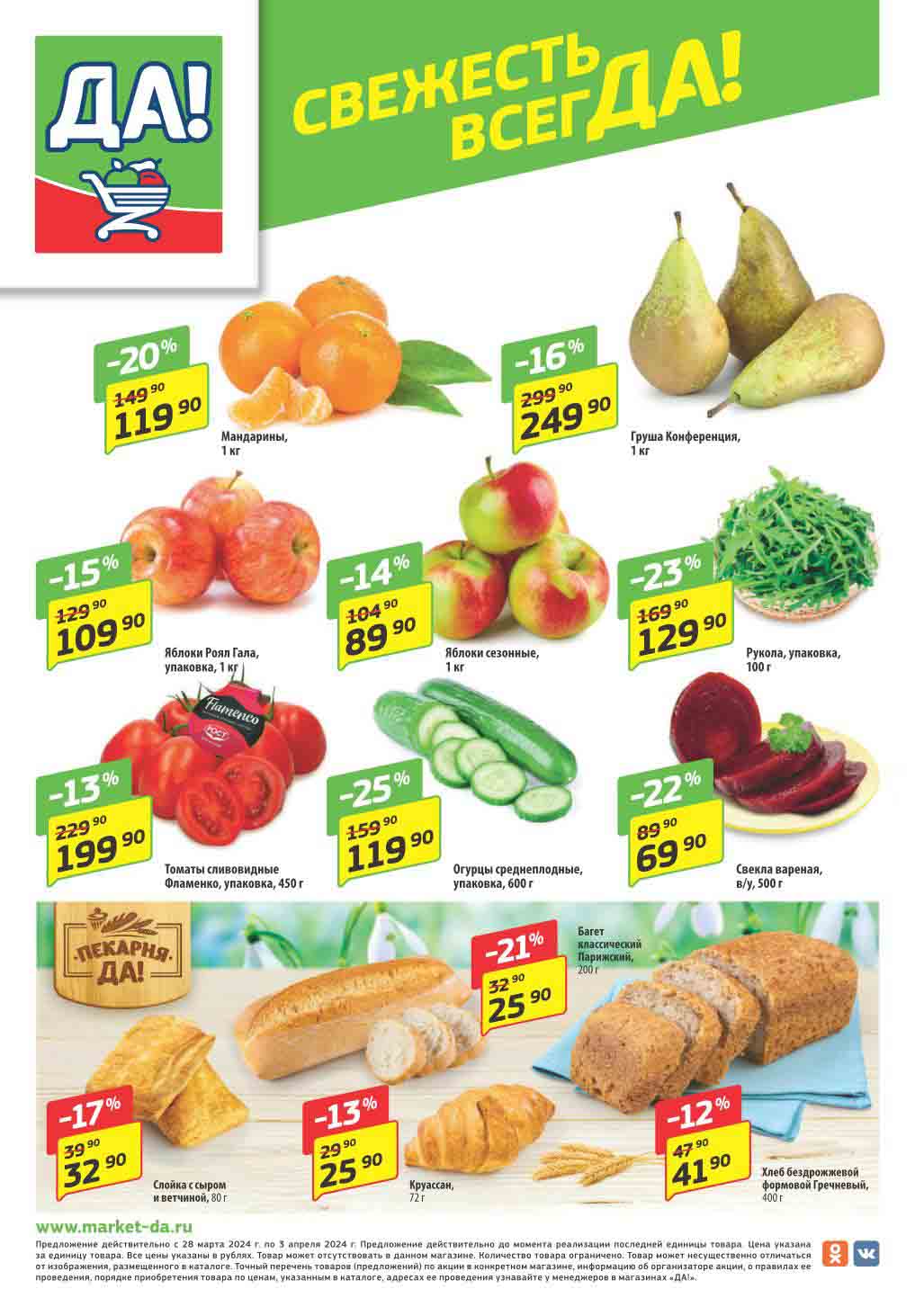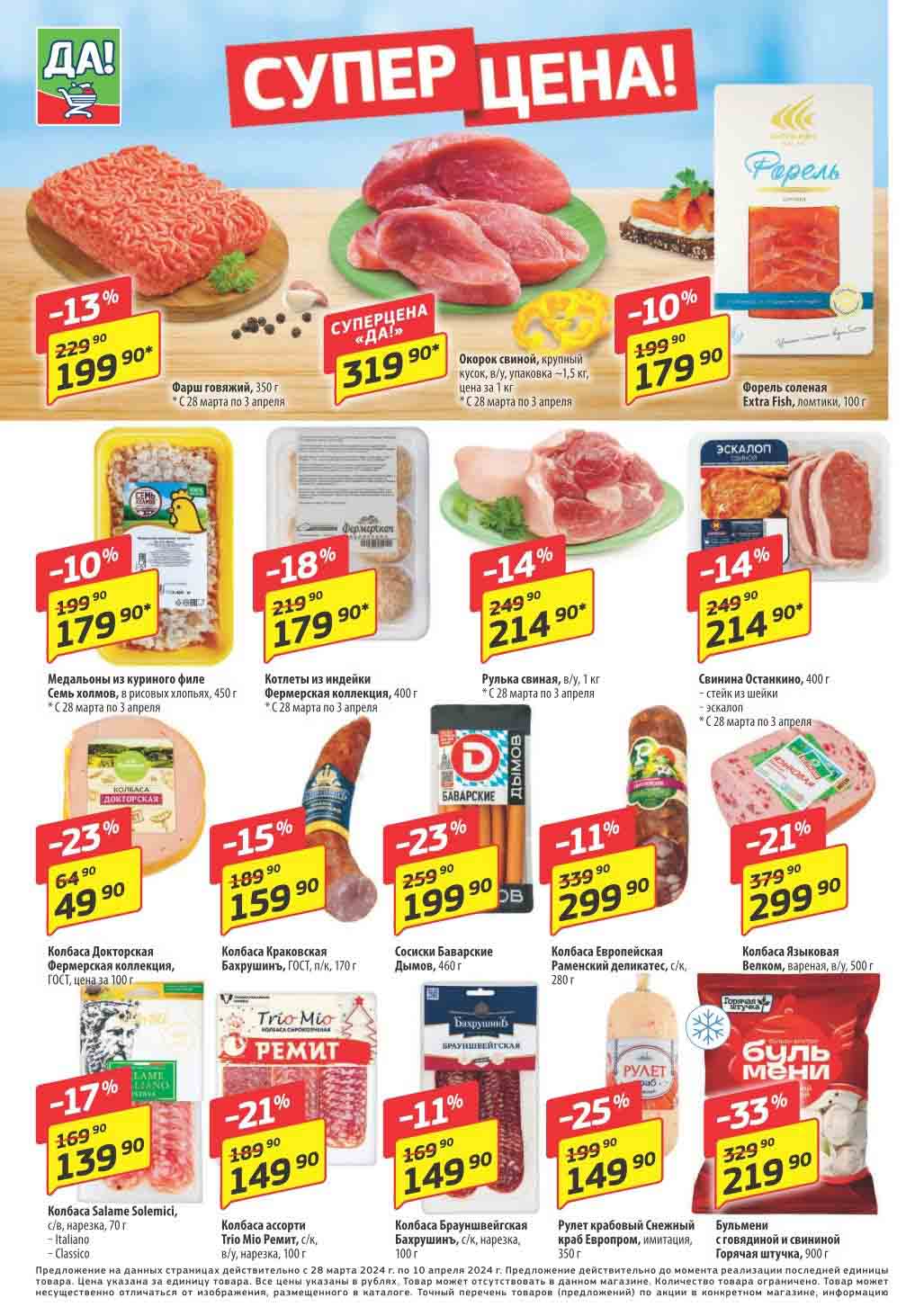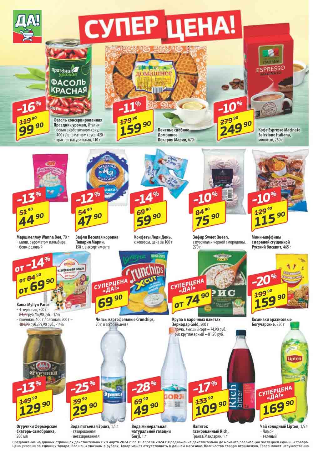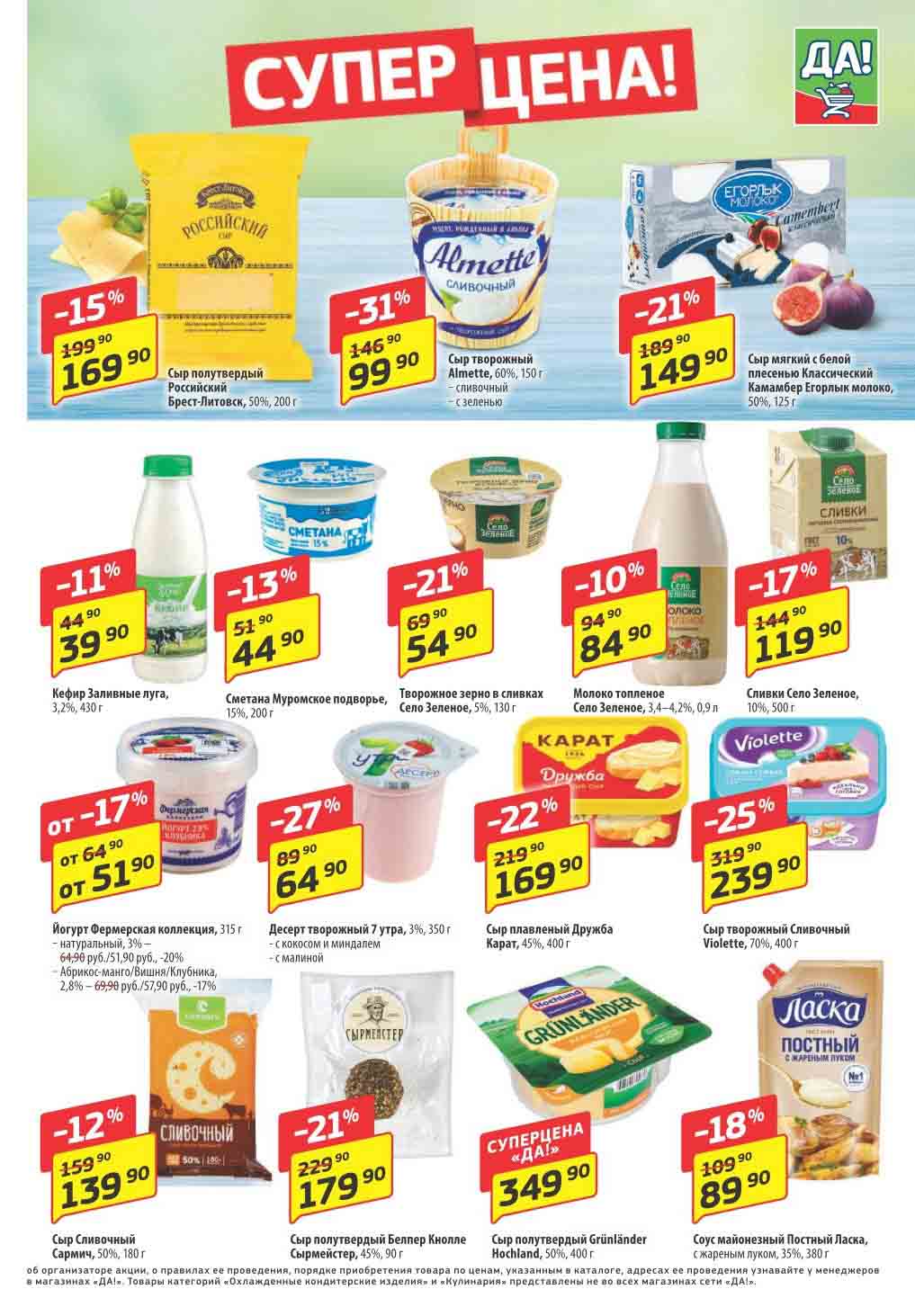 Магазин регулярно предлагает вам свои еженедельные акции и разнообразный каталог ДА! со скидкой. Уникальные возможности ожидают вас при посещении супермаркета каждую неделю. Цены по акции “Да” супермаркет, действуют в городах: Москва, Балашиха, Химки, Подольск, Королев, Мытищи, Люберцы, Электросталь, Коломна, Одинцово, Железнодорожный, Серпухов, Орехово-Зуево, Красногорск, Щелково, Сергиев Посад, Пушкино, Жуковский, Ногинск, Раменское, Клин, Воскресенск, Домодедово и многих других населенных пунктах Московского региона.