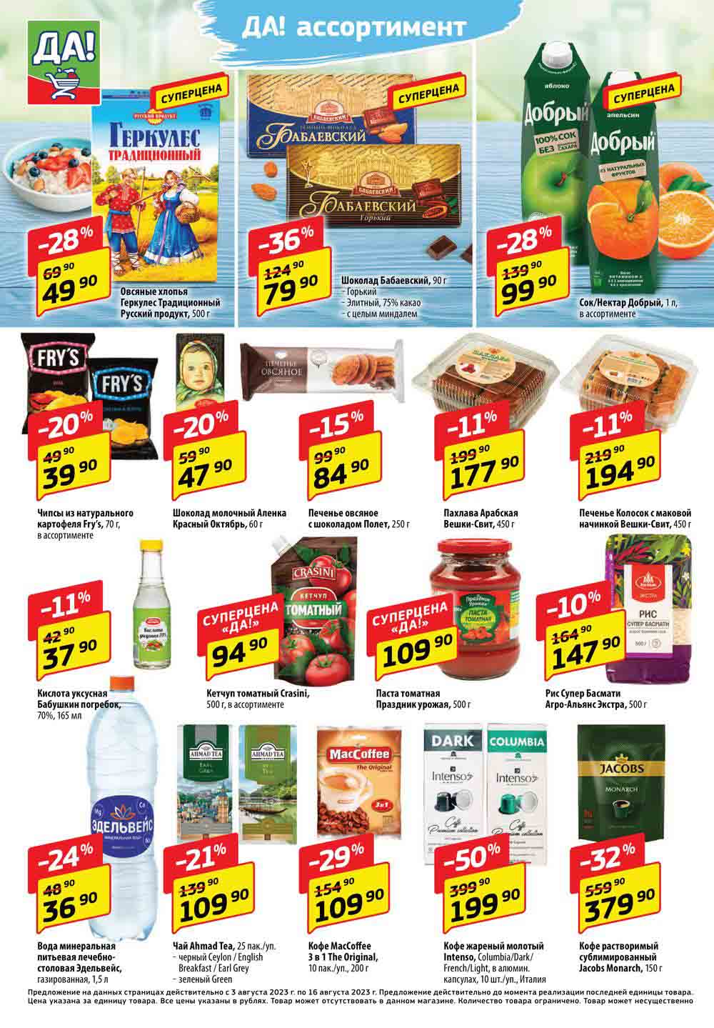 Супермаркет Да акции с 3 августа — 16 августа 2023. Регулярный каталог магазина