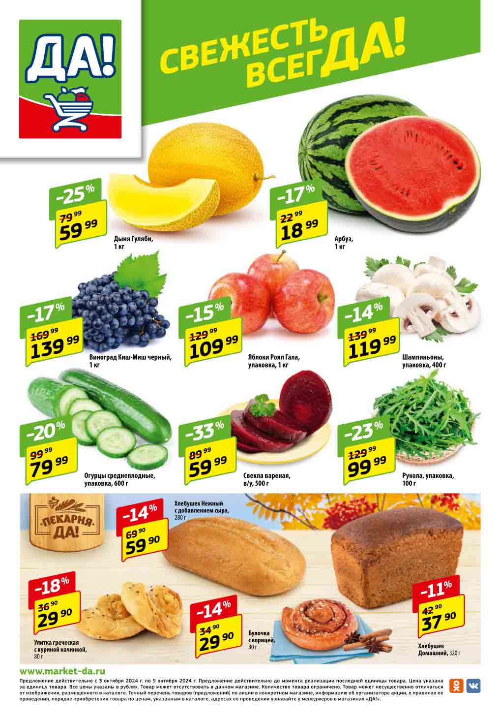 Супермаркет Да акции с 3 октября — 16 октября 2024. Регулярный каталог магазина