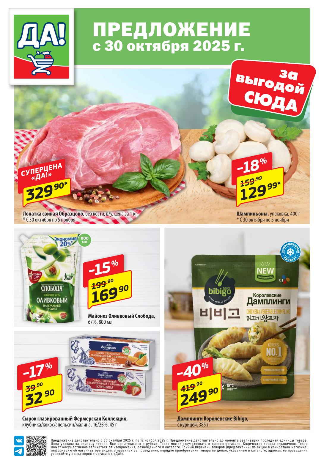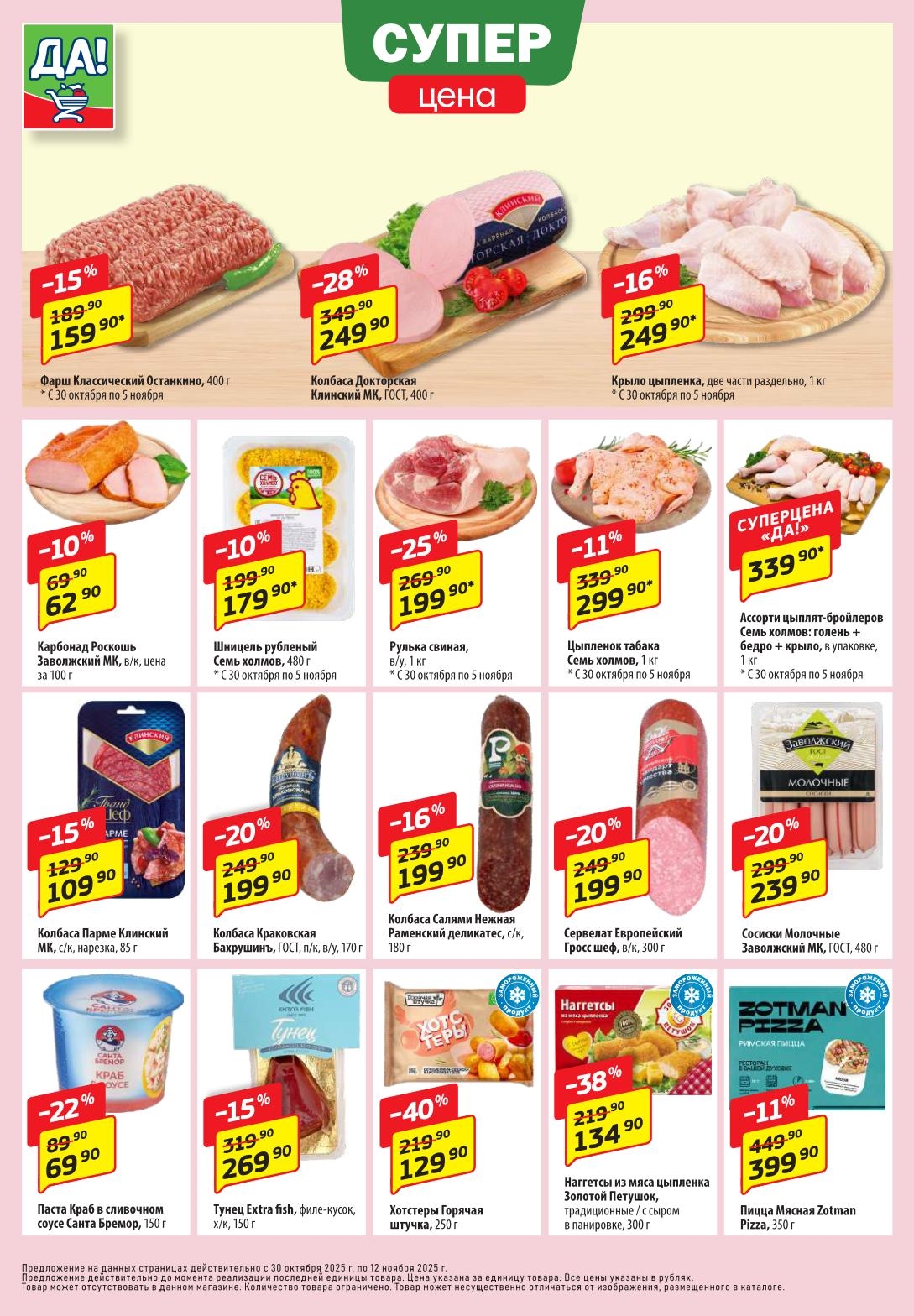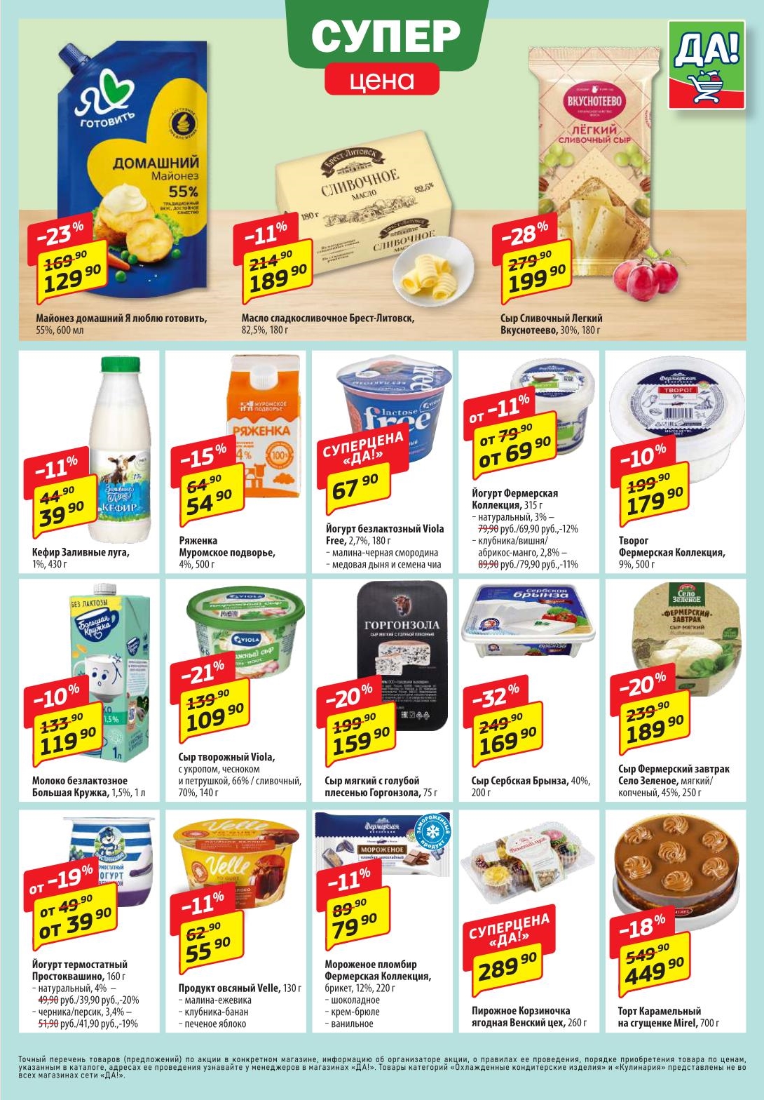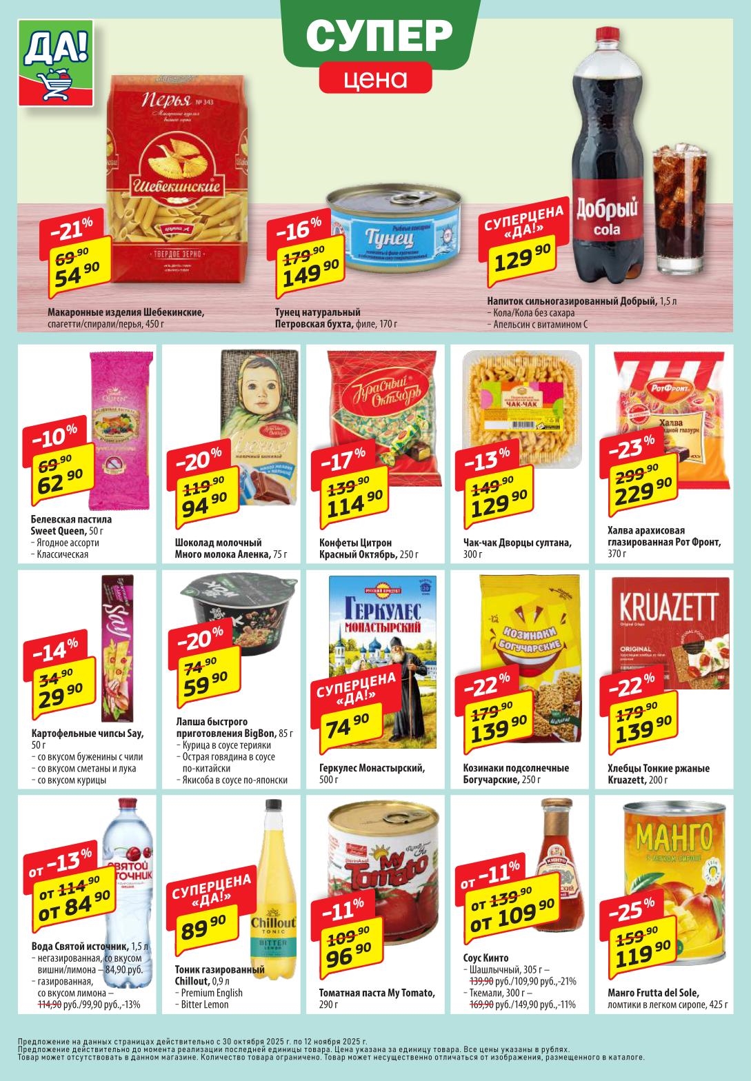 Магазин регулярно предлагает вам свои еженедельные акции и разнообразный каталог ДА! со скидкой. Уникальные возможности ожидают вас при посещении супермаркета каждую неделю. Цены по акции “Да” супермаркет, действуют в городах: Москва, Балашиха, Химки, Подольск, Королев, Мытищи, Люберцы, Электросталь, Коломна, Одинцово, Железнодорожный, Серпухов, Орехово-Зуево, Красногорск, Щелково, Сергиев Посад, Пушкино, Жуковский, Ногинск, Раменское, Клин, Воскресенск, Домодедово и многих других населенных пунктах Московского региона.