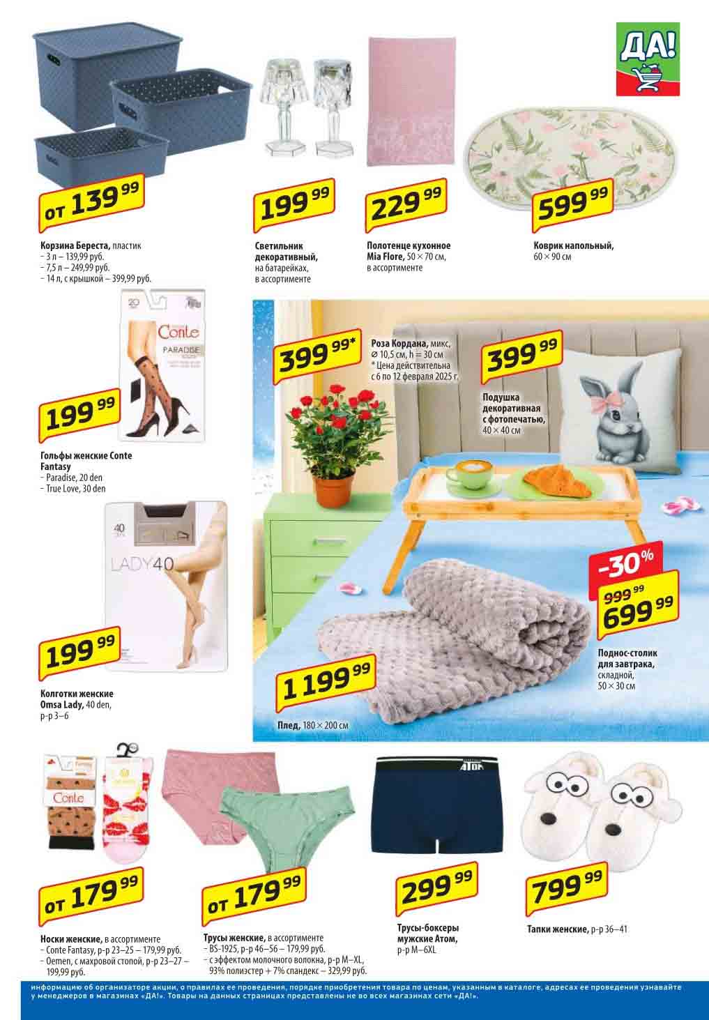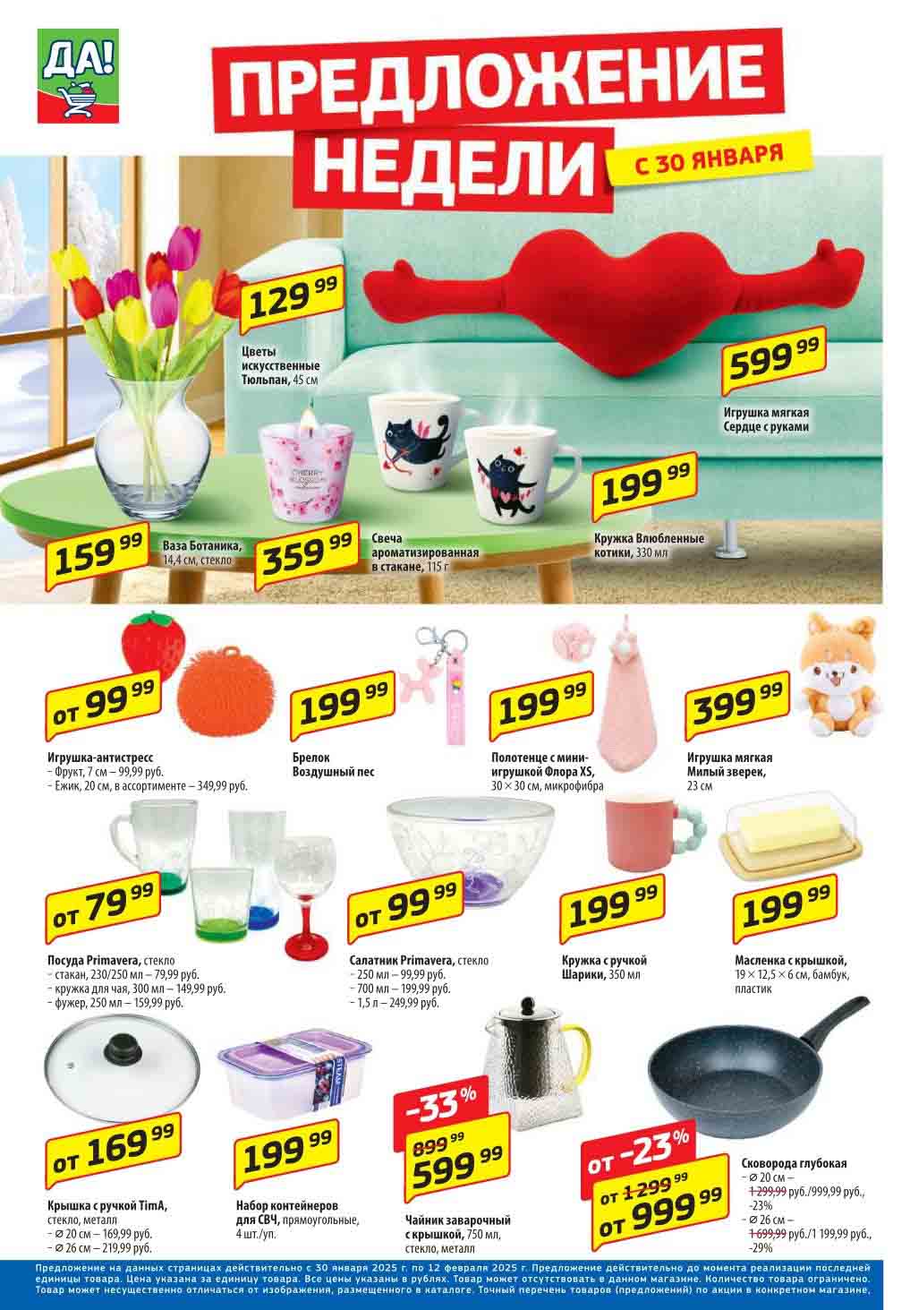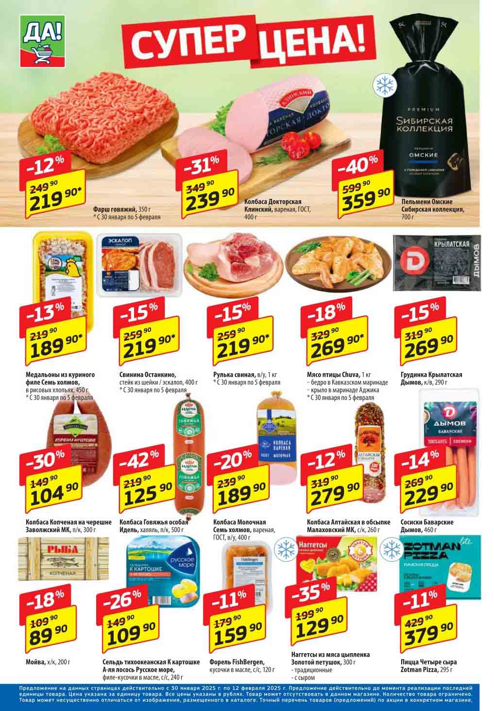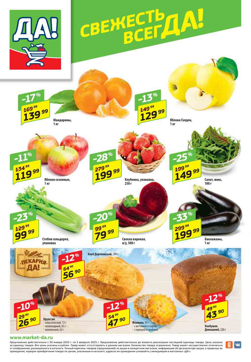 Магазин регулярно предлагает вам свои еженедельные акции и разнообразный каталог ДА! со скидкой. Уникальные возможности ожидают вас при посещении супермаркета каждую неделю. Цены по акции “Да” супермаркет, действуют в городах: Москва, Балашиха, Химки, Подольск, Королев, Мытищи, Люберцы, Электросталь, Коломна, Одинцово, Железнодорожный, Серпухов, Орехово-Зуево, Красногорск, Щелково, Сергиев Посад, Пушкино, Жуковский, Ногинск, Раменское, Клин, Воскресенск, Домодедово и многих других населенных пунктах Московского региона.