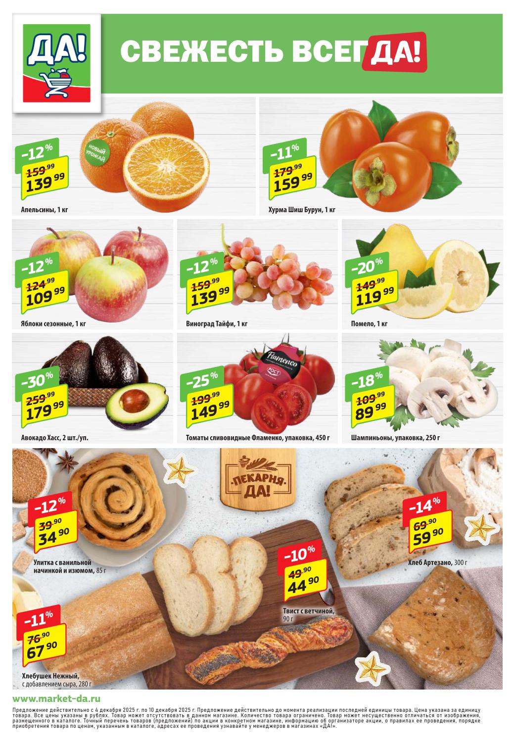 Супермаркет Да акции с 4 декабря — 17 декабря 2025. Регулярный каталог магазина