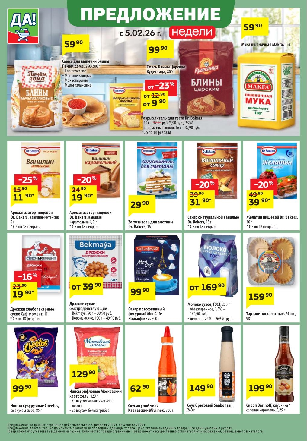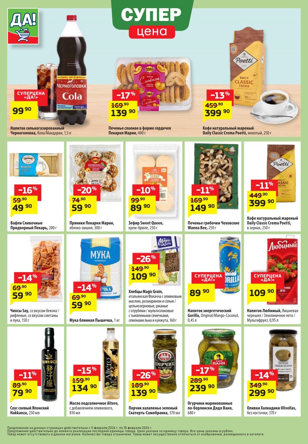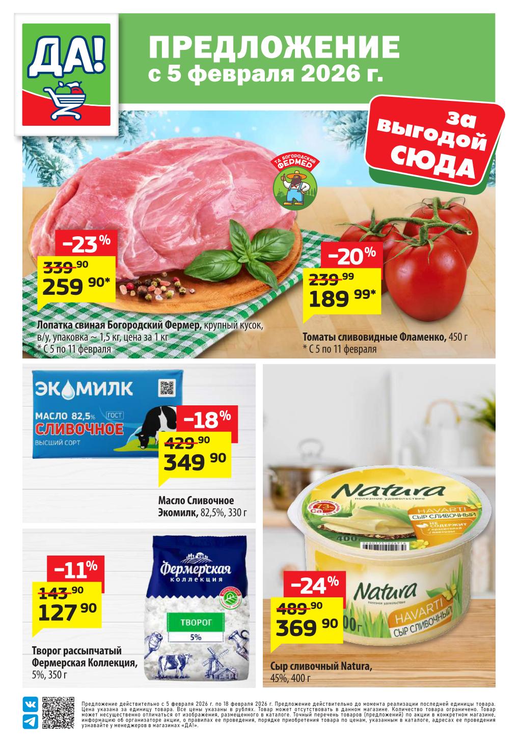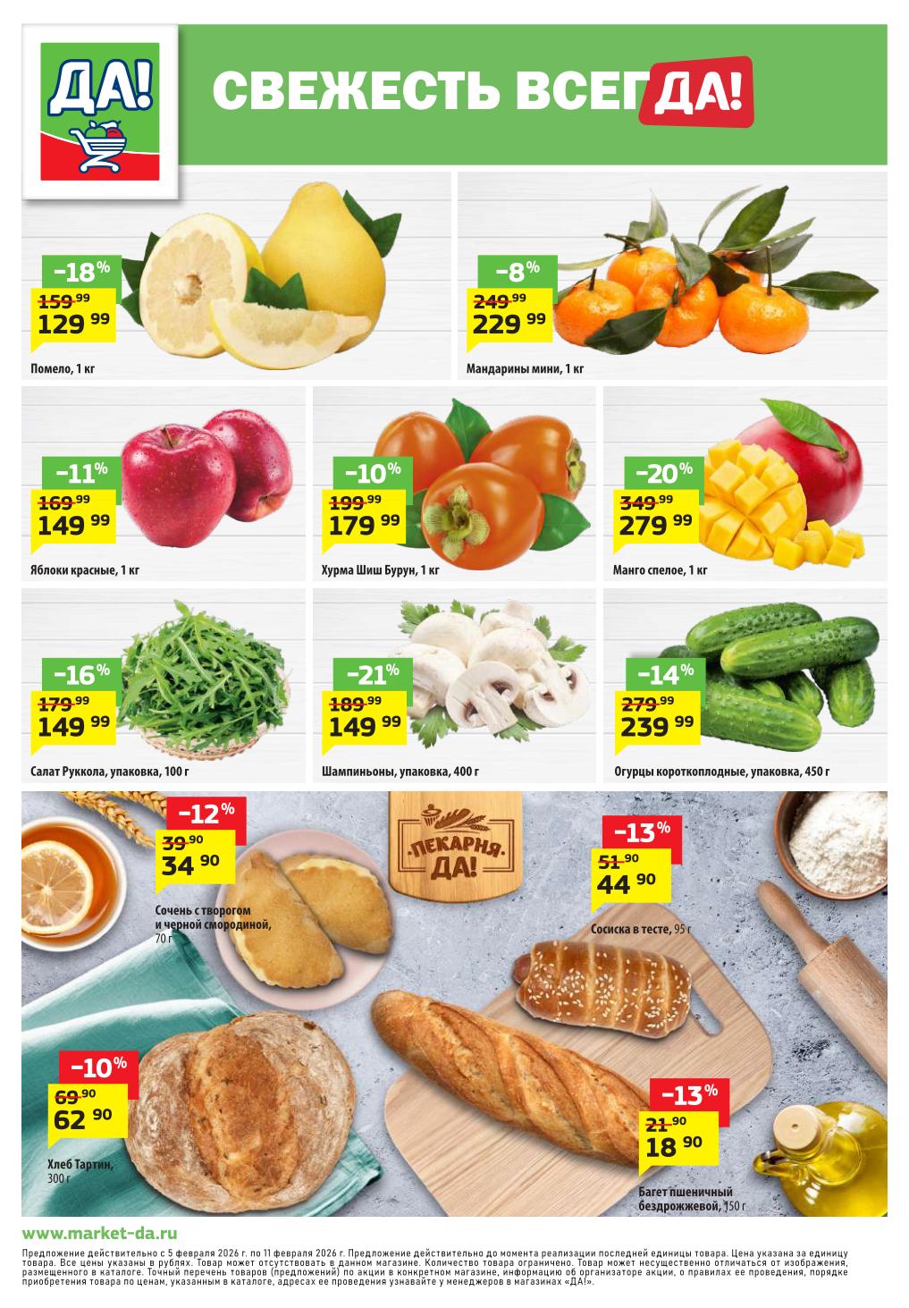 Магазин регулярно предлагает вам свои еженедельные акции и разнообразный каталог ДА! со скидкой. Уникальные возможности ожидают вас при посещении супермаркета каждую неделю. Цены по акции “Да” супермаркет, действуют в городах: Москва, Балашиха, Химки, Подольск, Королев, Мытищи, Люберцы, Электросталь, Коломна, Одинцово, Железнодорожный, Серпухов, Орехово-Зуево, Красногорск, Щелково, Сергиев Посад, Пушкино, Жуковский, Ногинск, Раменское, Клин, Воскресенск, Домодедово и многих других населенных пунктах Московского региона.