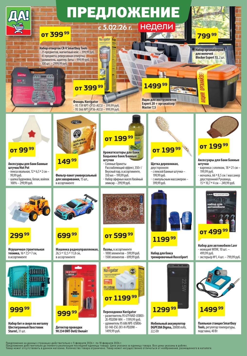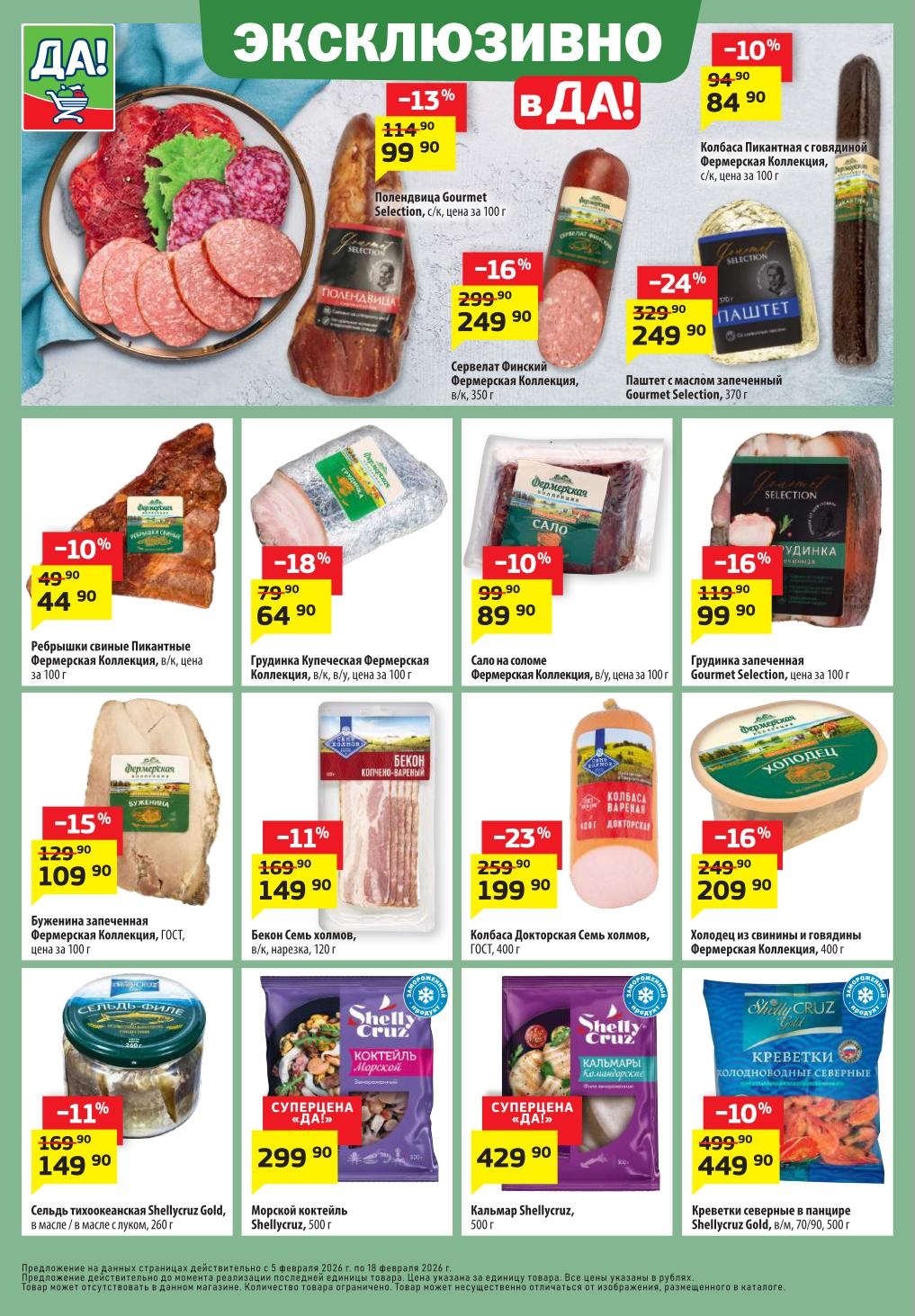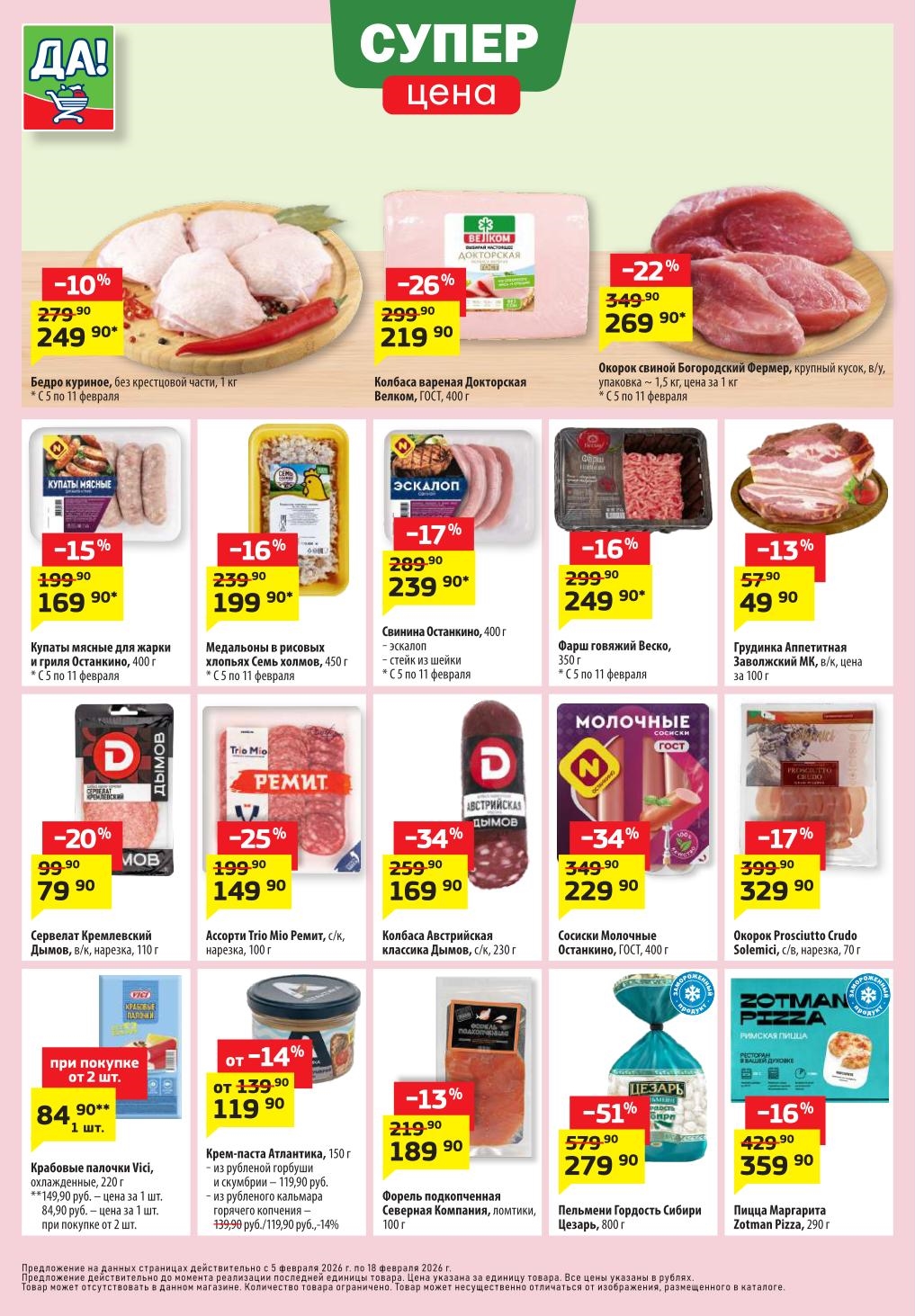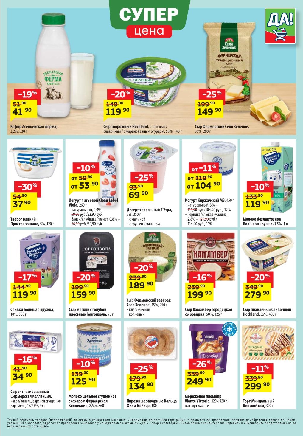 Магазин регулярно предлагает вам свои еженедельные акции и разнообразный каталог ДА! со скидкой. Уникальные возможности ожидают вас при посещении супермаркета каждую неделю. Цены по акции “Да” супермаркет, действуют в городах: Москва, Балашиха, Химки, Подольск, Королев, Мытищи, Люберцы, Электросталь, Коломна, Одинцово, Железнодорожный, Серпухов, Орехово-Зуево, Красногорск, Щелково, Сергиев Посад, Пушкино, Жуковский, Ногинск, Раменское, Клин, Воскресенск, Домодедово и многих других населенных пунктах Московского региона.