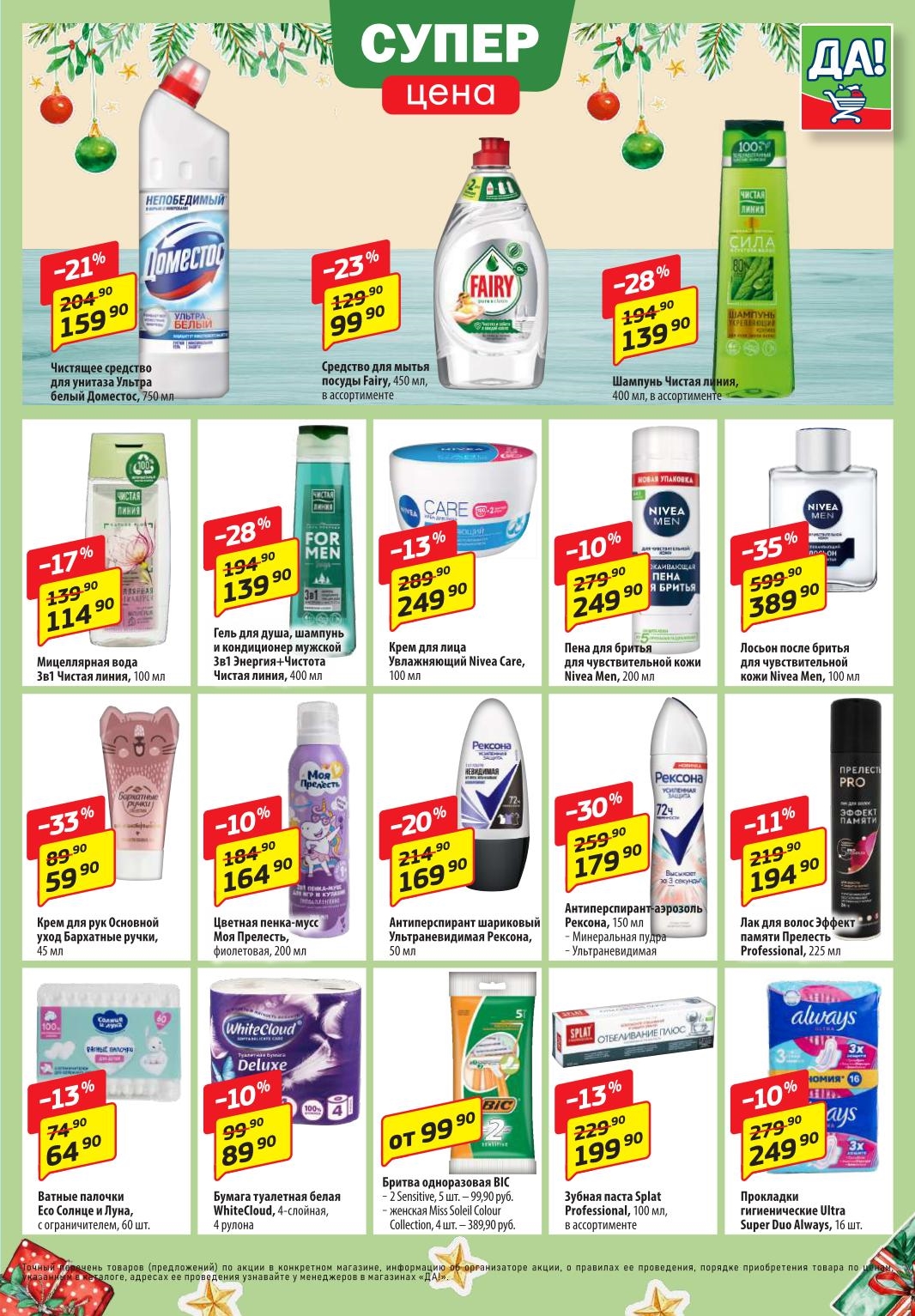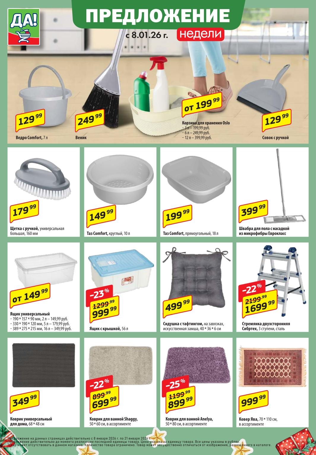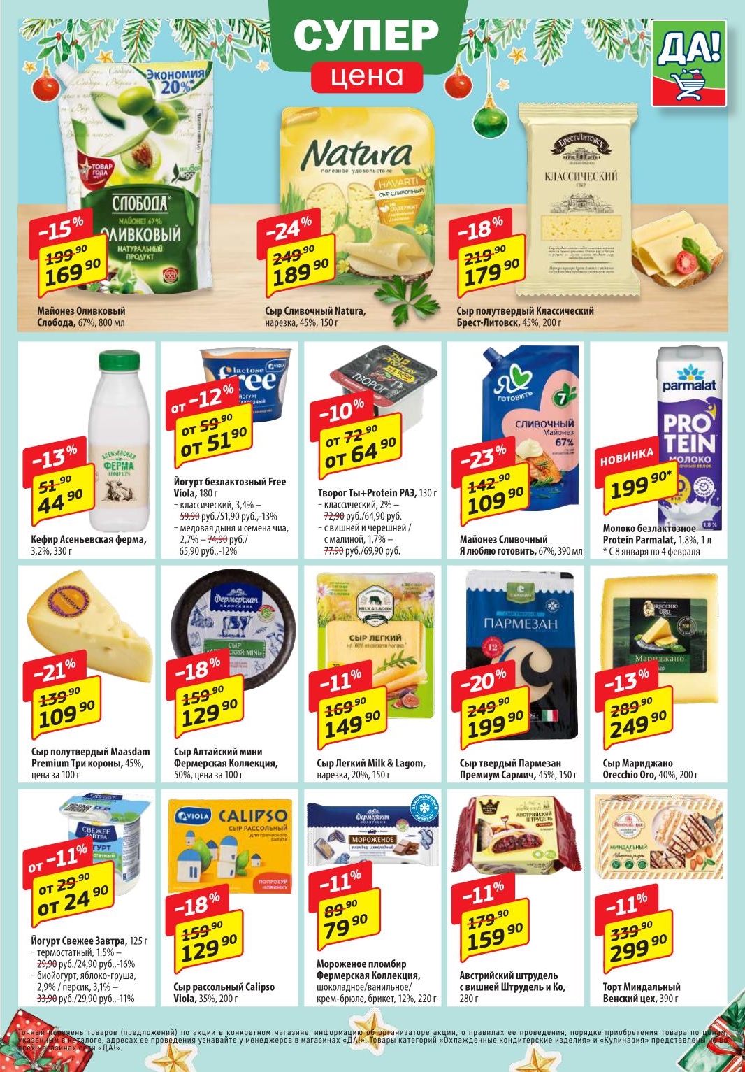 Магазин регулярно предлагает вам свои еженедельные акции и разнообразный каталог ДА! со скидкой. Уникальные возможности ожидают вас при посещении супермаркета каждую неделю. Цены по акции “Да” супермаркет, действуют в городах: Москва, Балашиха, Химки, Подольск, Королев, Мытищи, Люберцы, Электросталь, Коломна, Одинцово, Железнодорожный, Серпухов, Орехово-Зуево, Красногорск, Щелково, Сергиев Посад, Пушкино, Жуковский, Ногинск, Раменское, Клин, Воскресенск, Домодедово и многих других населенных пунктах Московского региона.