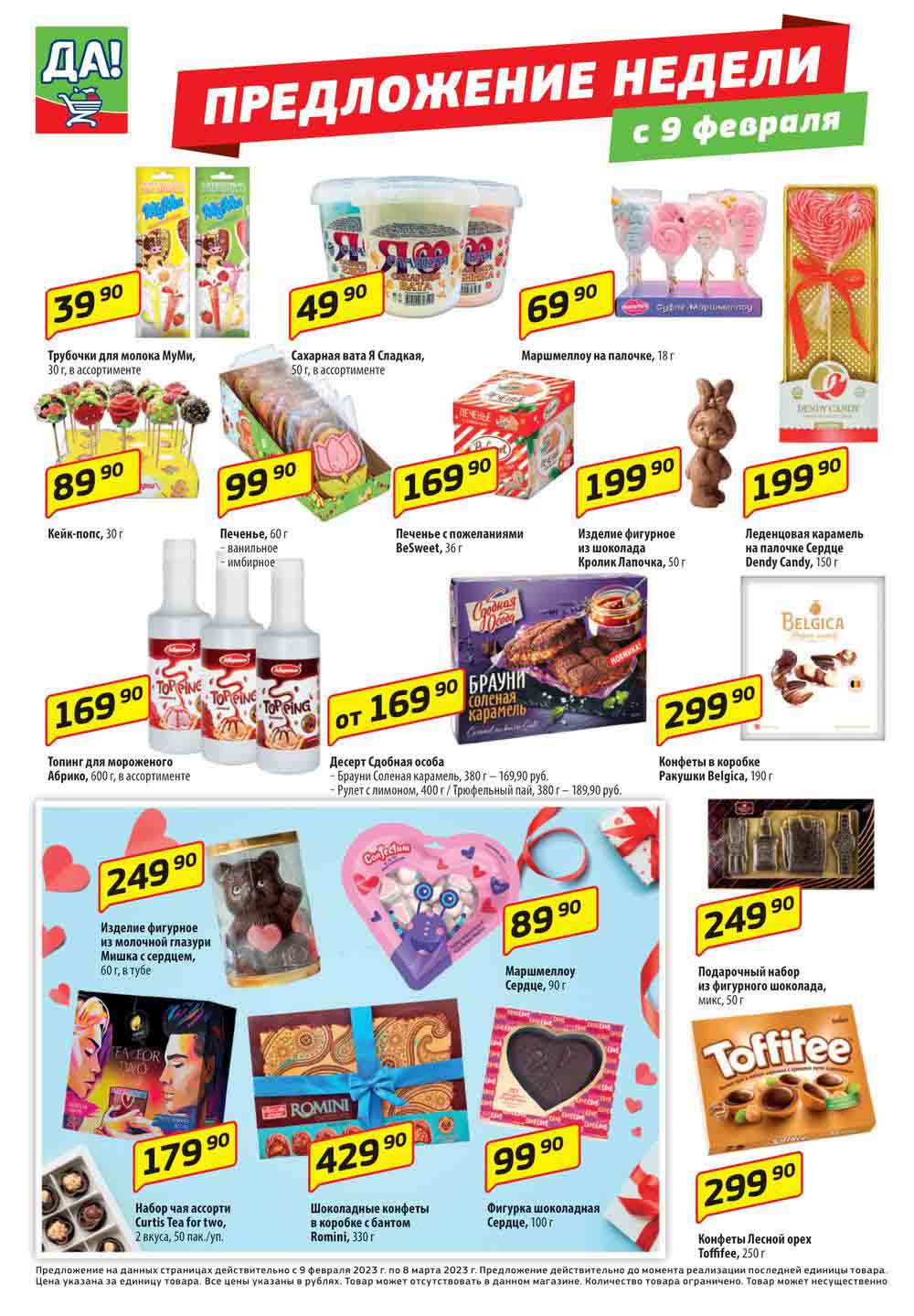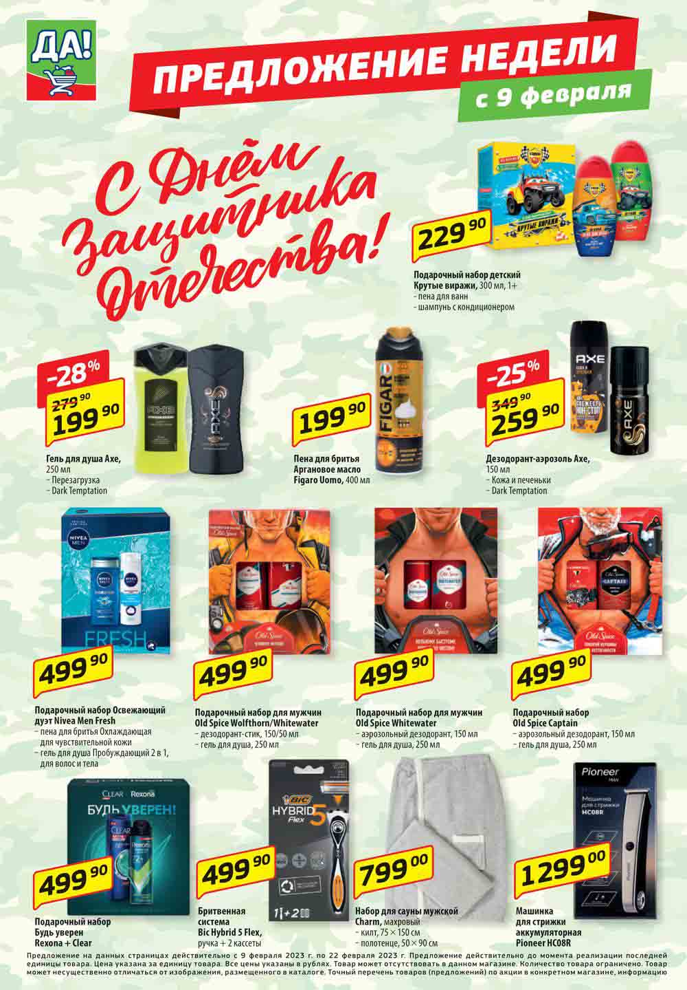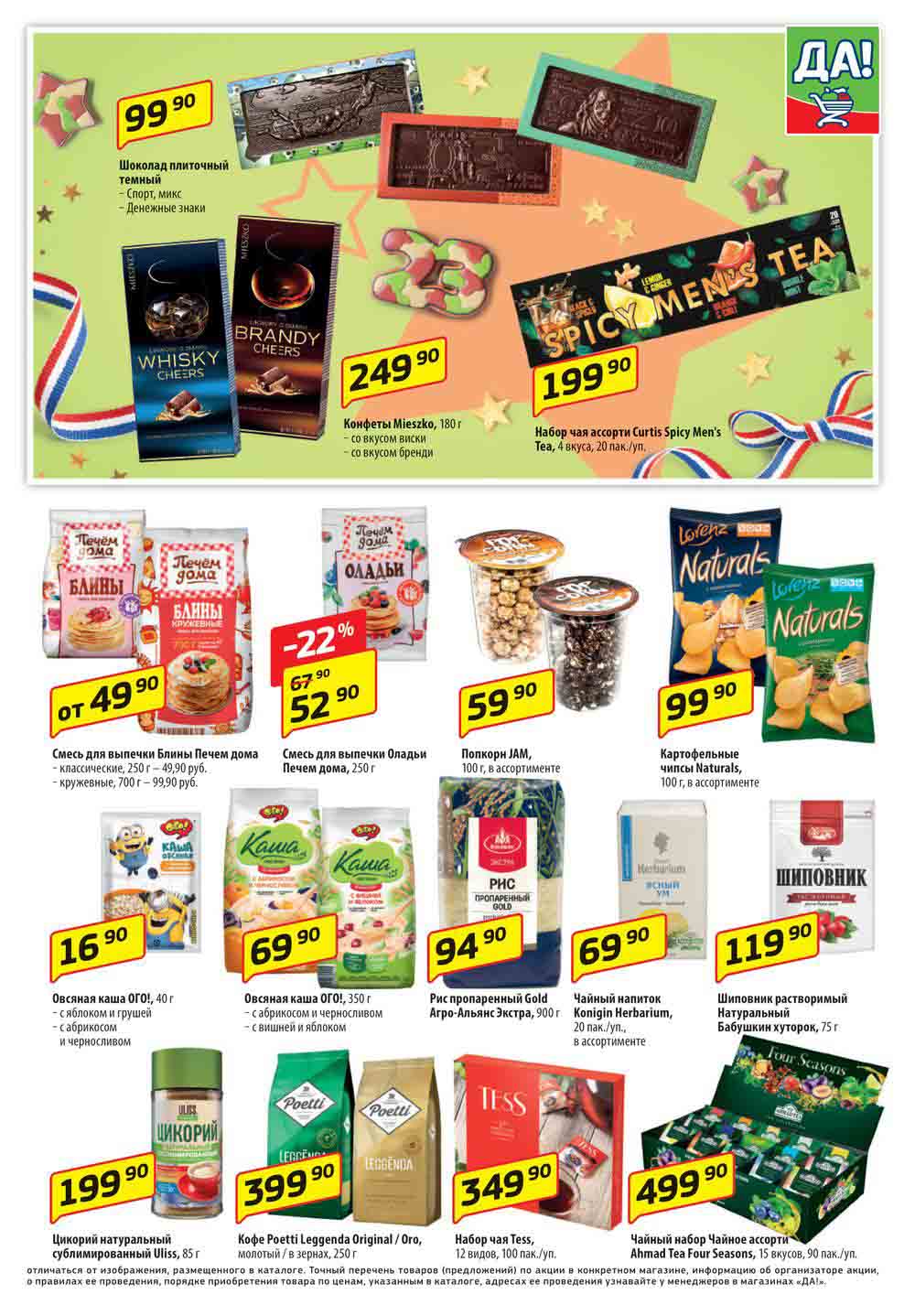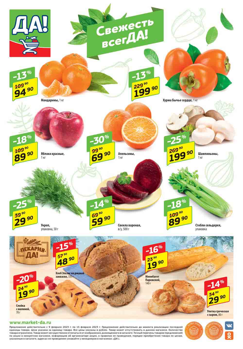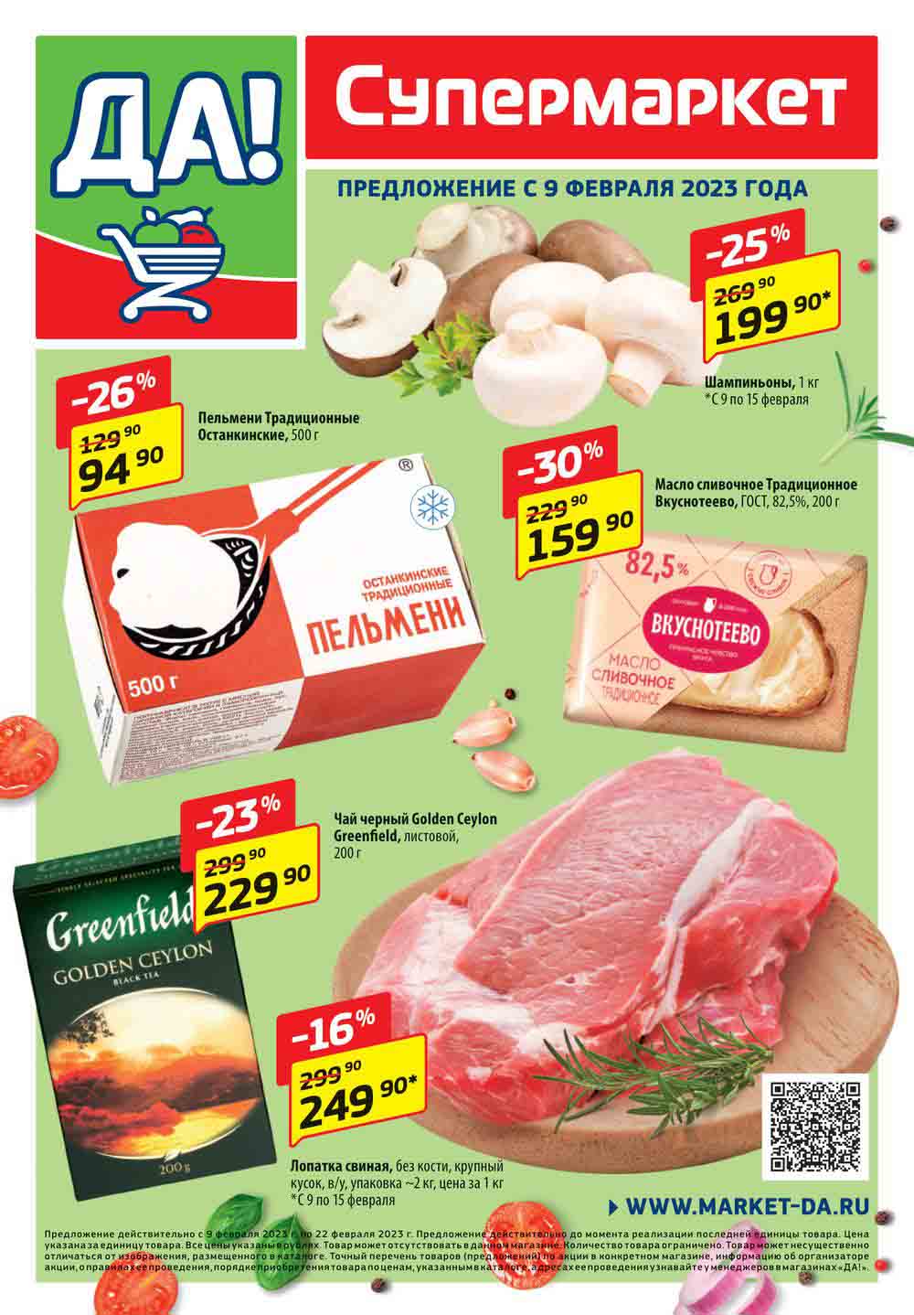 Магазин регулярно предлагает вам свои еженедельные акции и разнообразный каталог ДА! со скидкой. Уникальные возможности ожидают вас при посещении супермаркета каждую неделю. Цены по акции “Да” супермаркет, действуют в городах: Москва, Балашиха, Химки, Подольск, Королев, Мытищи, Люберцы, Электросталь, Коломна, Одинцово, Железнодорожный, Серпухов, Орехово-Зуево, Красногорск, Щелково, Сергиев Посад, Пушкино, Жуковский, Ногинск, Раменское, Клин, Воскресенск, Домодедово и многих других населенных пунктах Московского региона.