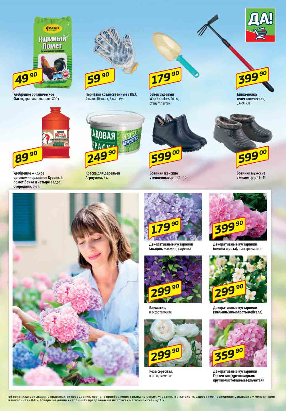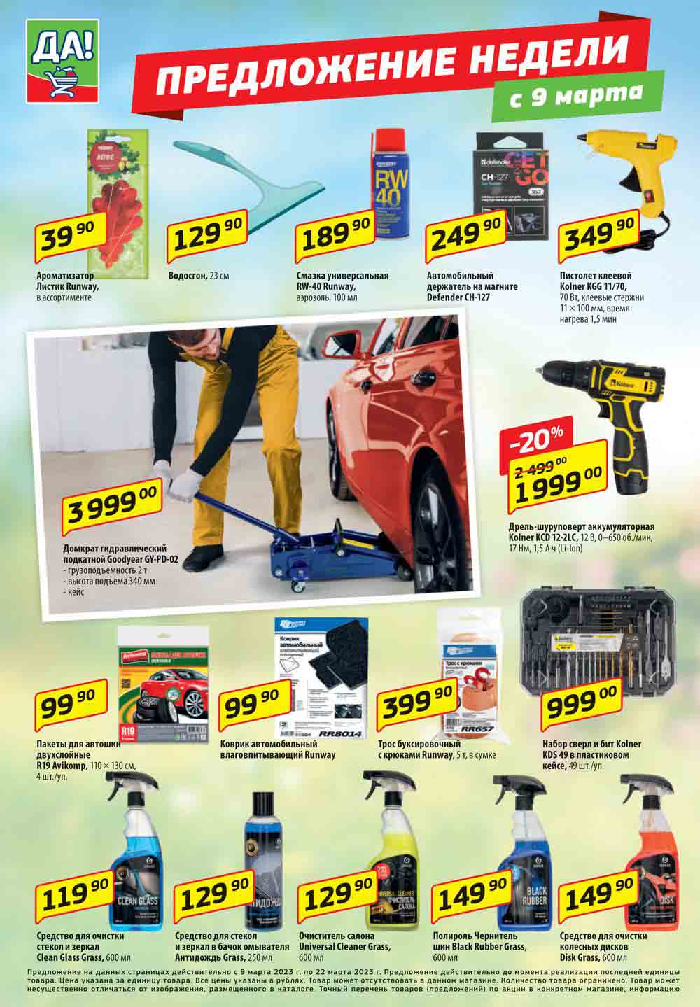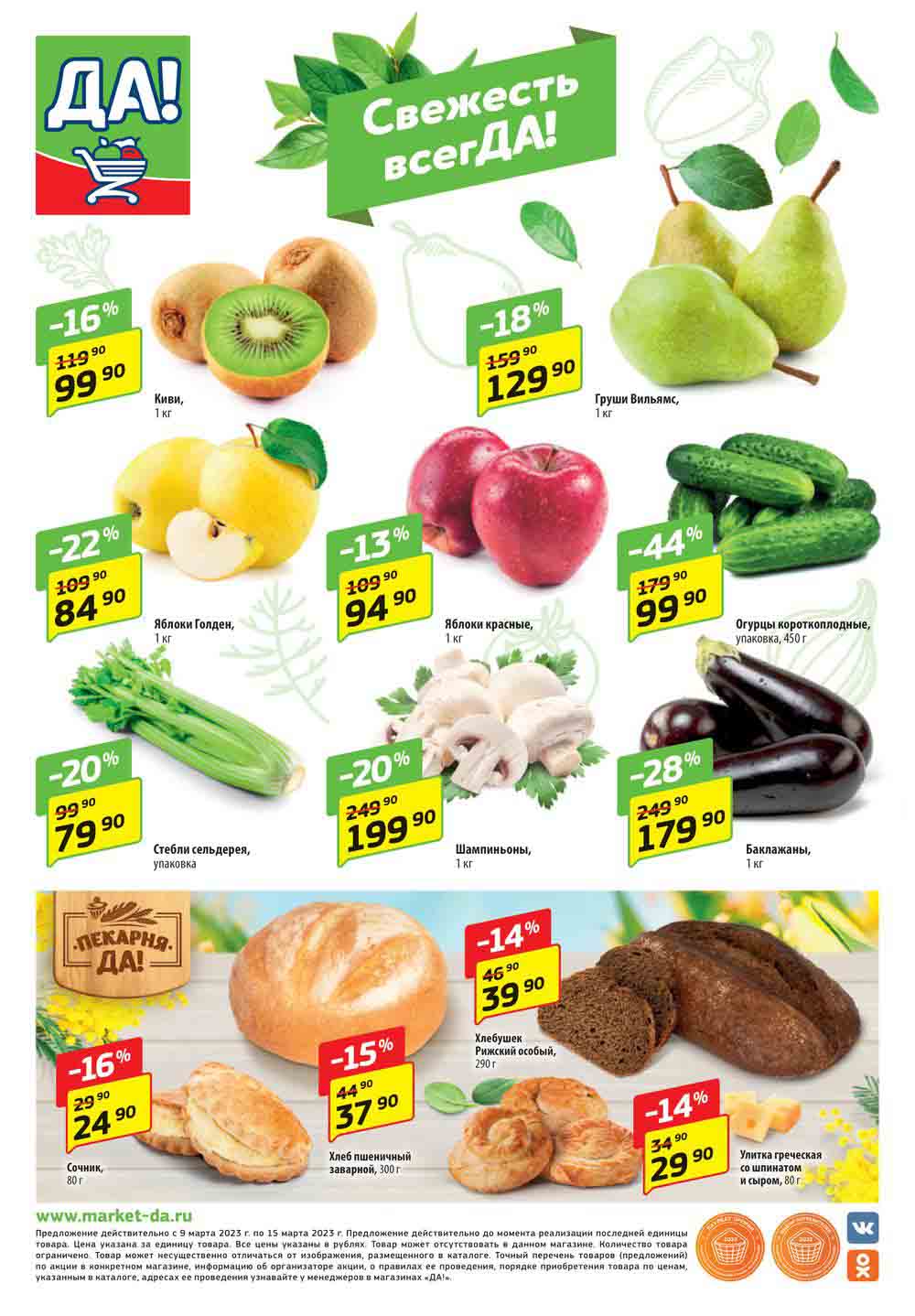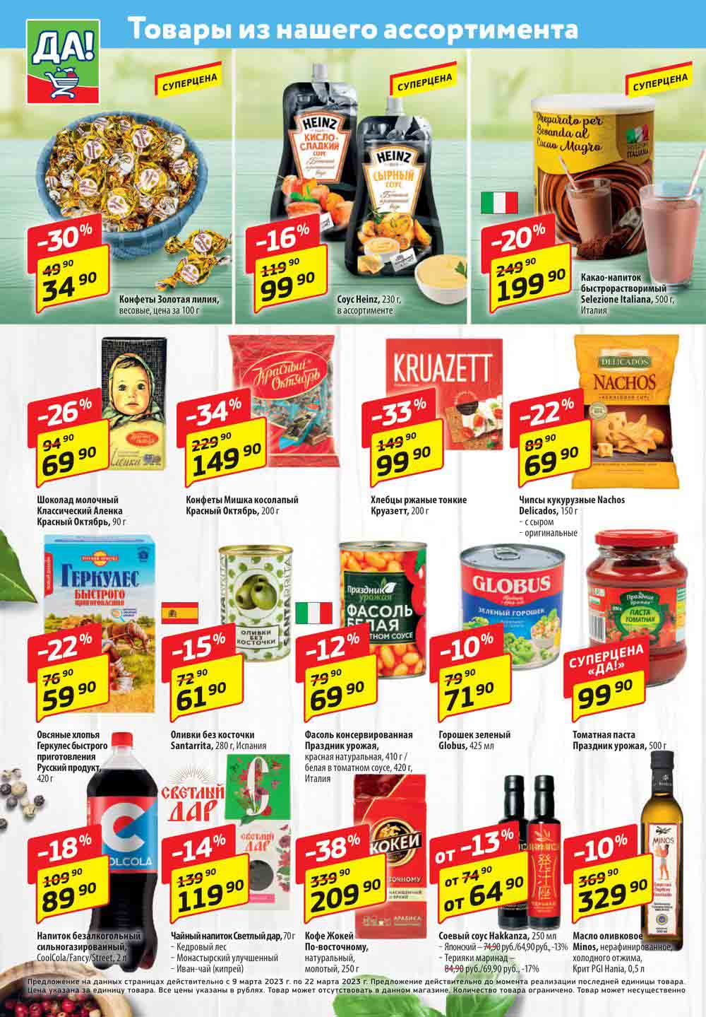 Магазин регулярно предлагает вам свои еженедельные акции и разнообразный каталог ДА! со скидкой. Уникальные возможности ожидают вас при посещении супермаркета каждую неделю. Цены по акции “Да” супермаркет, действуют в городах: Москва, Балашиха, Химки, Подольск, Королев, Мытищи, Люберцы, Электросталь, Коломна, Одинцово, Железнодорожный, Серпухов, Орехово-Зуево, Красногорск, Щелково, Сергиев Посад, Пушкино, Жуковский, Ногинск, Раменское, Клин, Воскресенск, Домодедово и многих других населенных пунктах Московского региона.