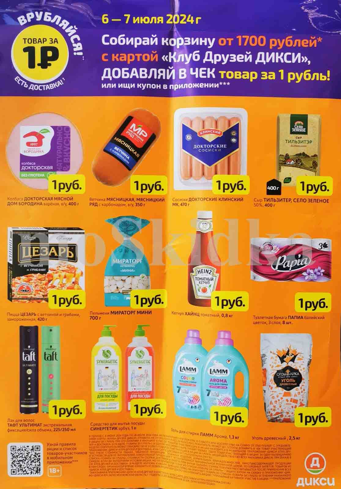 Товар за 1 рубль в Дикси 7 июля и 8 июля 2024