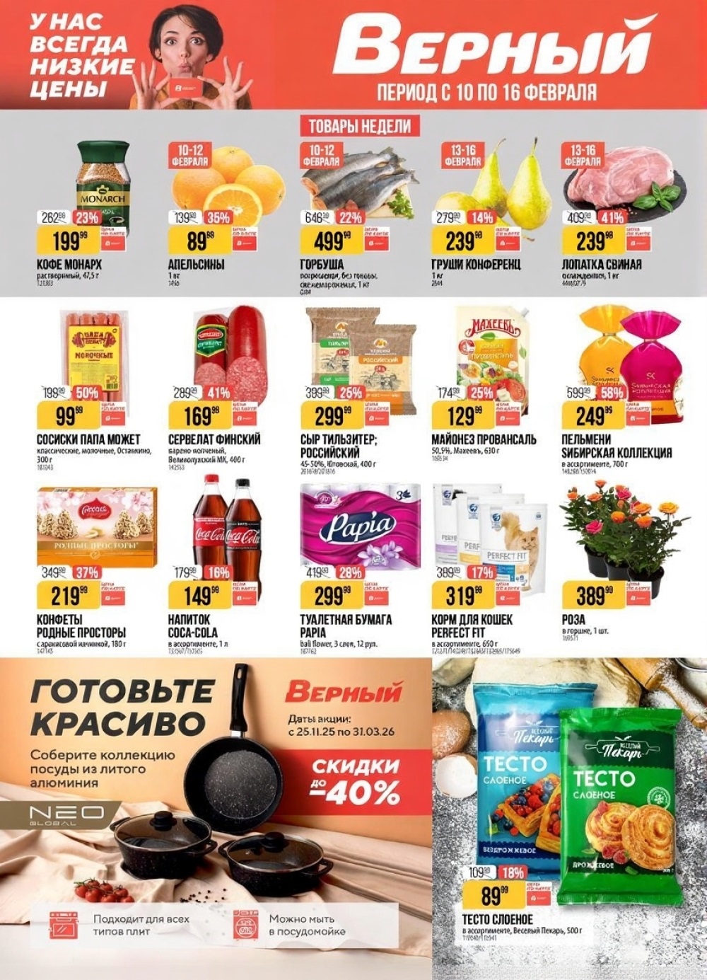 Верный акции с 10 февраля — 16 февраля 2026. Каталог в супермаркете сегодня