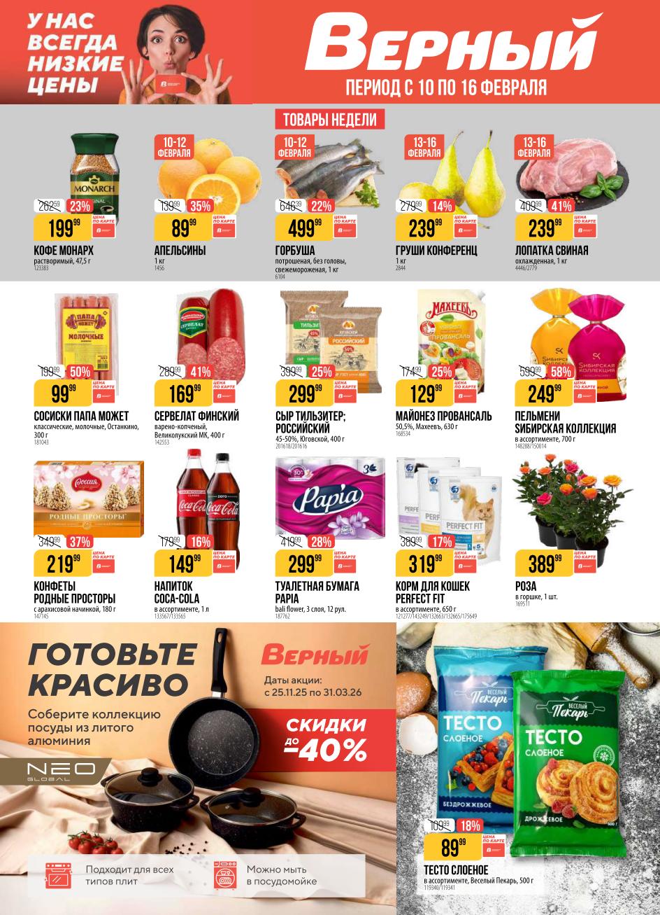 Верный акции с 10 февраля — 16 февраля 2026. Каталог в супермаркете сегодня Пожалуйста, оставьте это поле пустым.Подпишитесь на уведомления о новых каталогах этого магазина Проверьте ваш почтовый ящик, чтобы подтвердить свою подписку. 5 1 голос Рейтинг акции