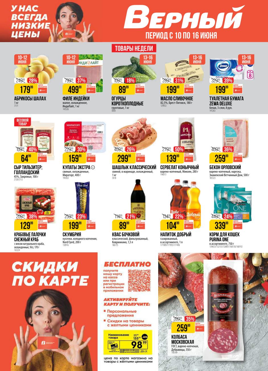 Верный акции с 10 июня — 16 июня 2025. Каталог в супермаркете сегодня