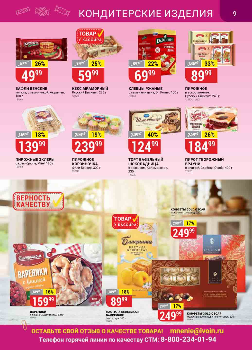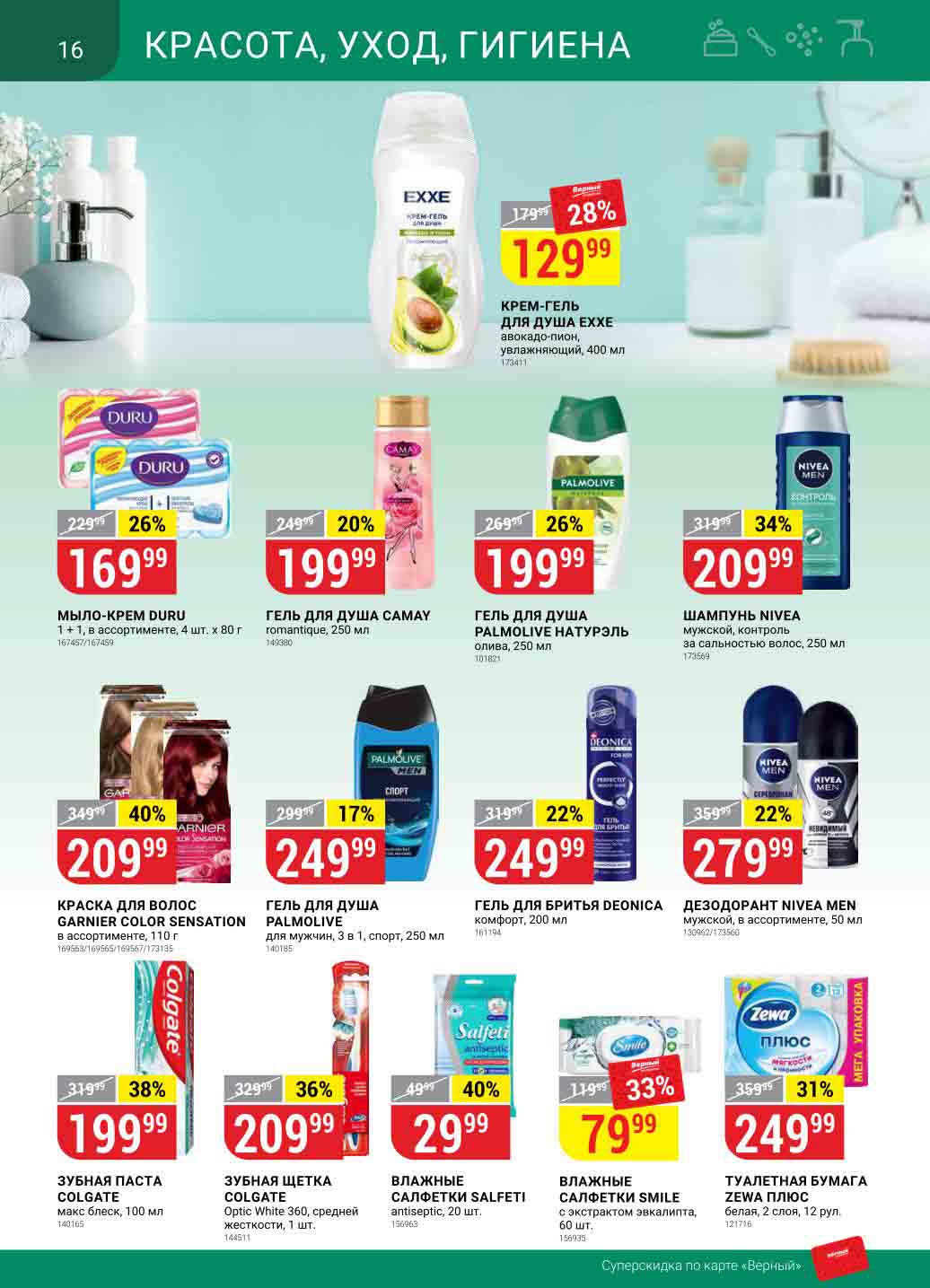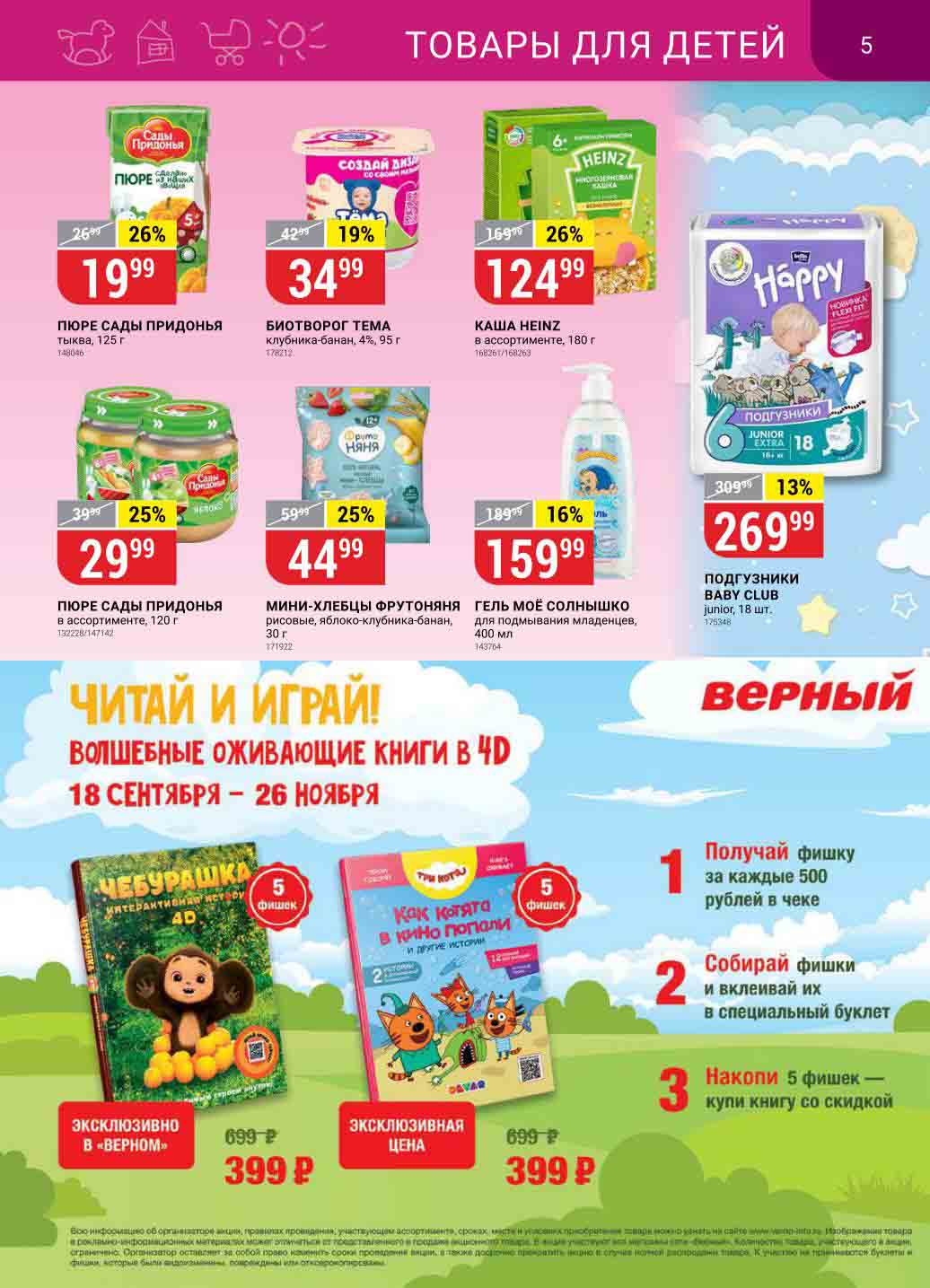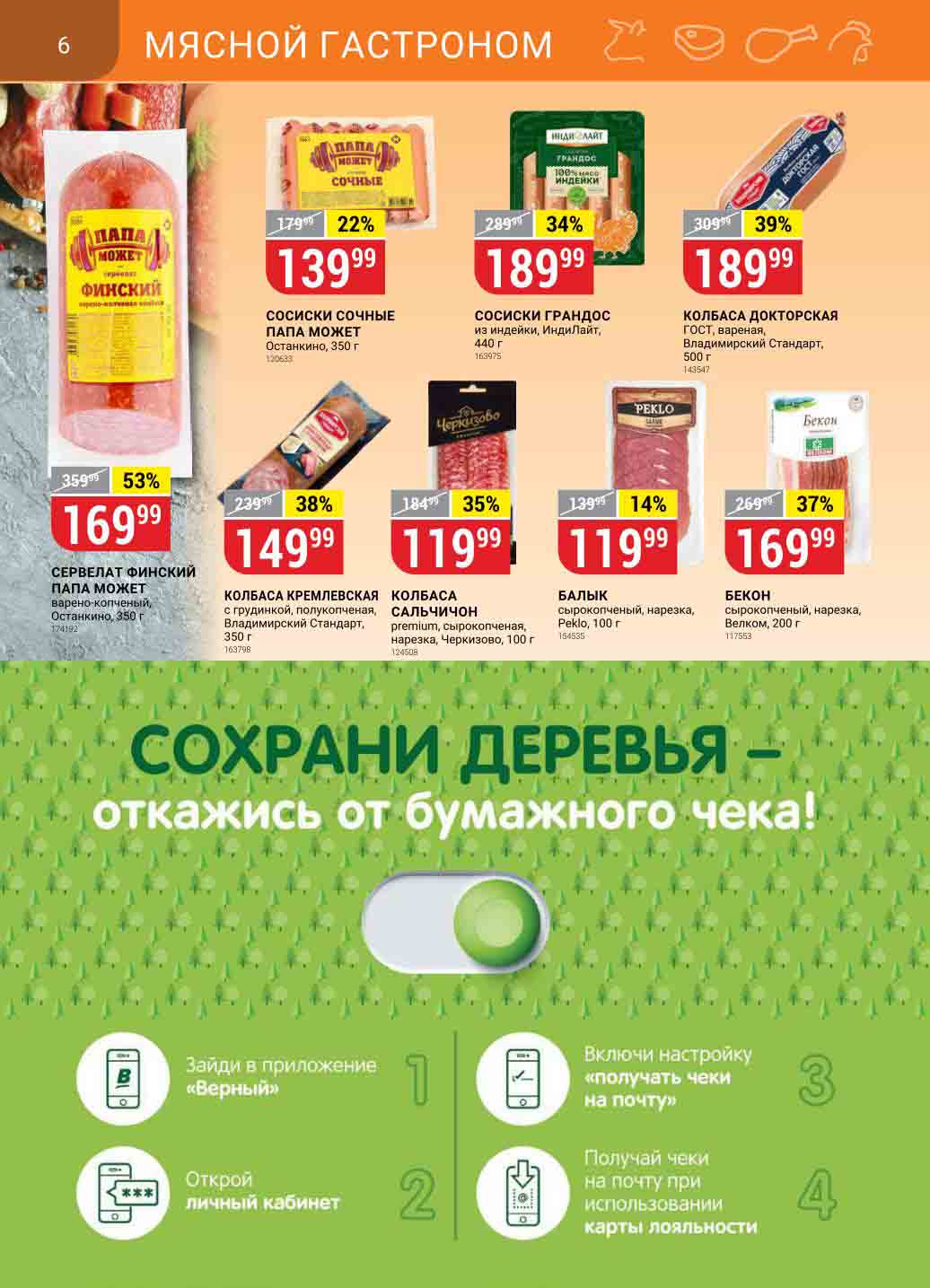 На страницах каталога Верный вы найдете все свои любимые товары, которые сейчас предлагаются в супермаркете. Еженедельное снижение цен на определенные виды, как продовольственных, так и хозтоваров. Цены по акции Верный действуют в городах: Москва, Балашиха, Химки, Подольск, Королев, Мытищи, Люберцы, Электросталь, Коломна, Одинцово, Железнодорожный, Серпухов, Орехово-Зуево, Красногорск, Щелково, Сергиев Посад, Пушкино, Жуковский, Ногинск, Раменское, Клин, Воскресенск, Домодедово и многих других населенных пунктах Московского региона.