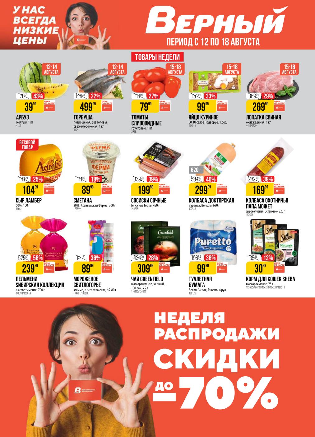 Верный акции с 12 августа — 18 августа 2025. Каталог в супермаркете сегодня