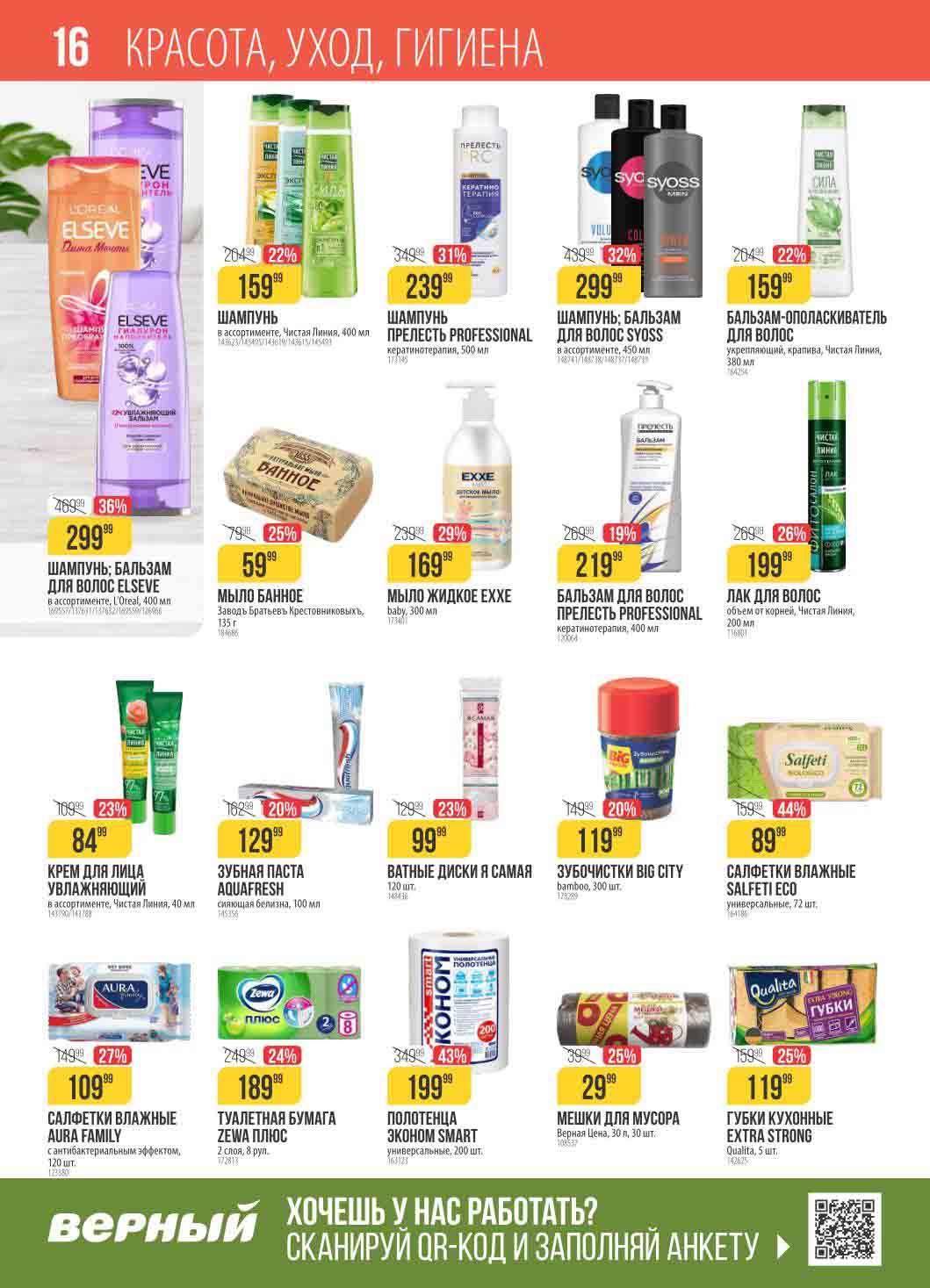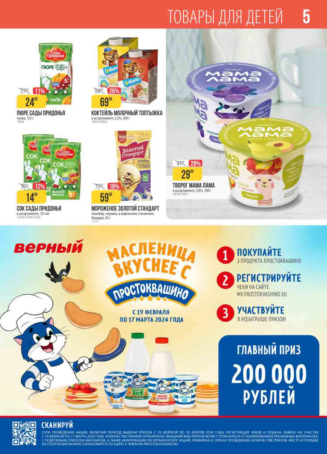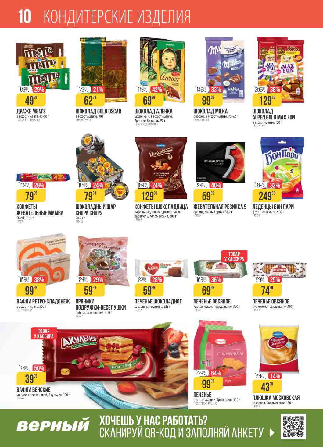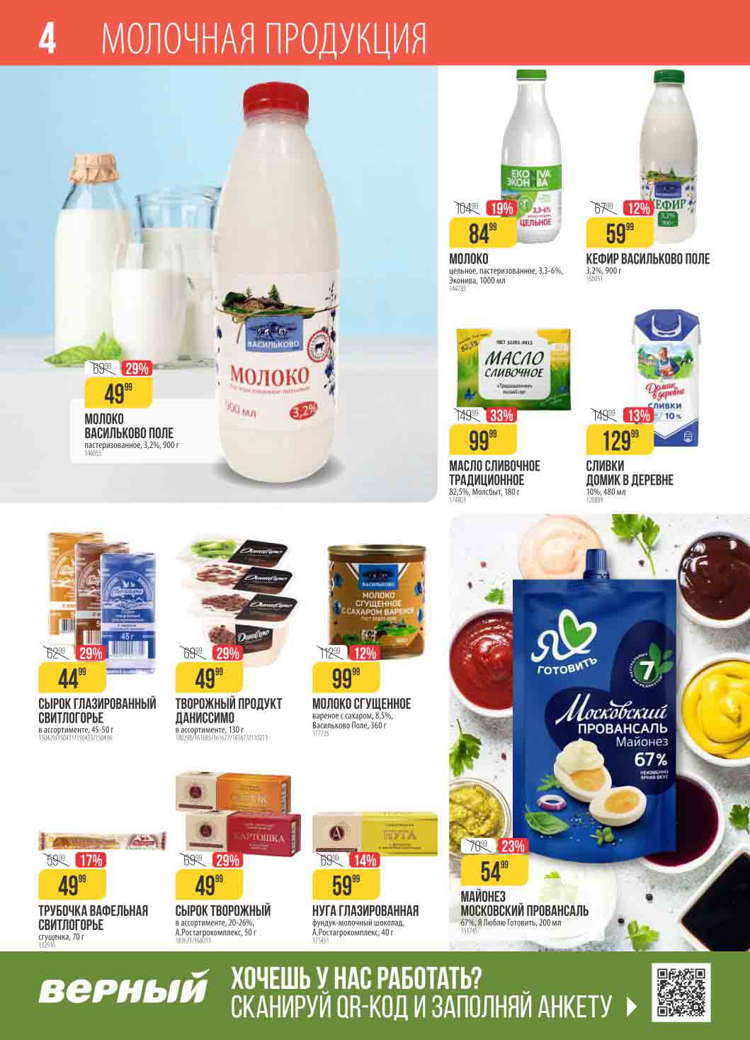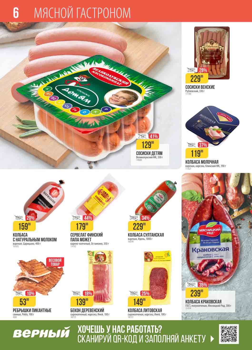 На страницах каталога Верный вы найдете все свои любимые товары, которые сейчас предлагаются в супермаркете. Еженедельное снижение цен на определенные виды, как продовольственных, так и хозтоваров. Цены по акции Верный действуют в городах: Москва, Балашиха, Химки, Подольск, Королев, Мытищи, Люберцы, Электросталь, Коломна, Одинцово, Железнодорожный, Серпухов, Орехово-Зуево, Красногорск, Щелково, Сергиев Посад, Пушкино, Жуковский, Ногинск, Раменское, Клин, Воскресенск, Домодедово и многих других населенных пунктах Московского региона.