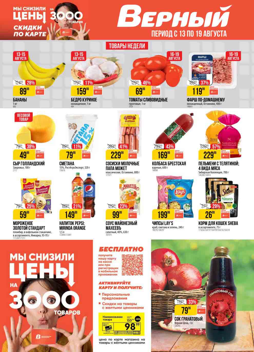 Верный акции с 13 августа — 19 августа 2024. Каталог в супермаркете сегодня