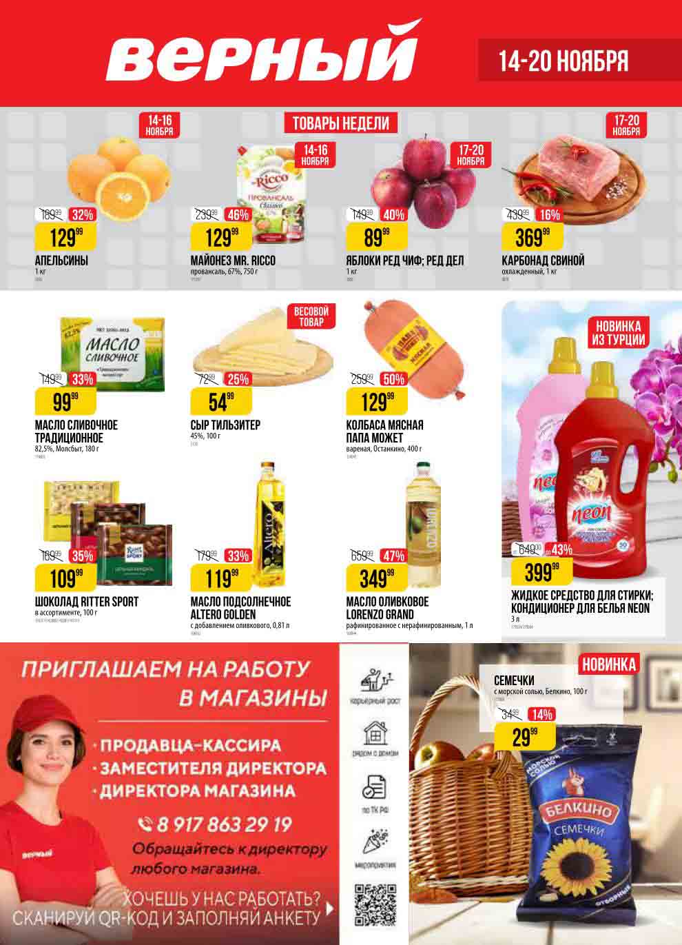 Верный акции с 14 ноября — 20 ноября 2023. Каталог в супермаркете сегодня