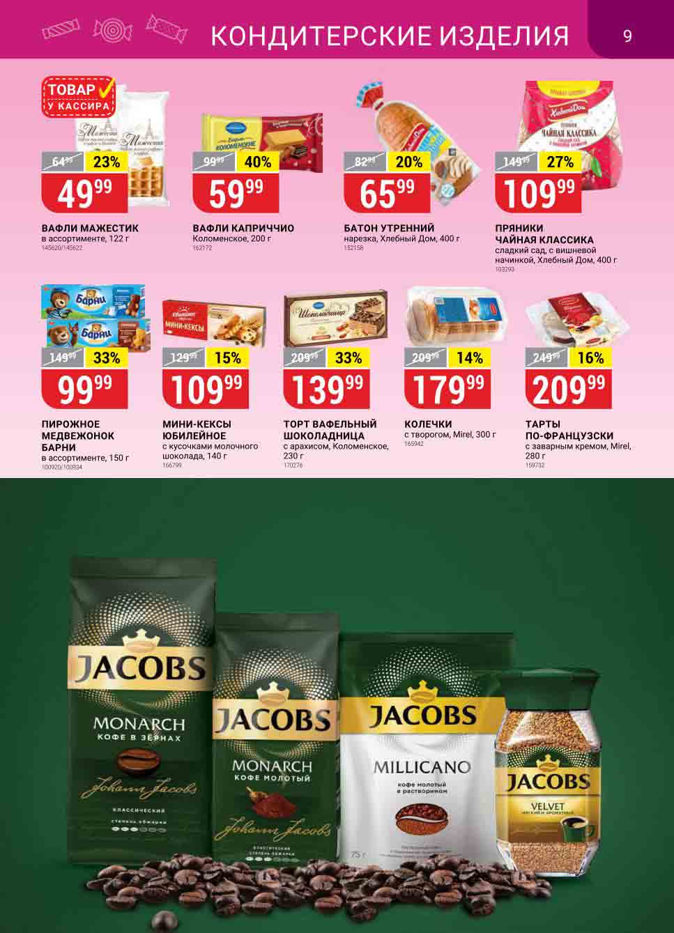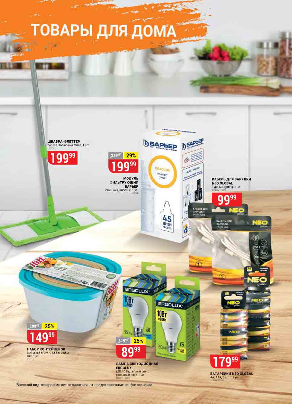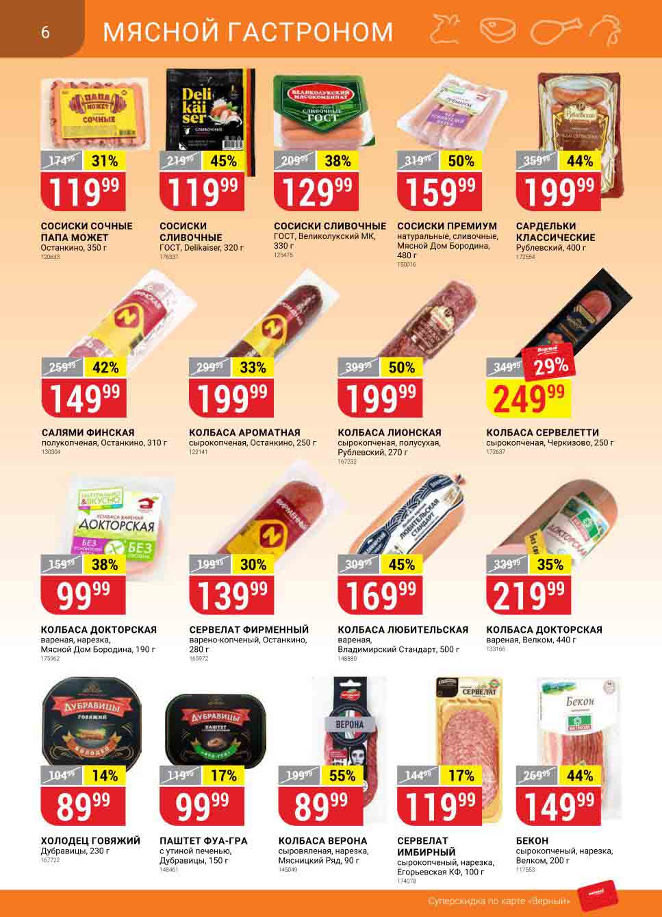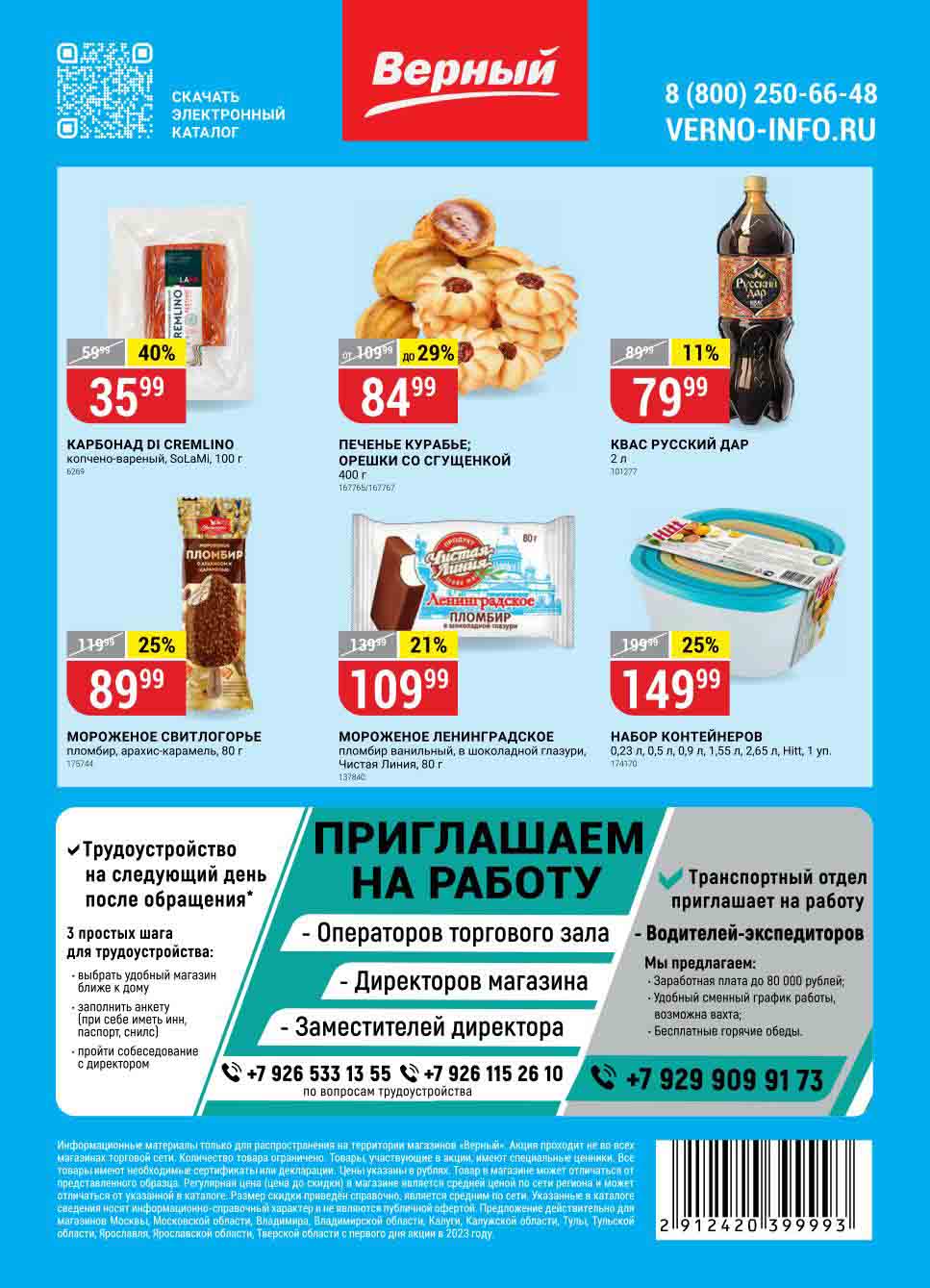 На страницах каталога Верный вы найдете все свои любимые товары, которые сейчас предлагаются в супермаркете. Еженедельное снижение цен на определенные виды, как продовольственных, так и хозтоваров. Цены по акции Верный действуют в городах: Москва, Балашиха, Химки, Подольск, Королев, Мытищи, Люберцы, Электросталь, Коломна, Одинцово, Железнодорожный, Серпухов, Орехово-Зуево, Красногорск, Щелково, Сергиев Посад, Пушкино, Жуковский, Ногинск, Раменское, Клин, Воскресенск, Домодедово и многих других населенных пунктах Московского региона.