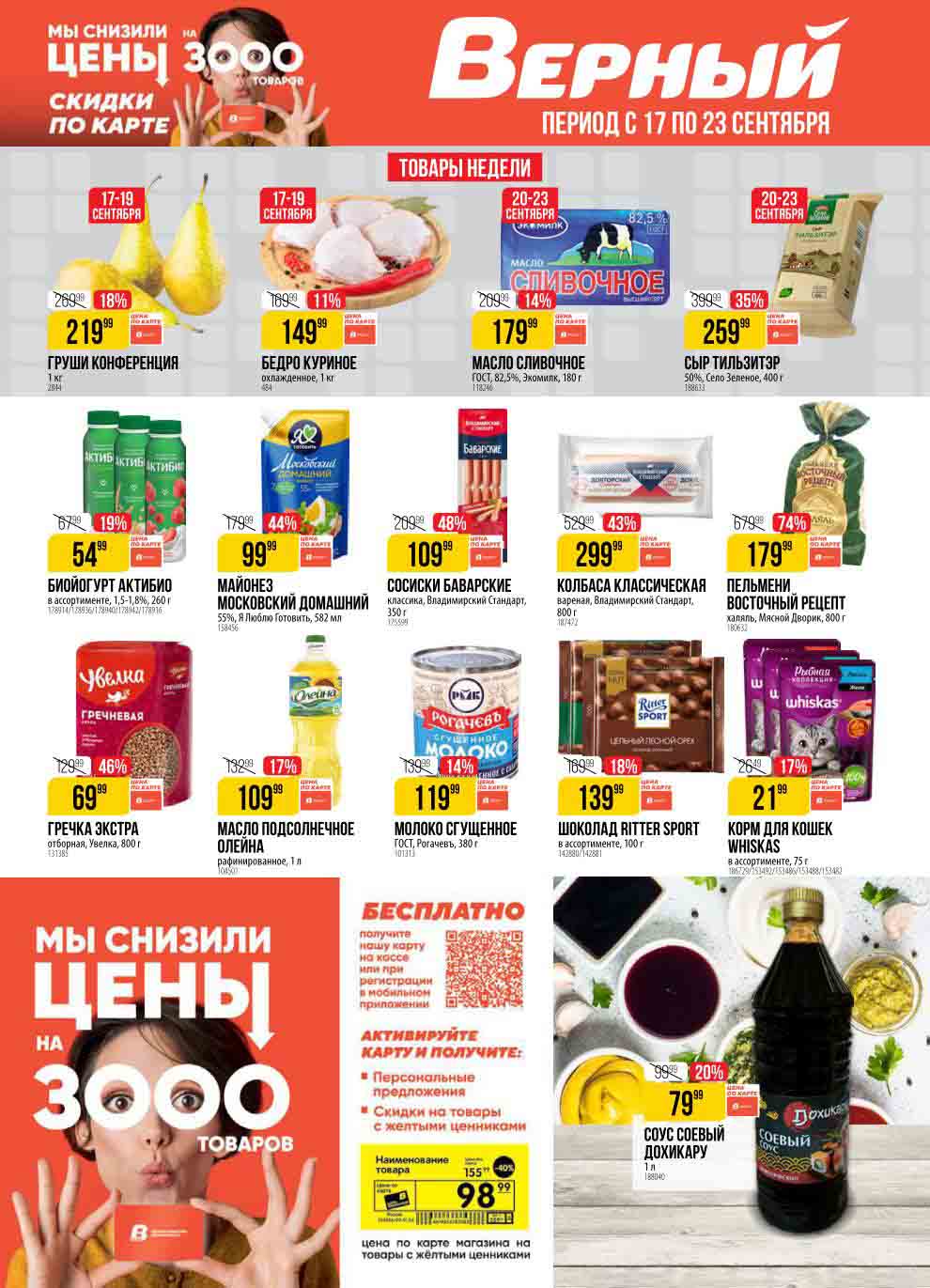 Верный акции с 17 сентября — 23 сентября 2024. Каталог в супермаркете сегодня