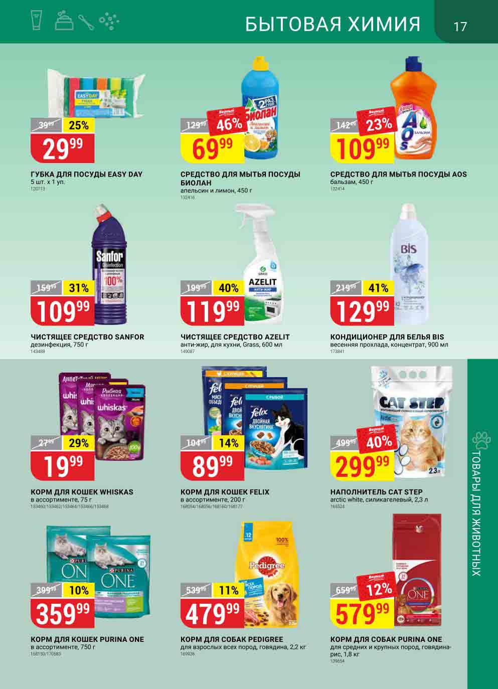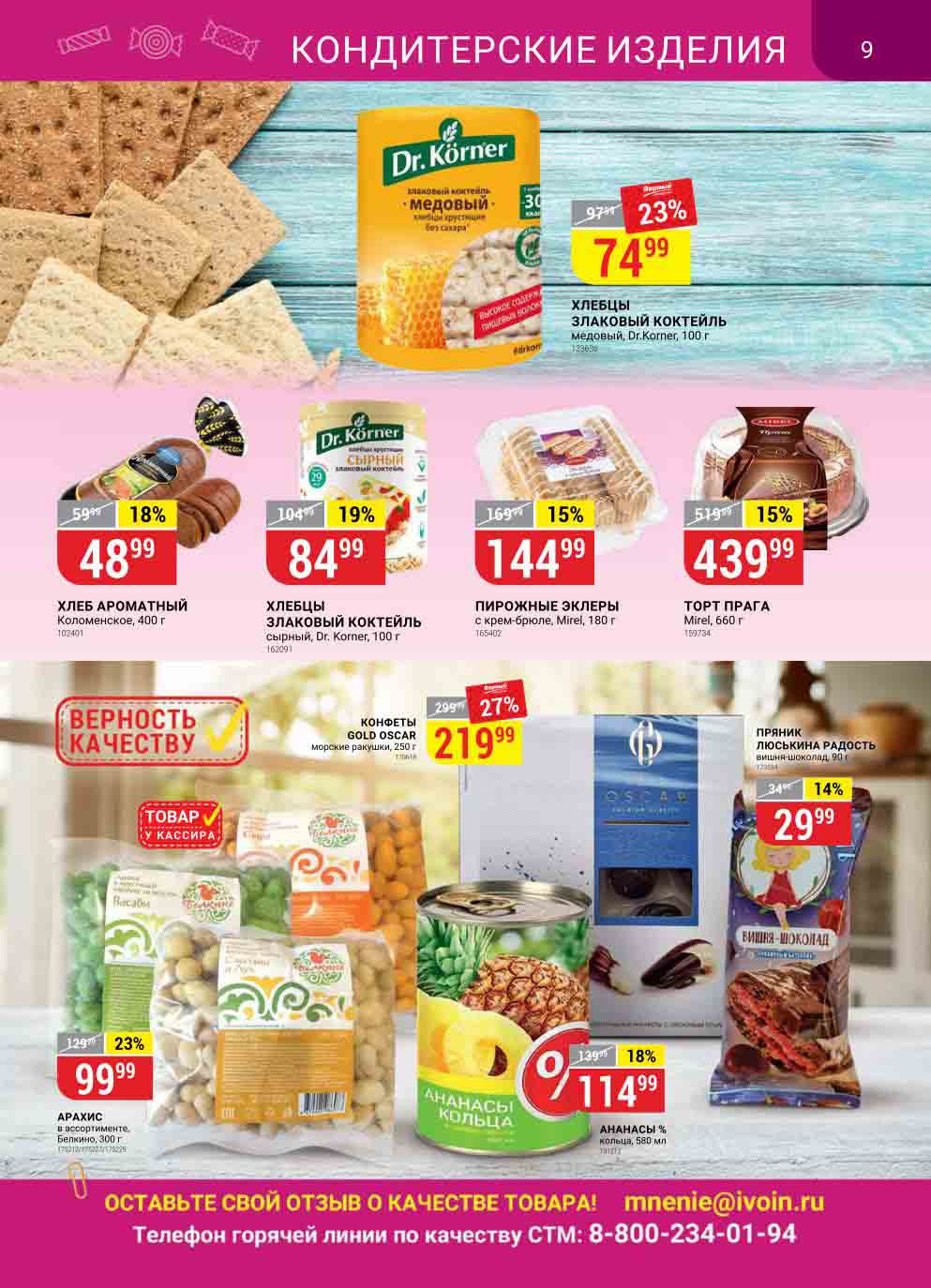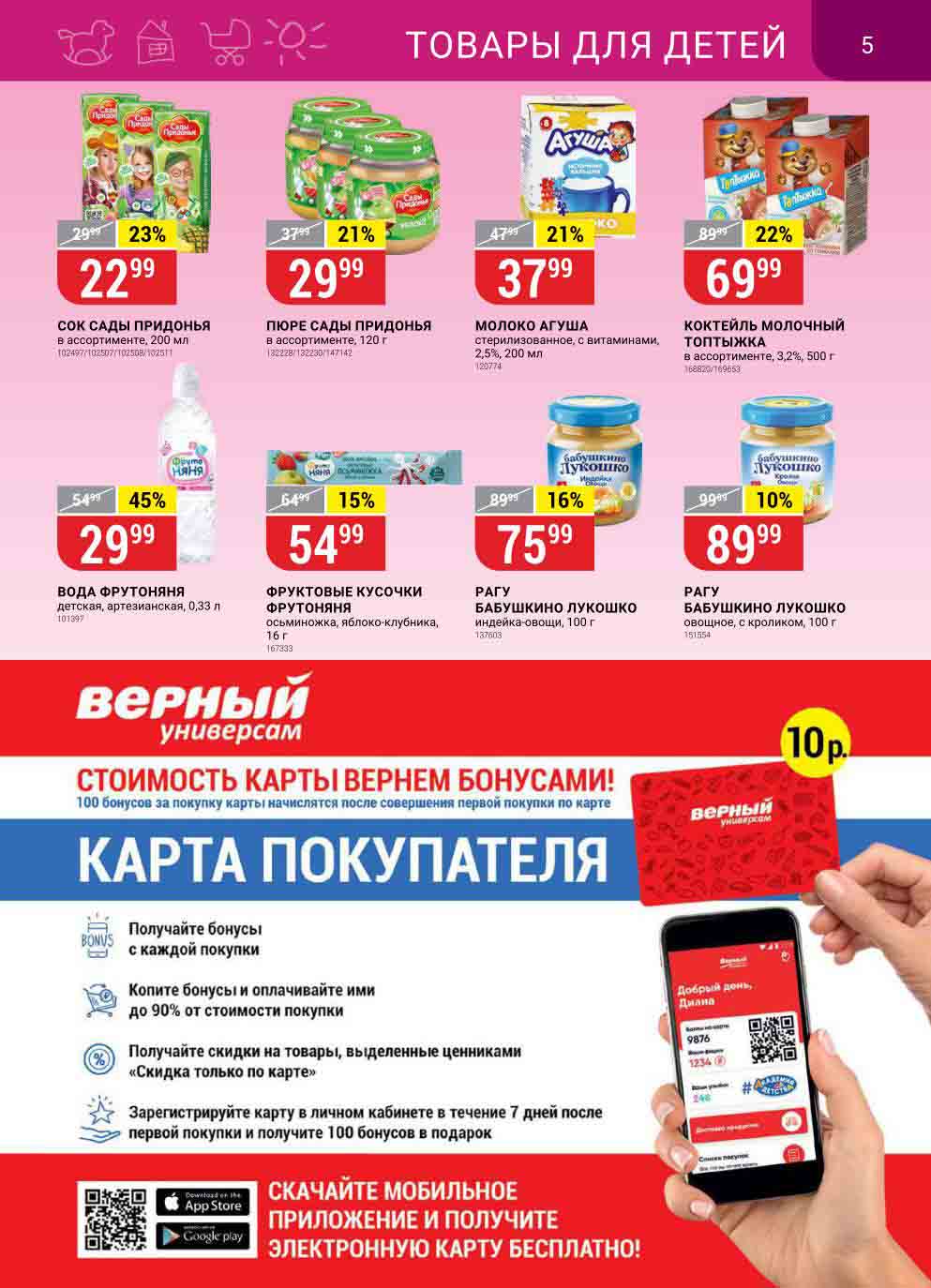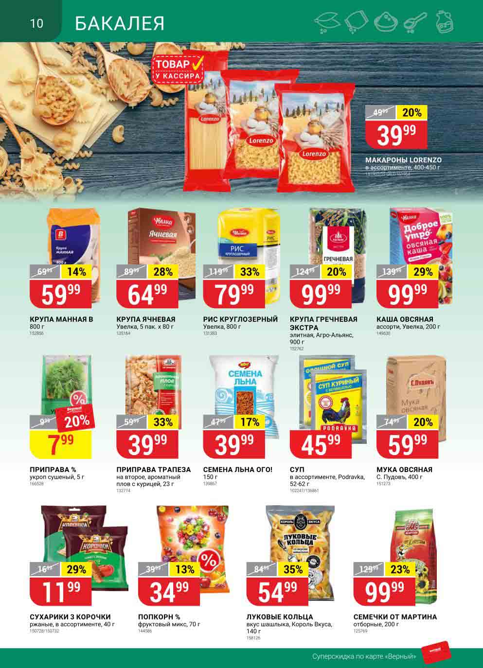 На страницах каталога Верный вы найдете все свои любимые товары, которые сейчас предлагаются в супермаркете. Еженедельное снижение цен на определенные виды, как продовольственных, так и хозтоваров. Цены по акции Верный действуют в городах: Москва, Балашиха, Химки, Подольск, Королев, Мытищи, Люберцы, Электросталь, Коломна, Одинцово, Железнодорожный, Серпухов, Орехово-Зуево, Красногорск, Щелково, Сергиев Посад, Пушкино, Жуковский, Ногинск, Раменское, Клин, Воскресенск, Домодедово и многих других населенных пунктах Московского региона.